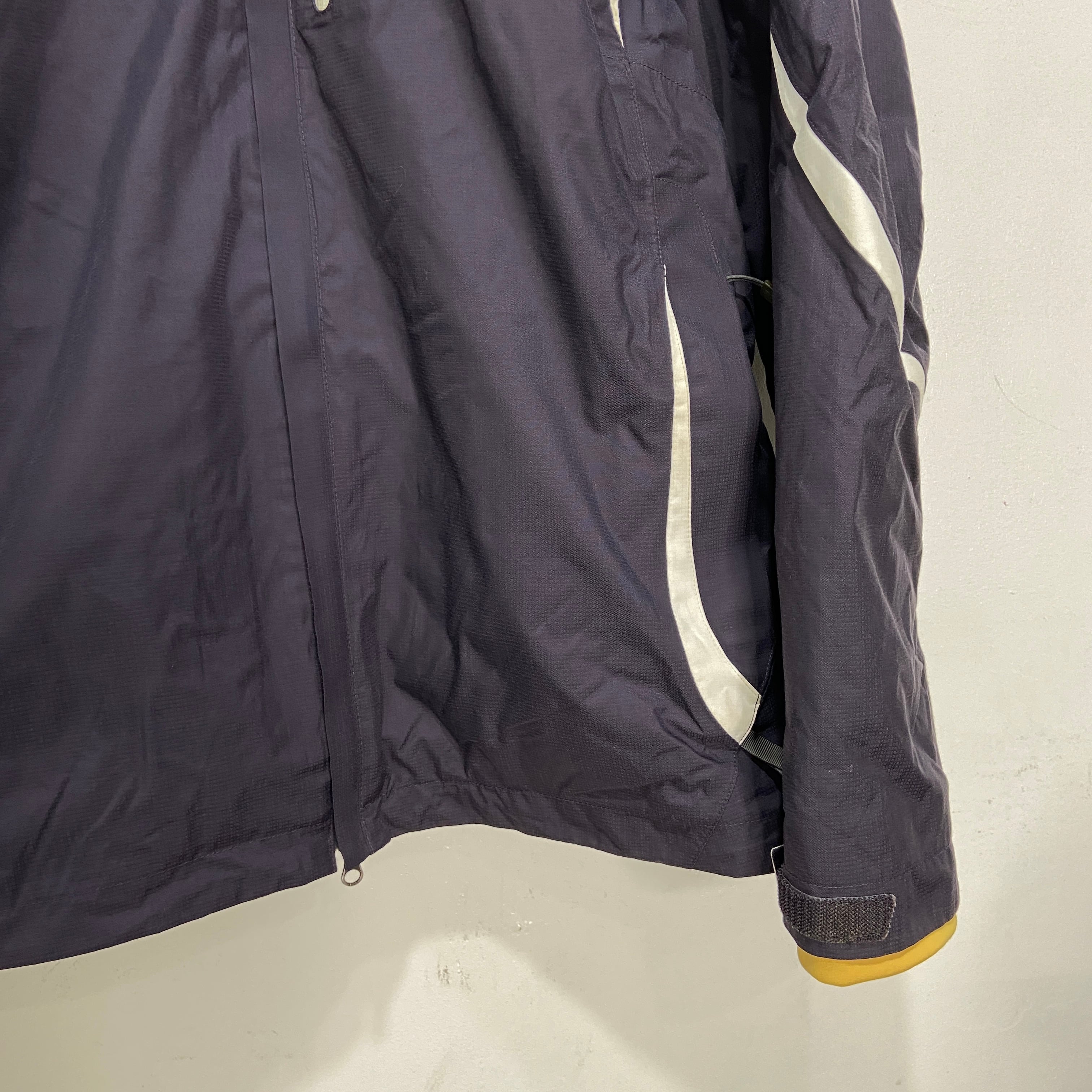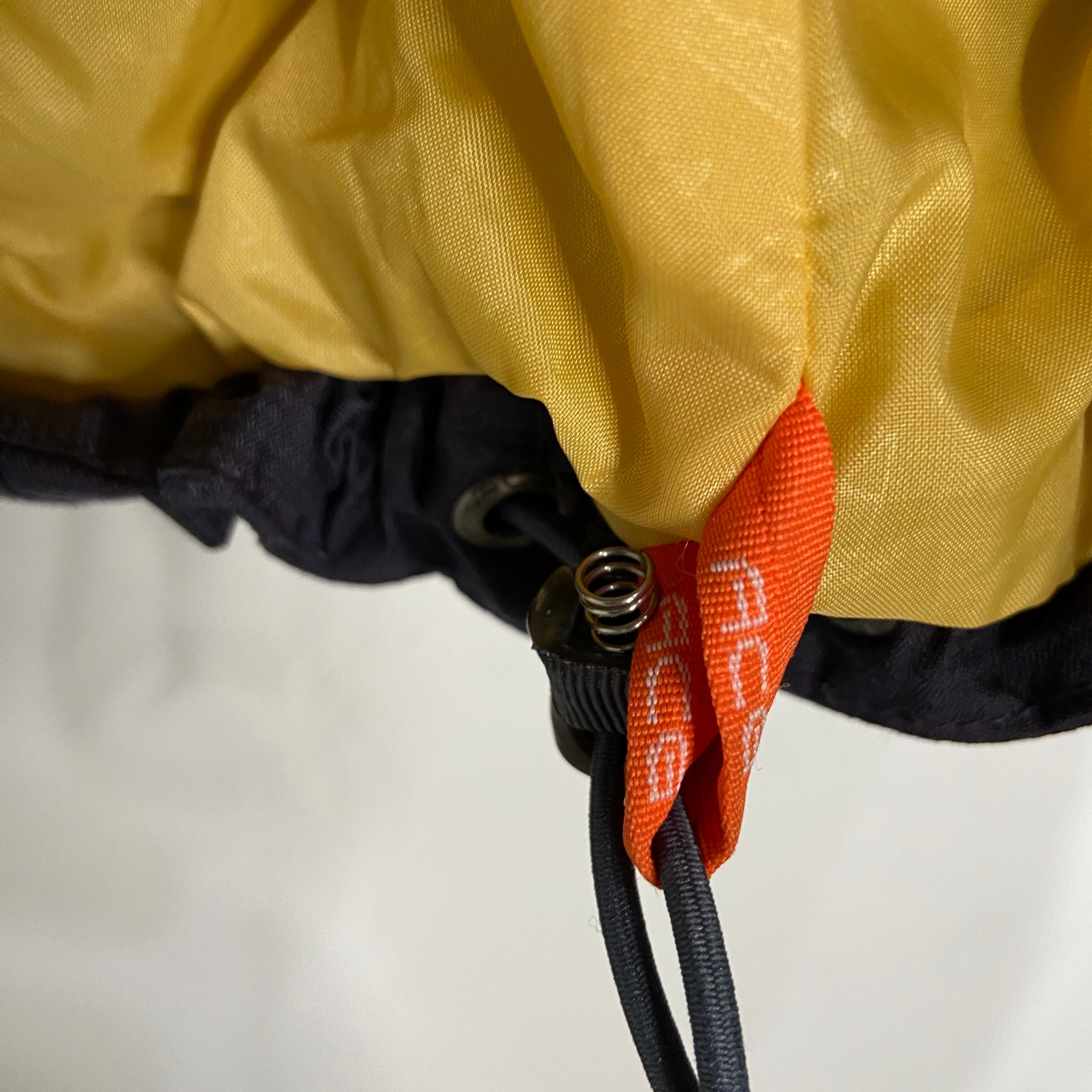 多少の使用感はございますが目立った傷などはございません。胸横の白いライン部分と袖先に薄汚れがあります。裾のドローコードの留め具のヘッドが片方ありませんが使用できます。片方の袖先のスナップボタンの留め具に破損があります。