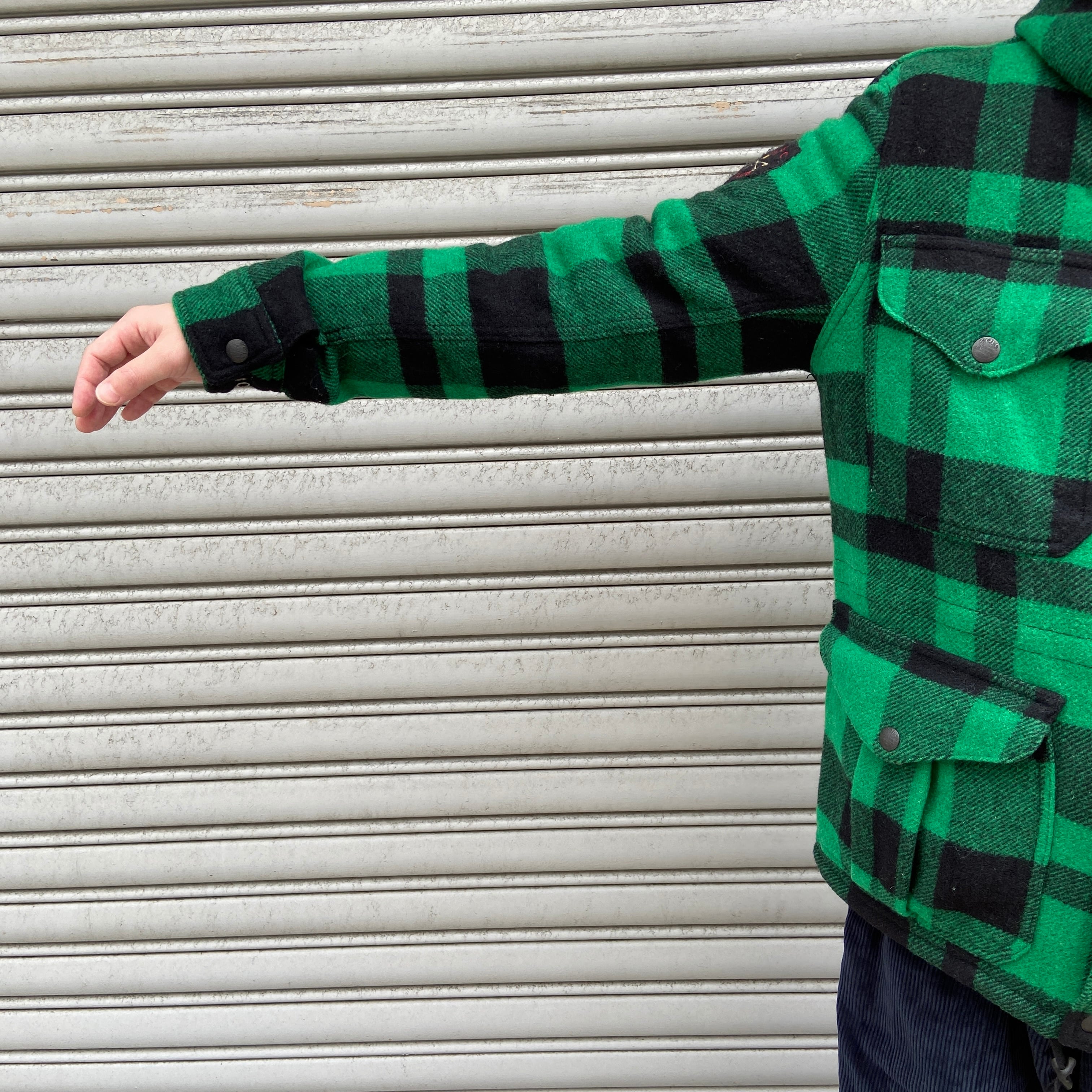 目を惹く緑×黒のブロックチェック柄のマッキーノジャケットです!