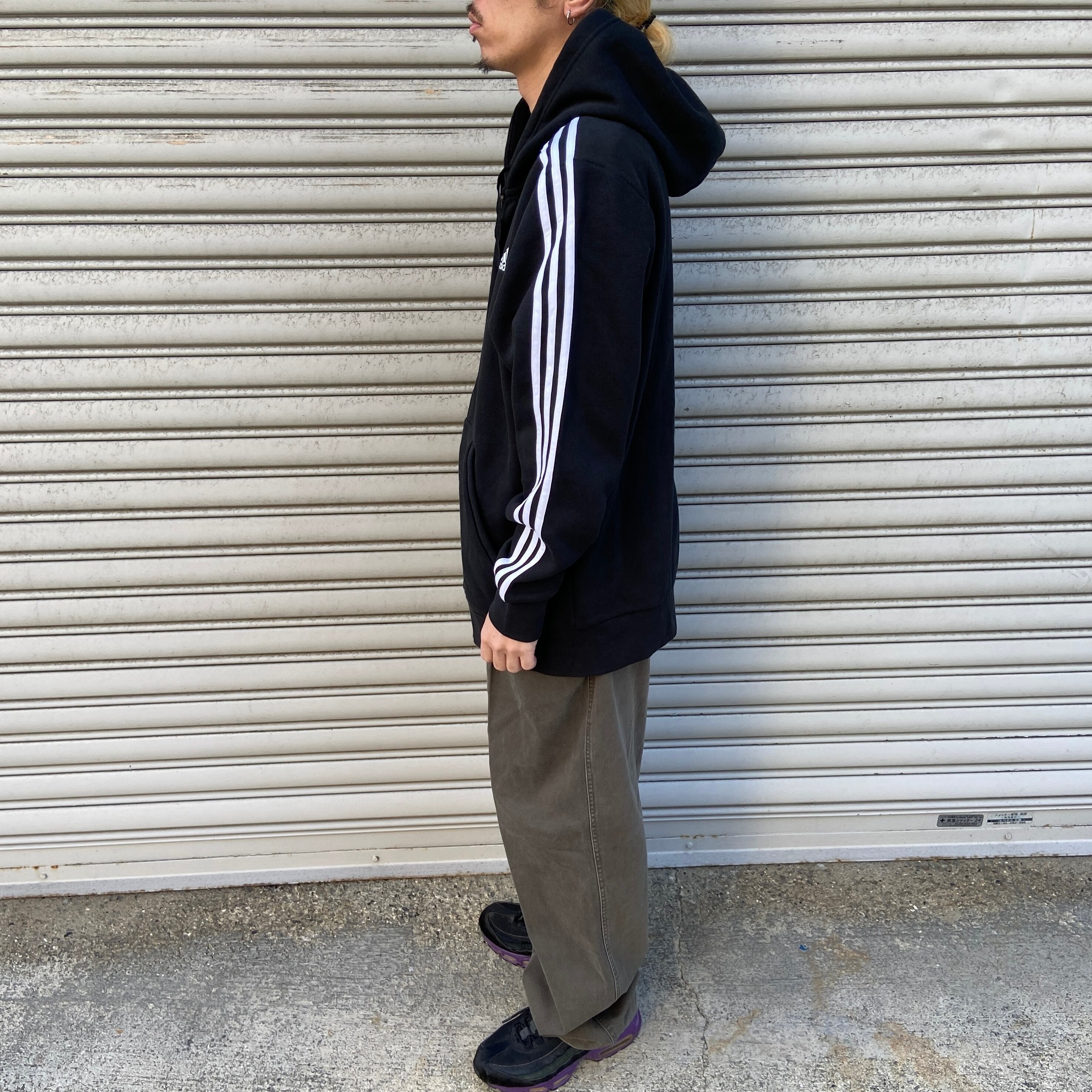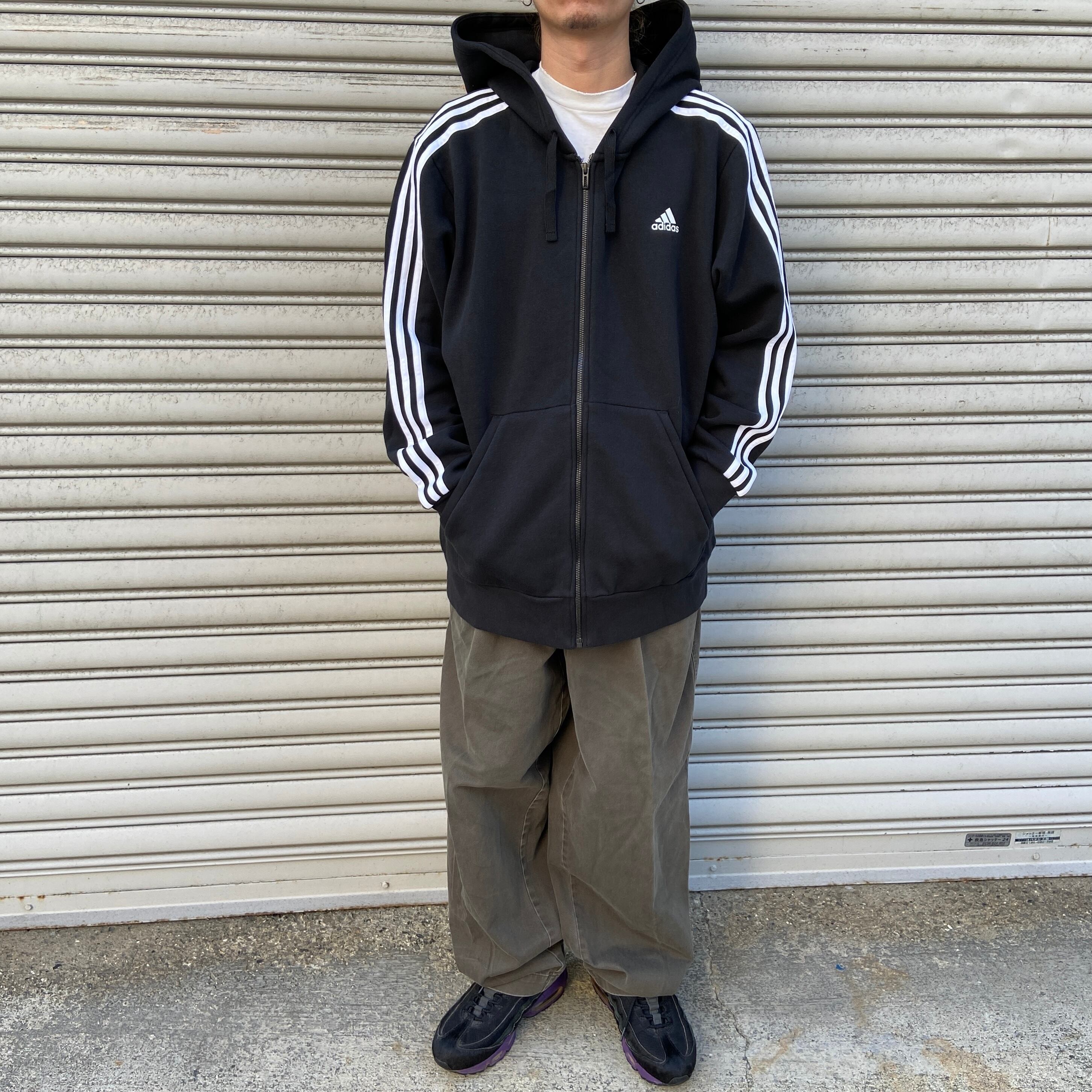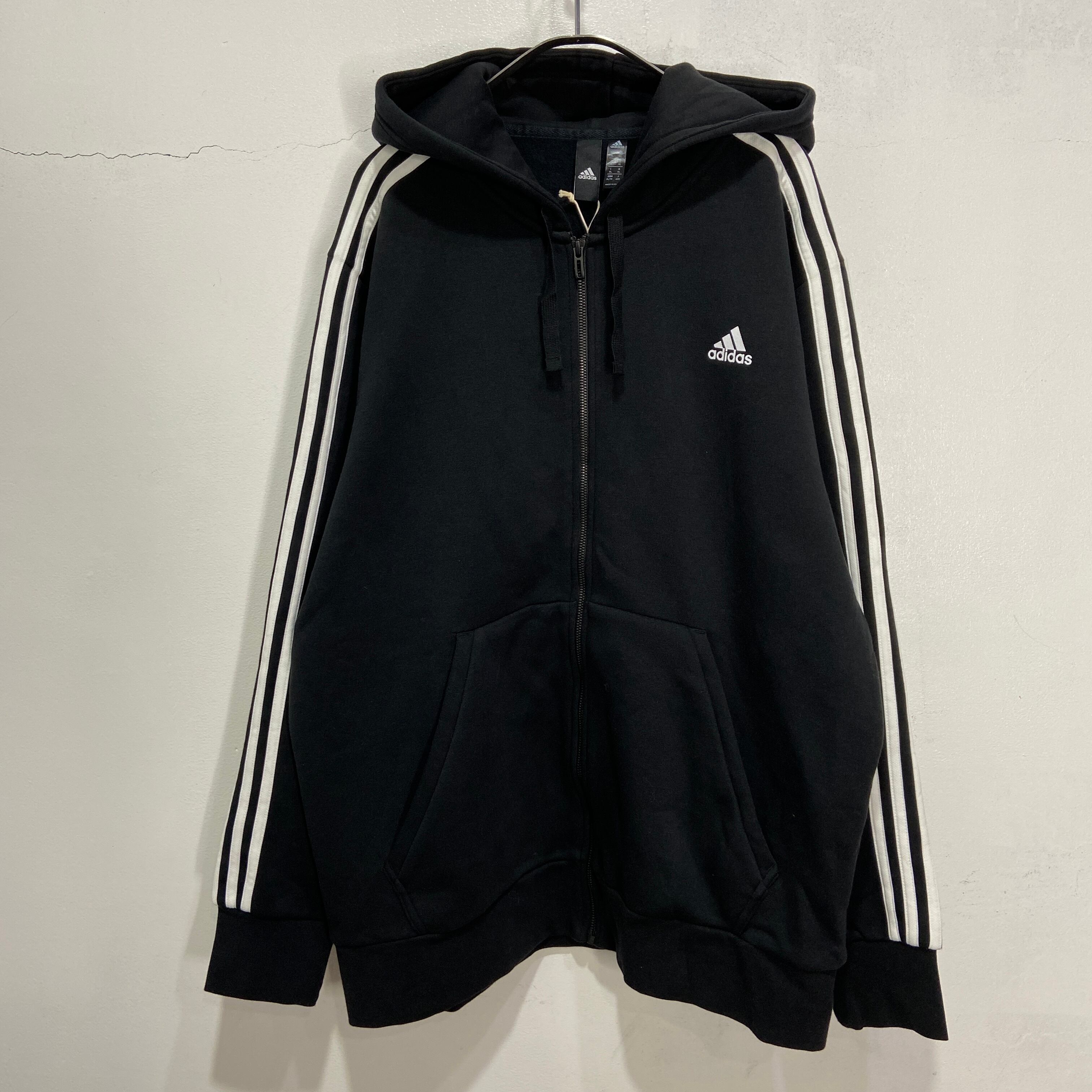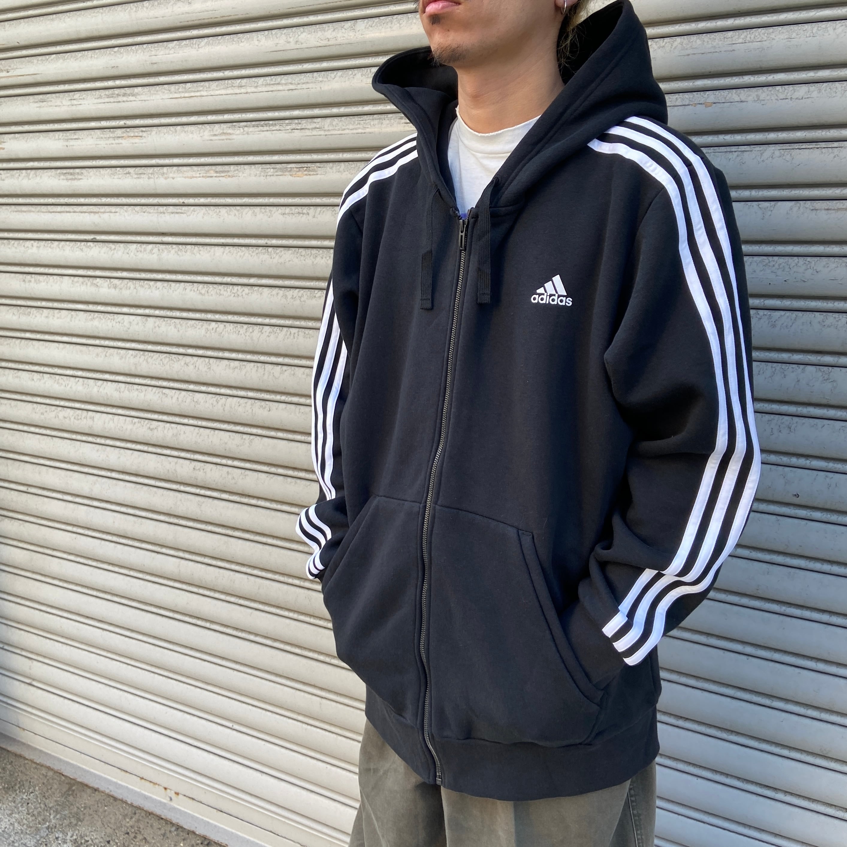 タグ付き未使用品 adidas ストライプスウェットフルジップパーカー 黒 XL