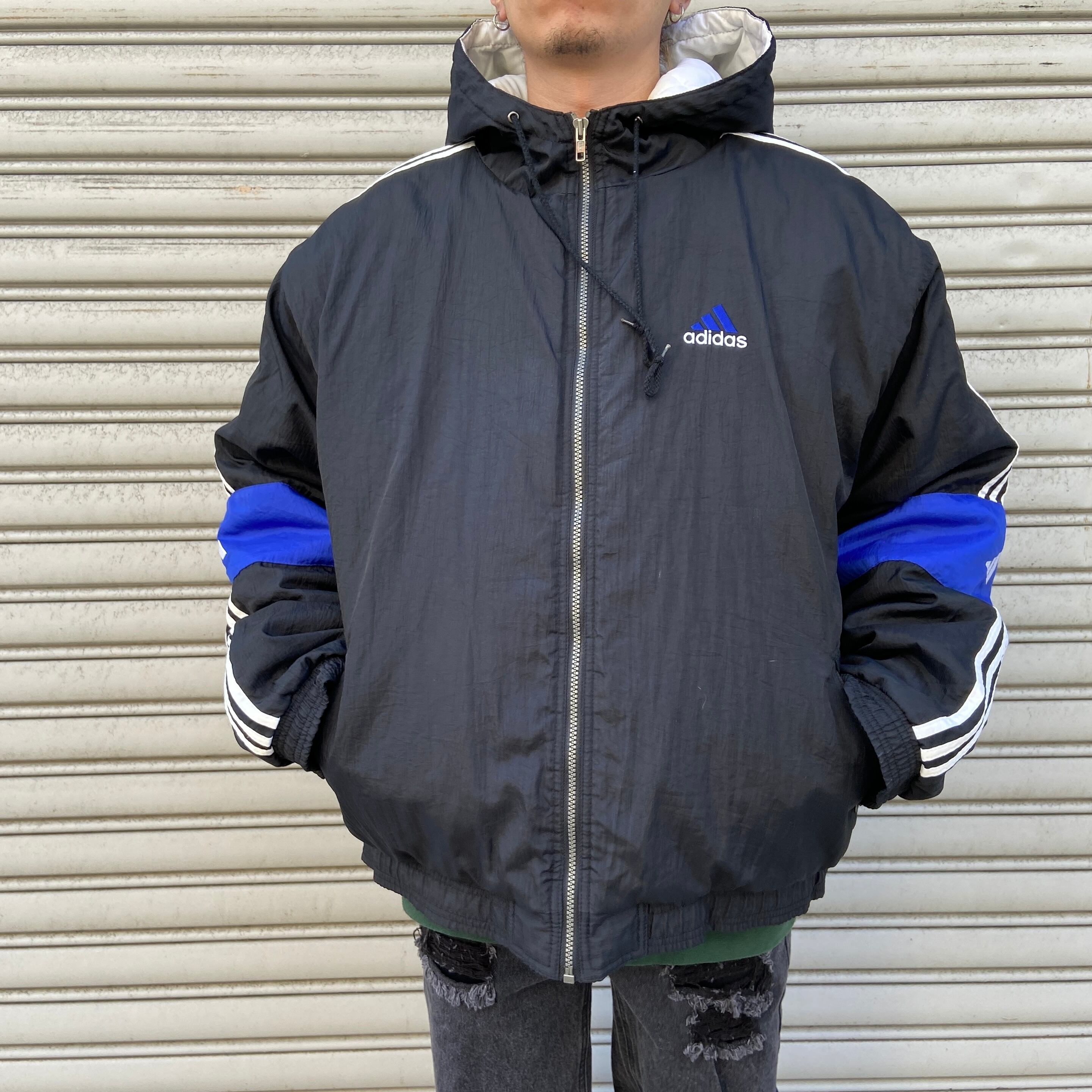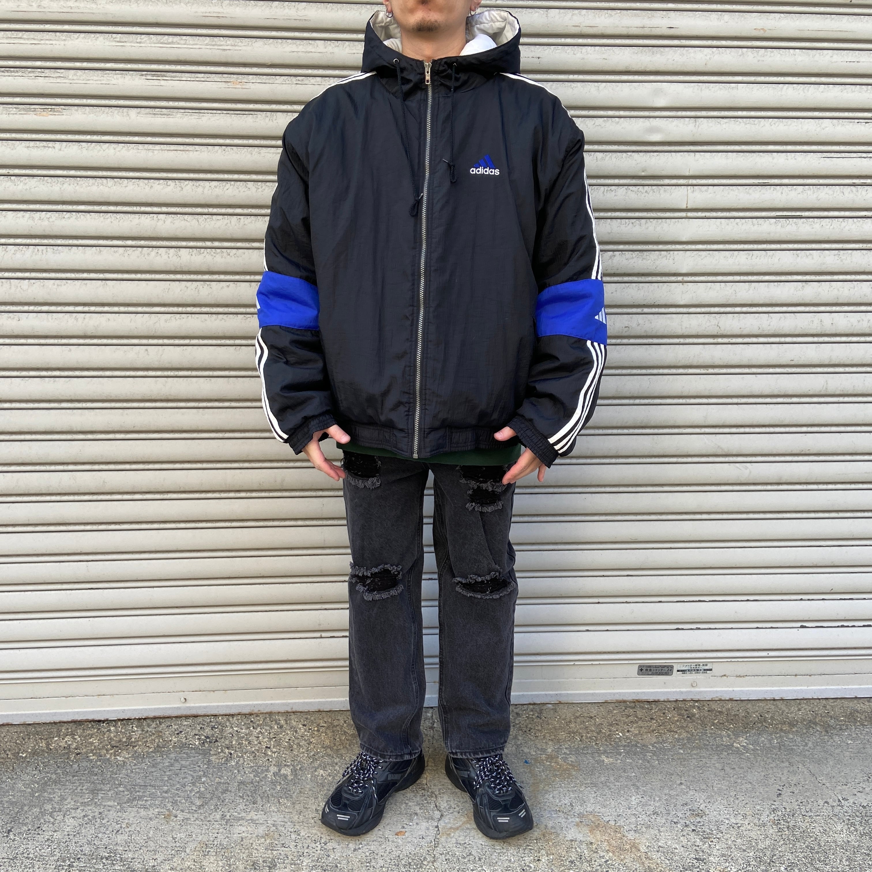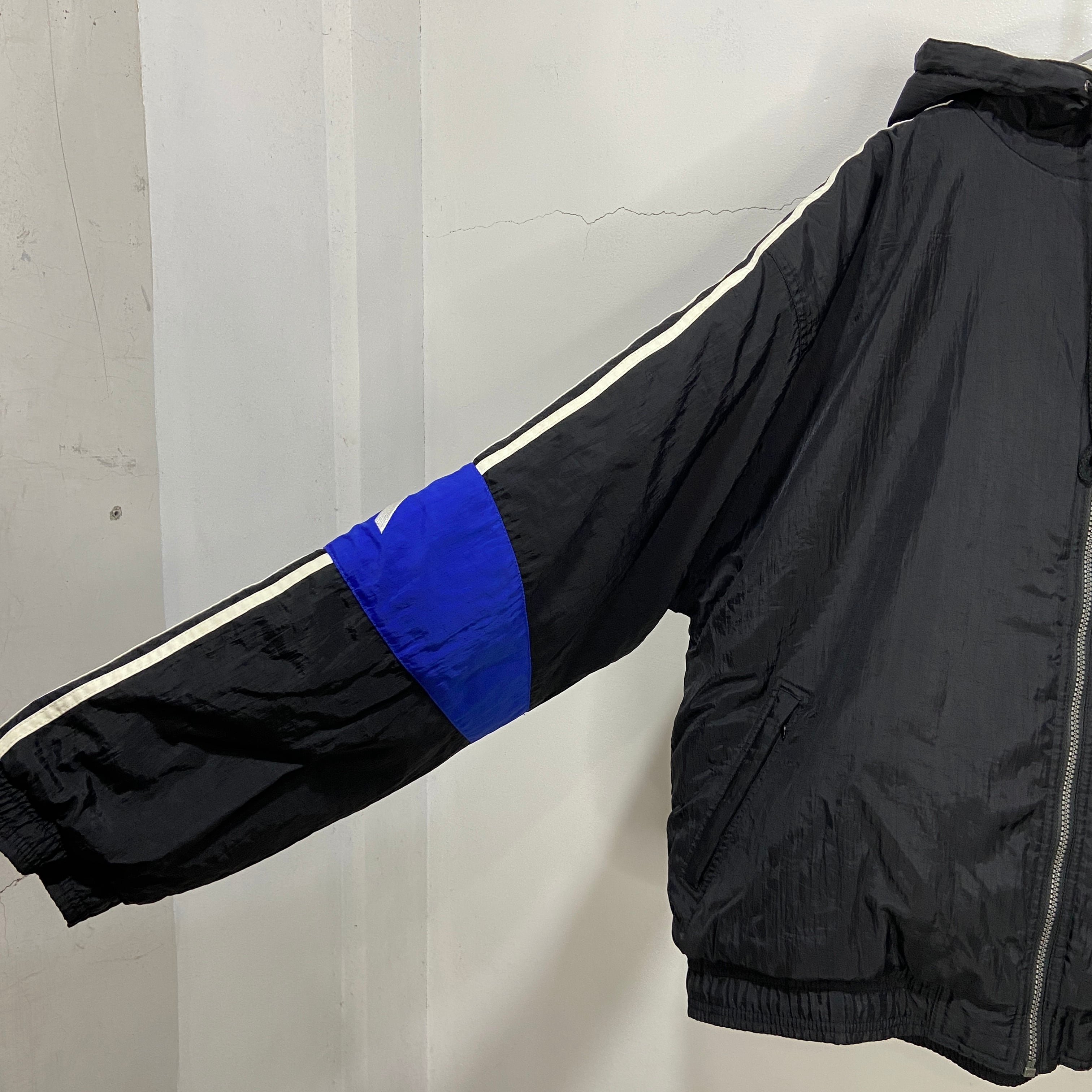 90s adidas 中綿入りナイロンパーカー パフォーマンスロゴ 黒 L