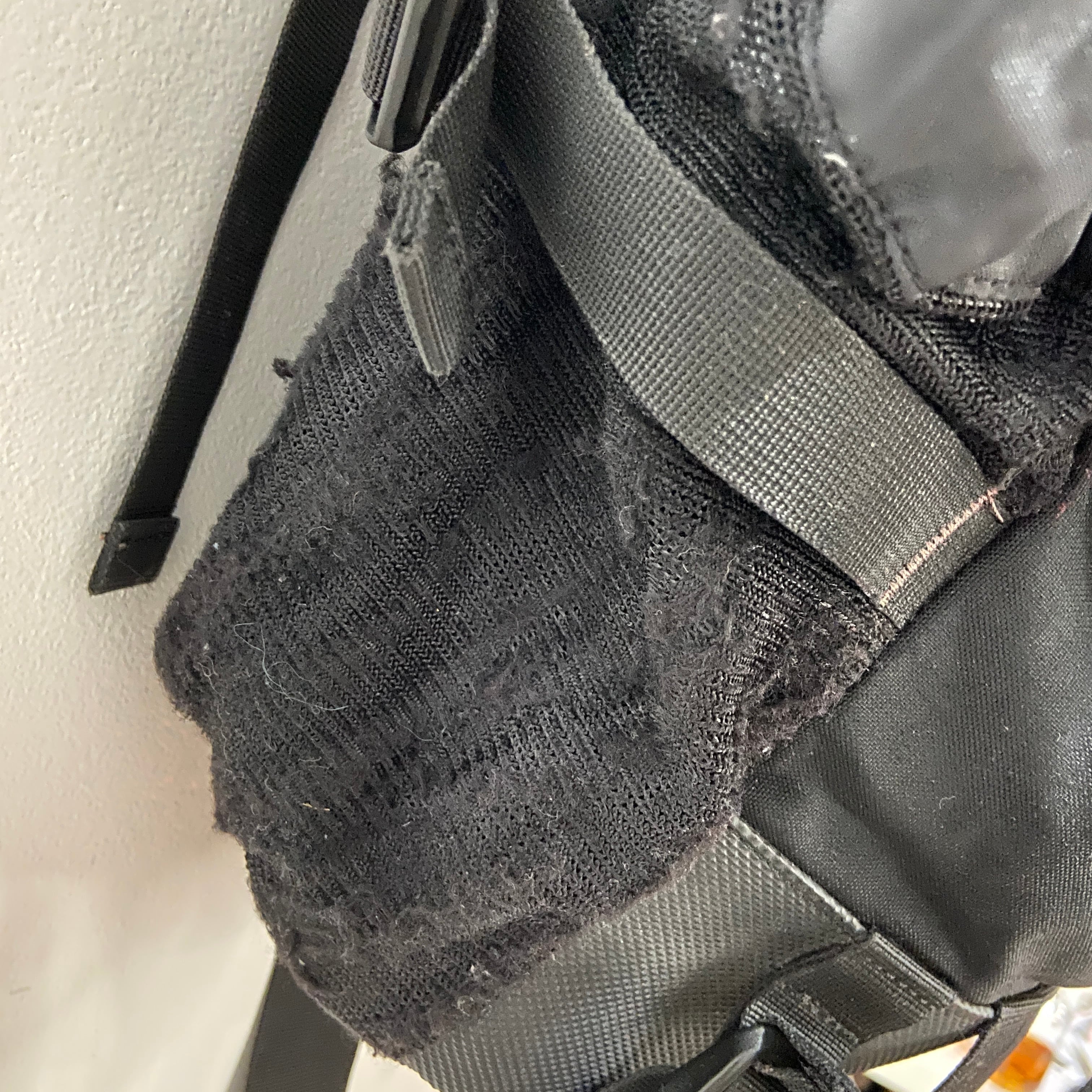 両サイドのメッシュポケットに毛羽立ちがあります。