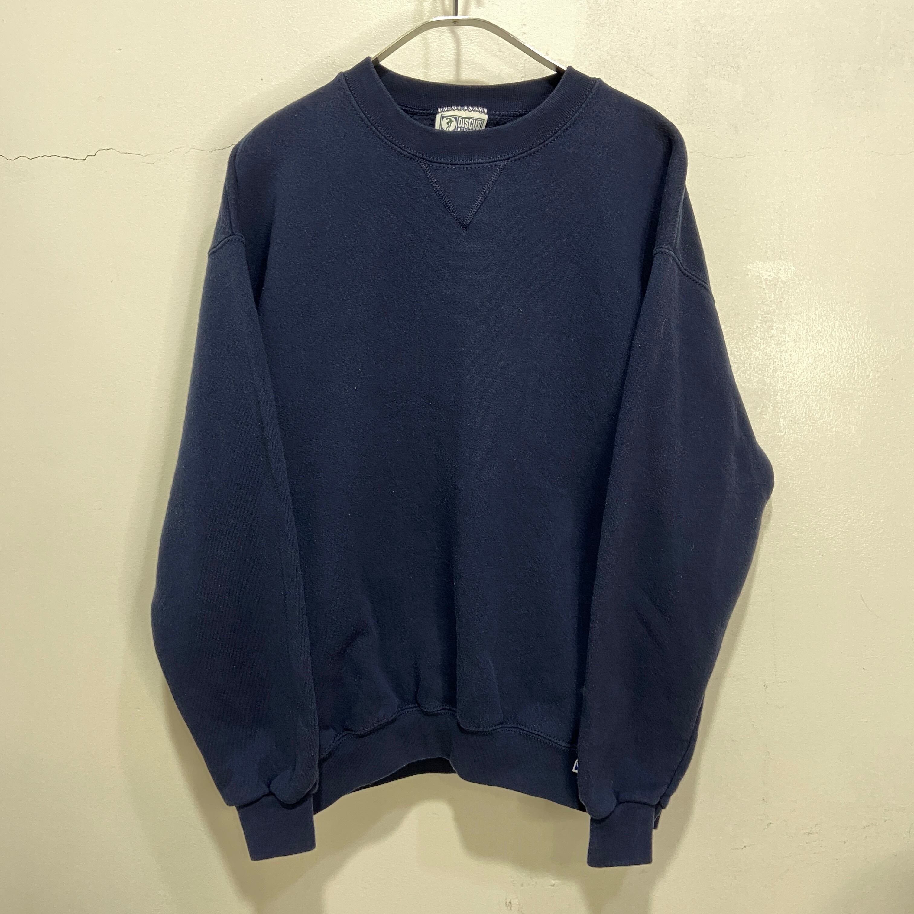 90s USA製 DISCUSATHLETIC 無地スウェット 前V ネイビー