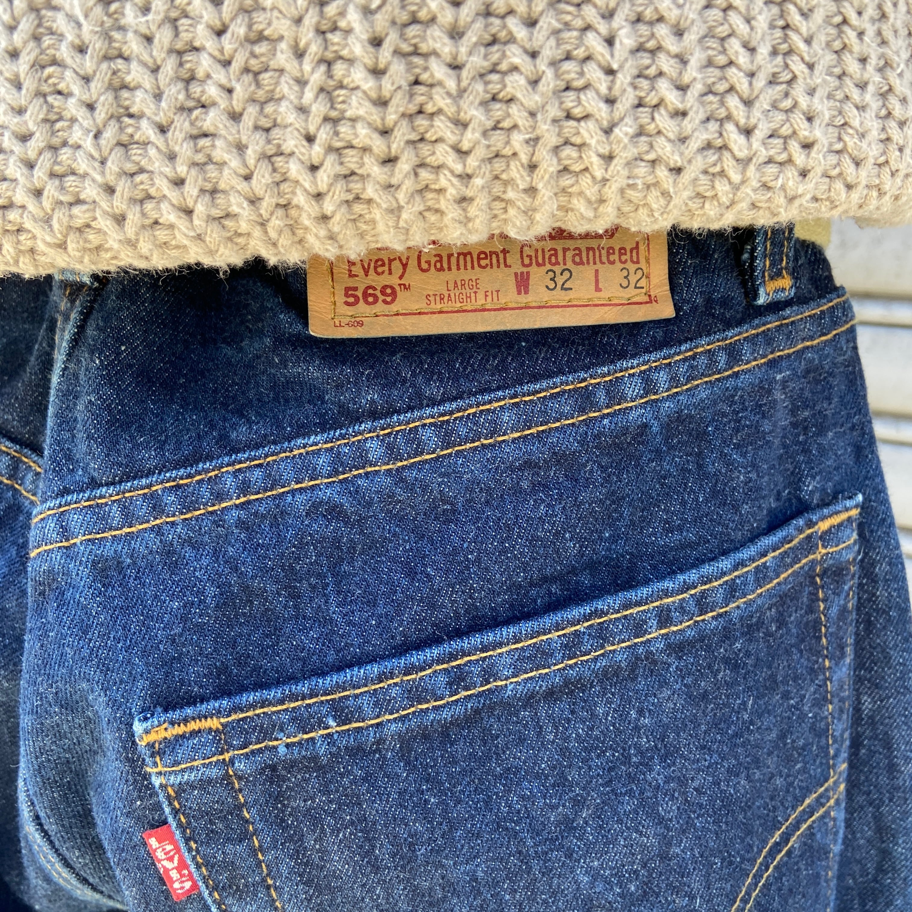レア 90s USA製 Levi's 569 ワイドデニムパンツ 真紺 W32