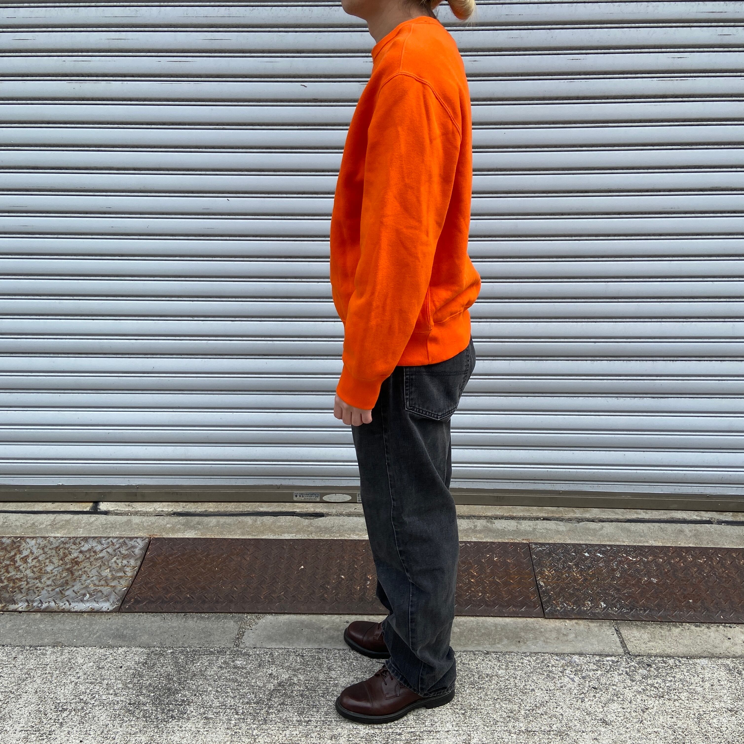 目を惹く綺麗なオレンジカラーがインパクトがあるワンポイントスウェットです!