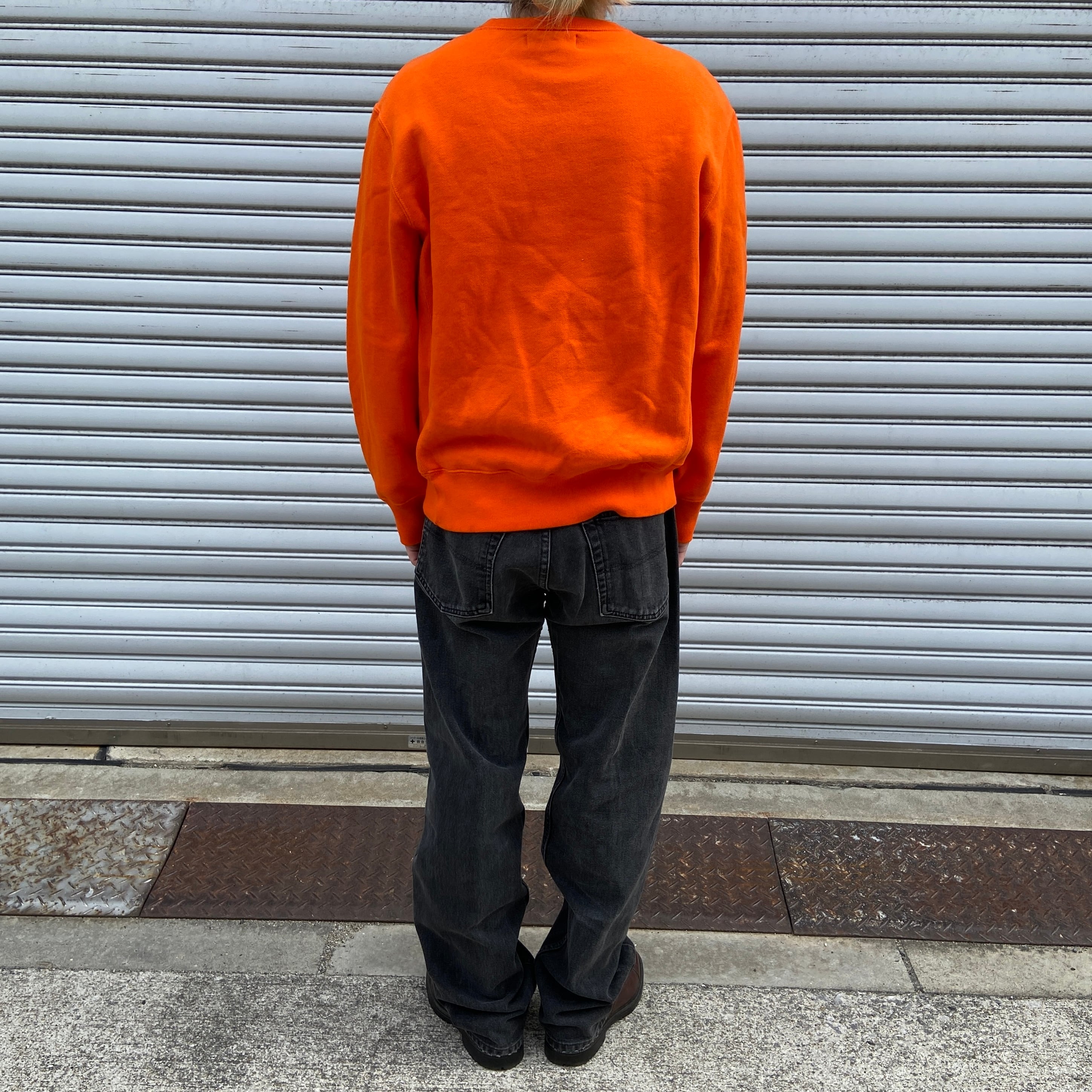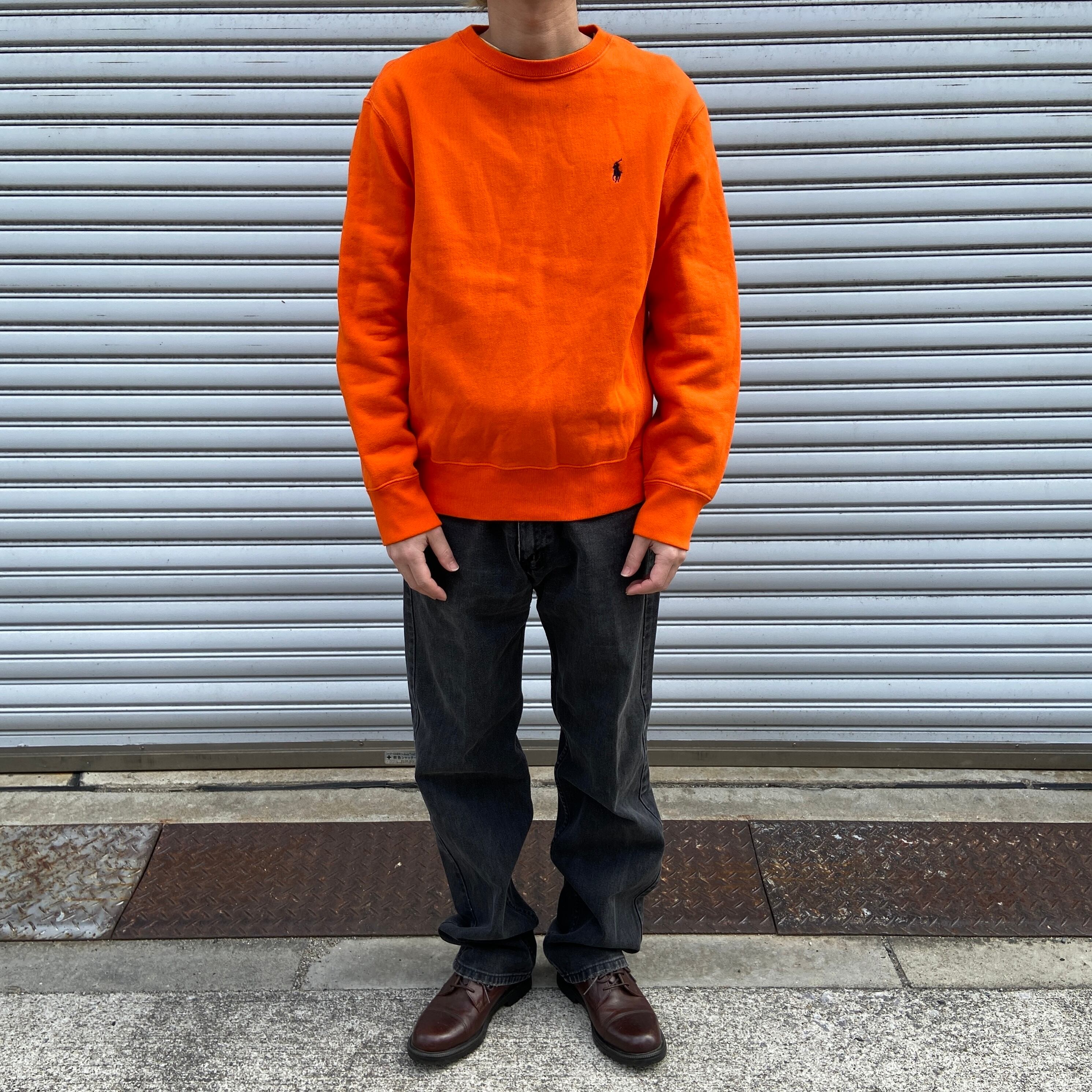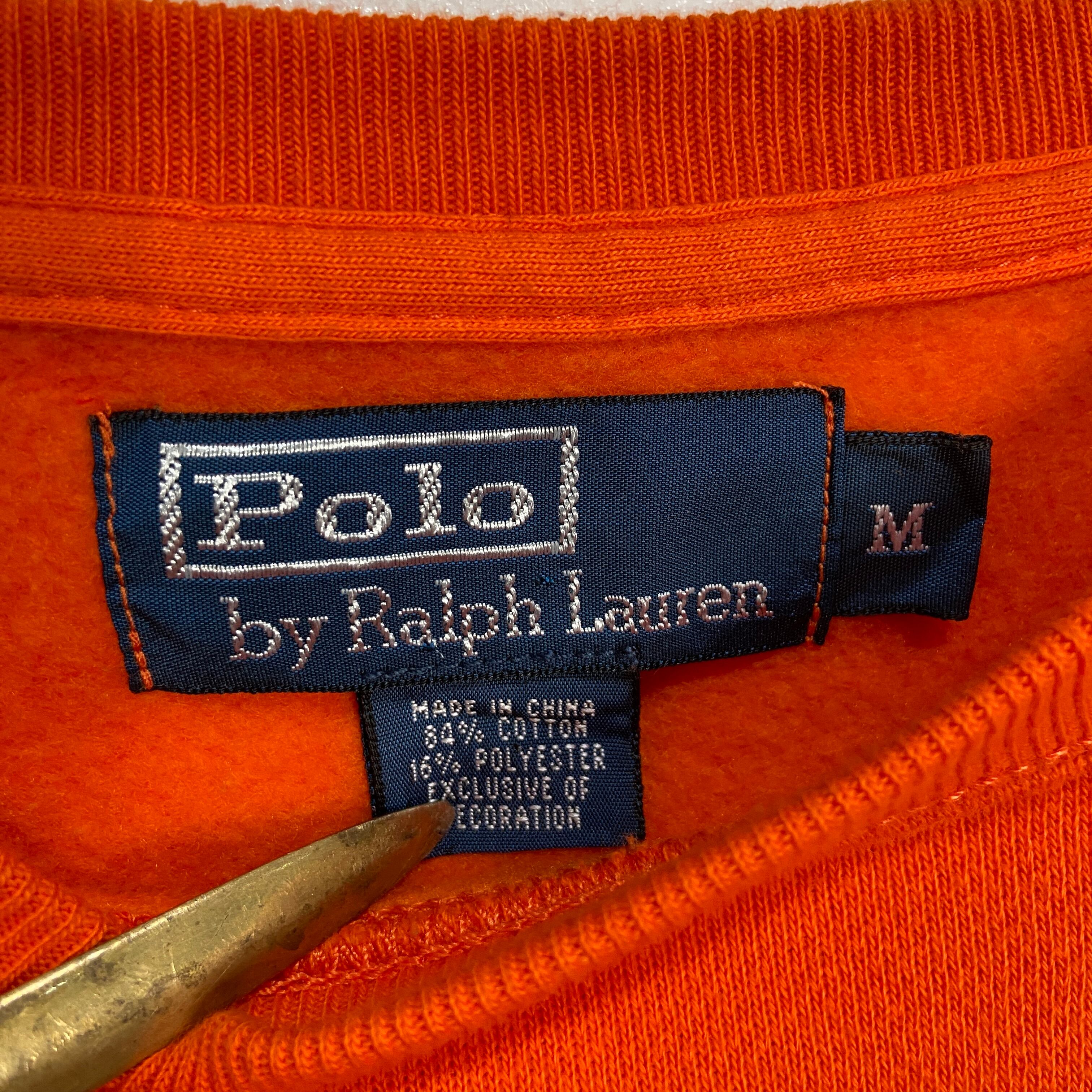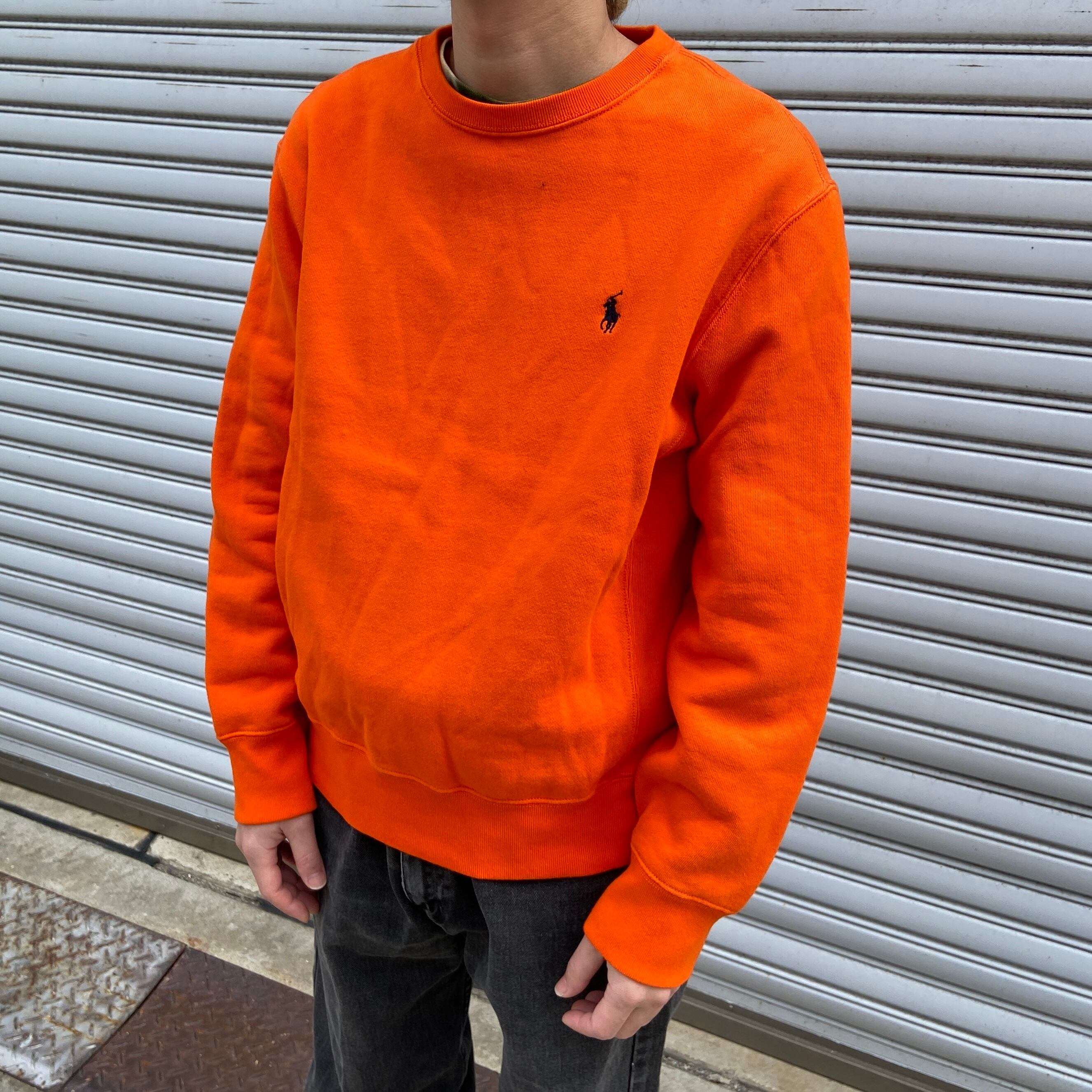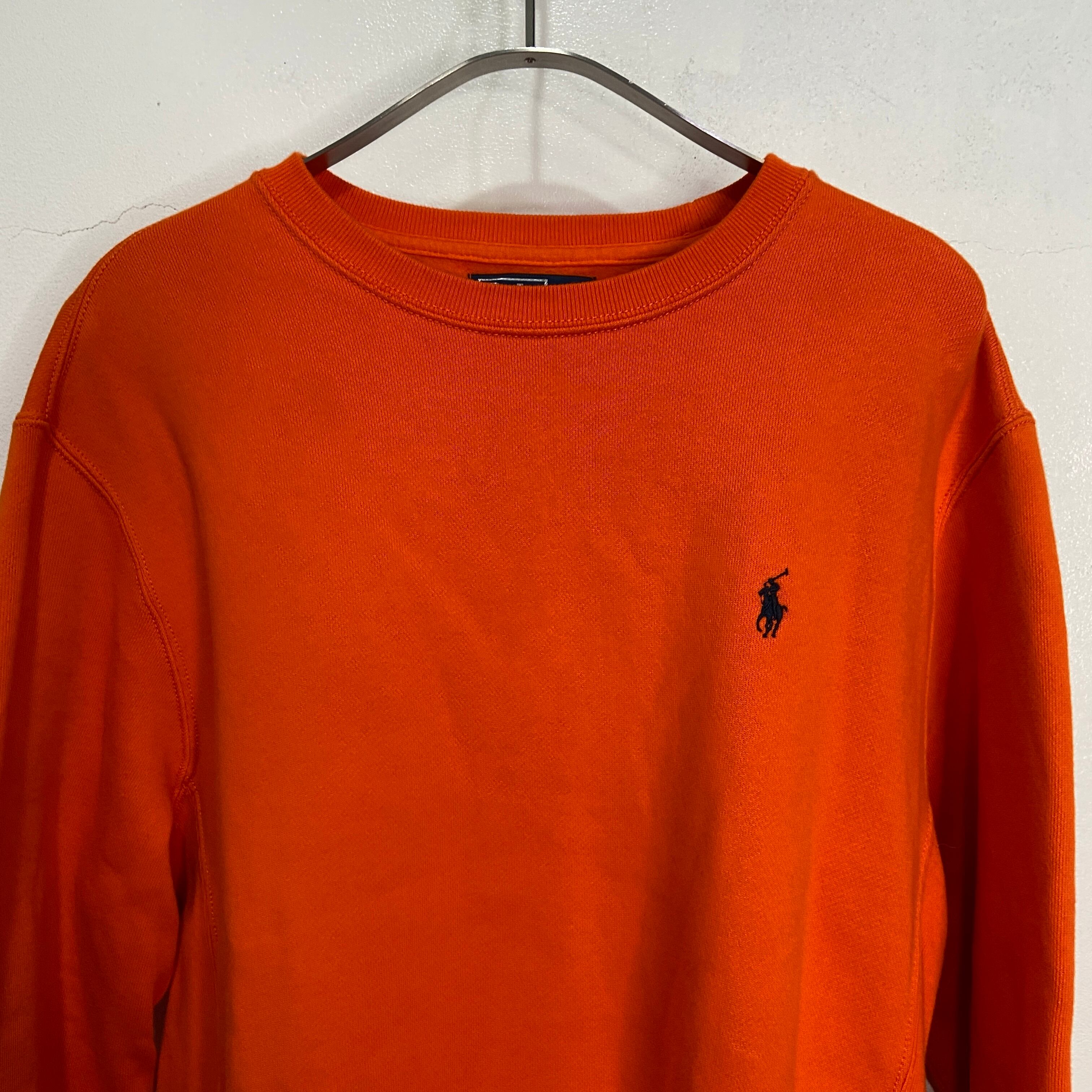 90s RalphLauren ワンポイントスウェット リバース風 オレンジ M