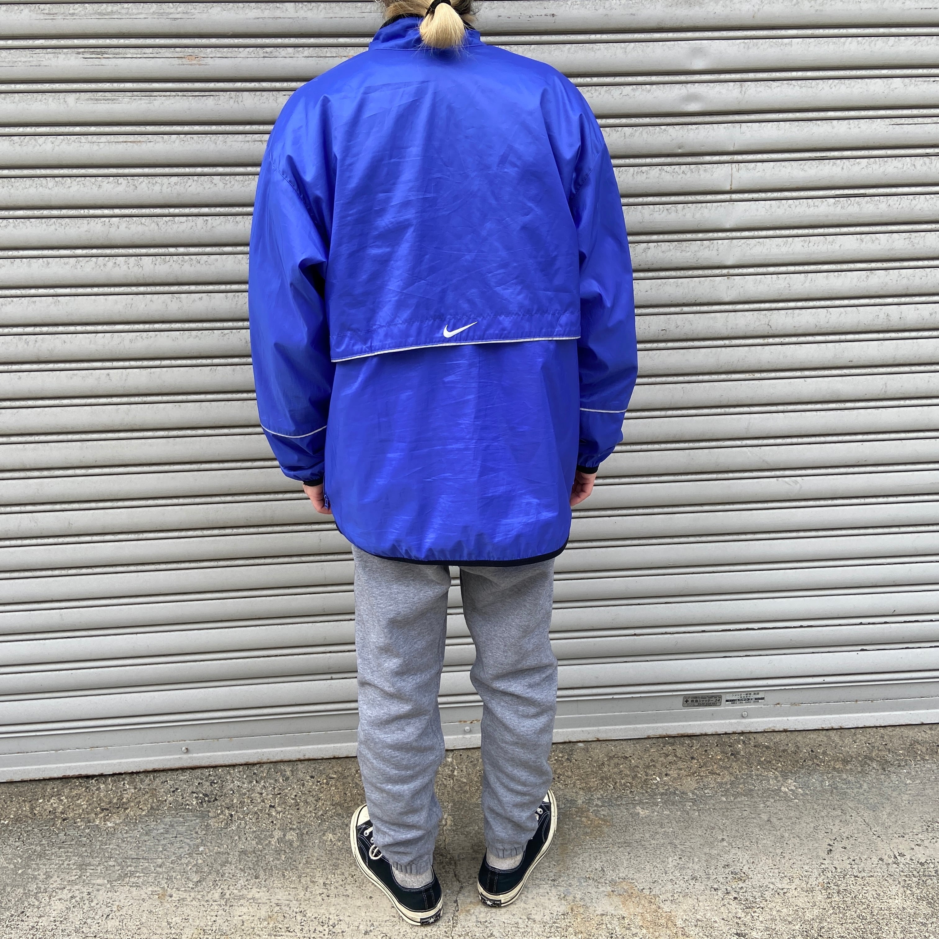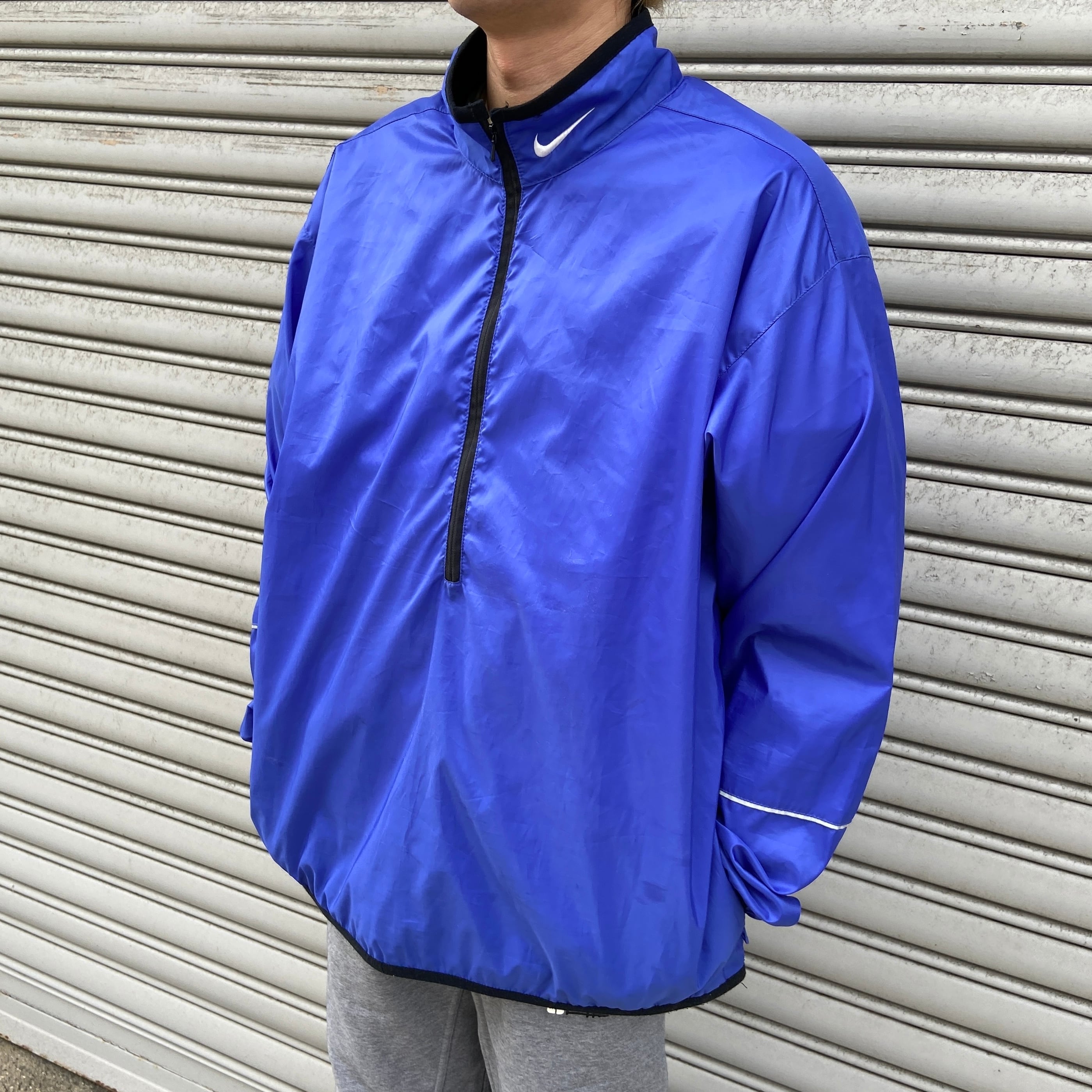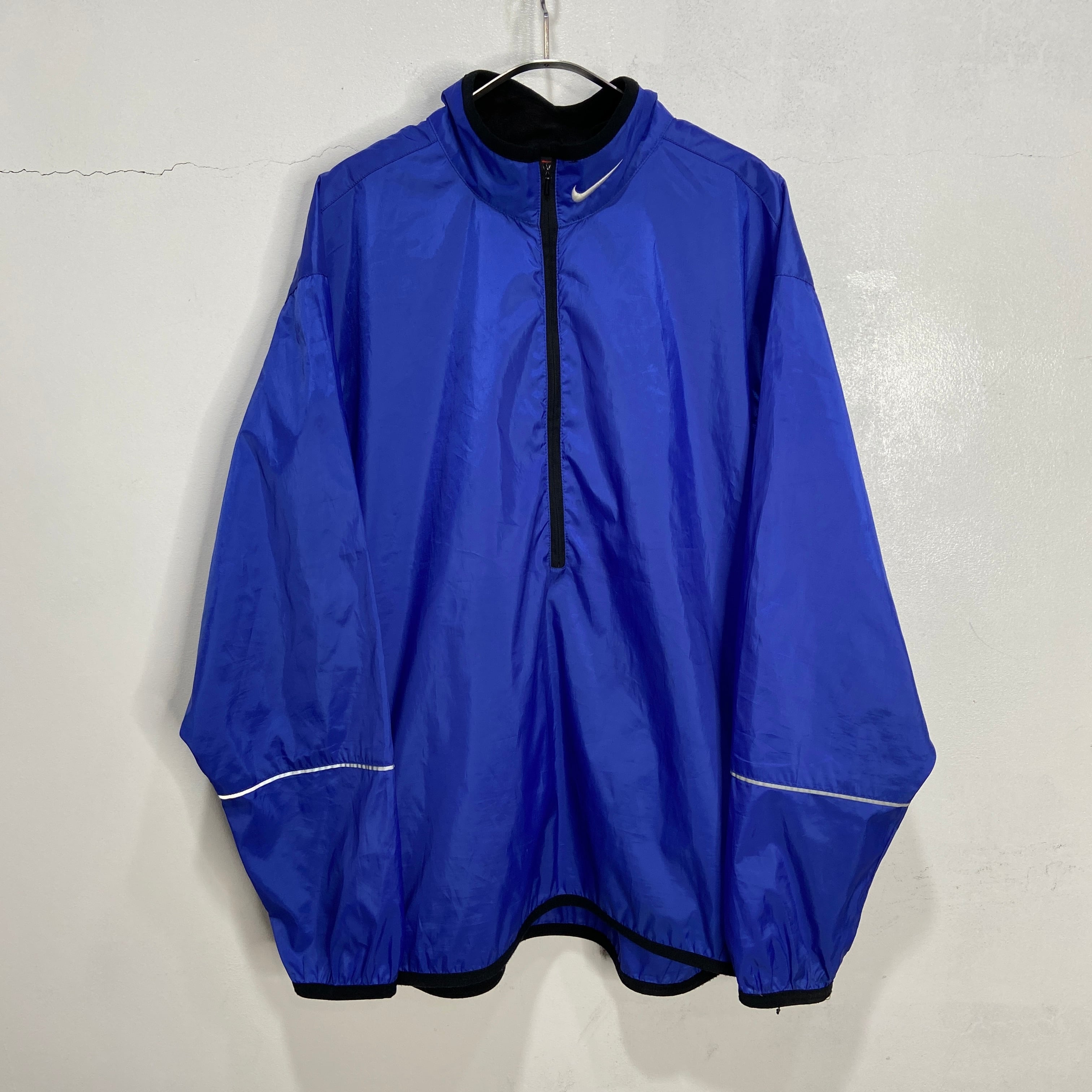 NIKE ハーフジップナイロンプルオーバー スウォッシュロゴ ブルー L