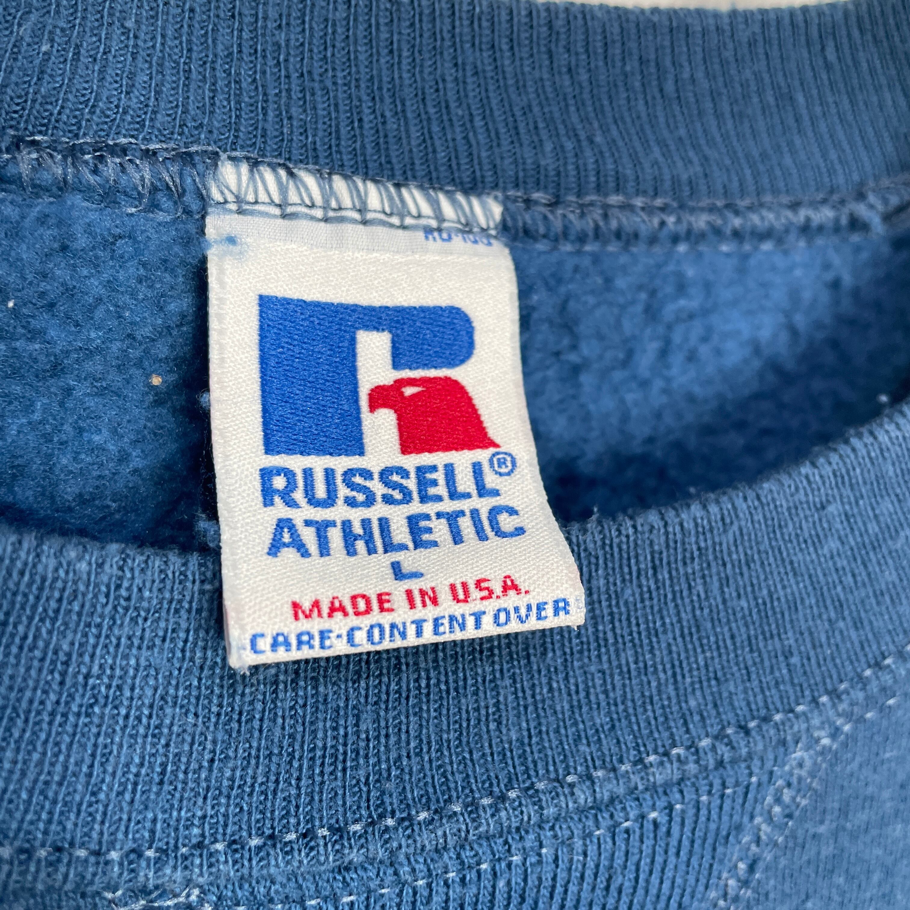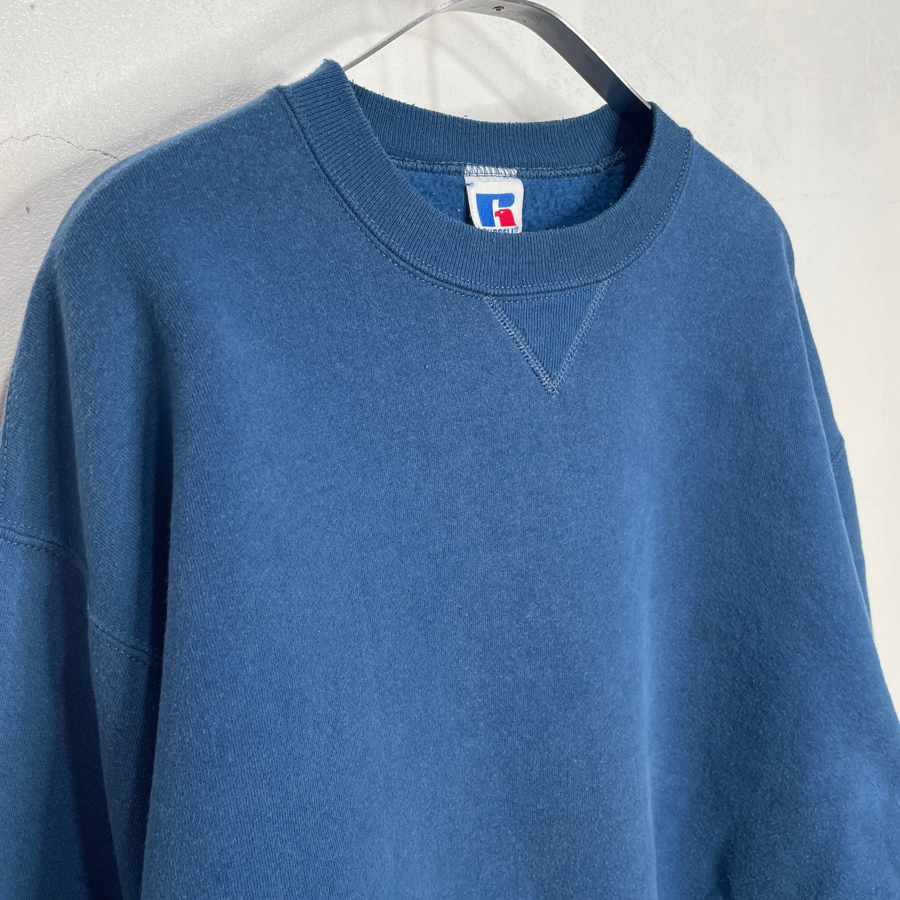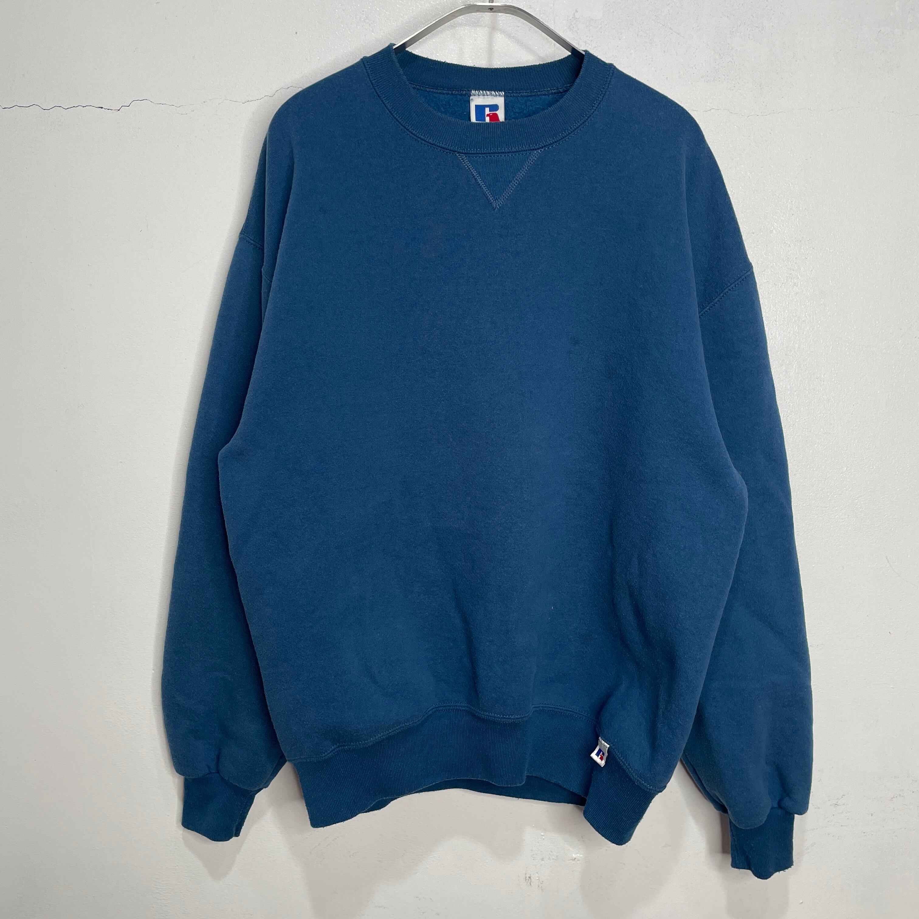 90s USA製 RUSSELATHLETIC 前V無地スウェット 青系 L