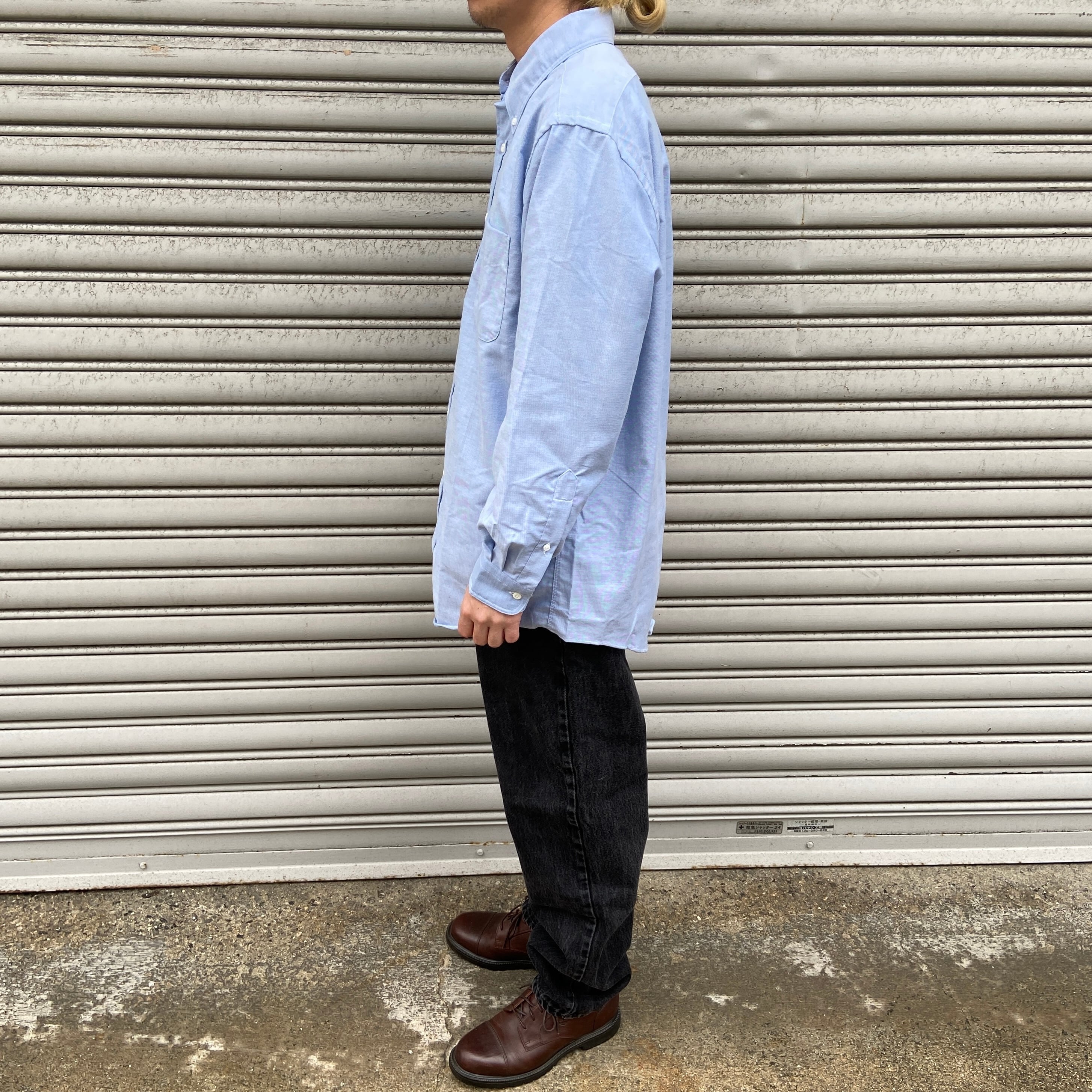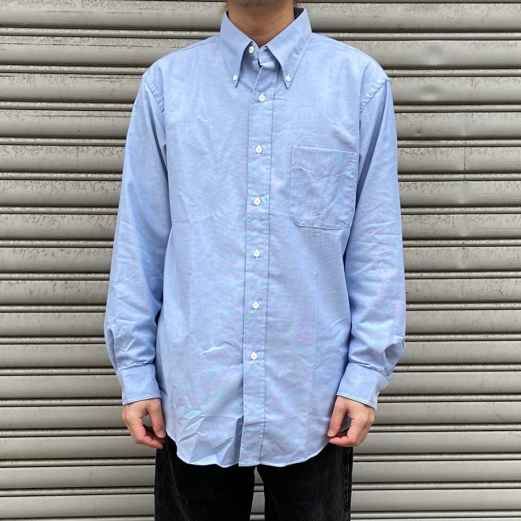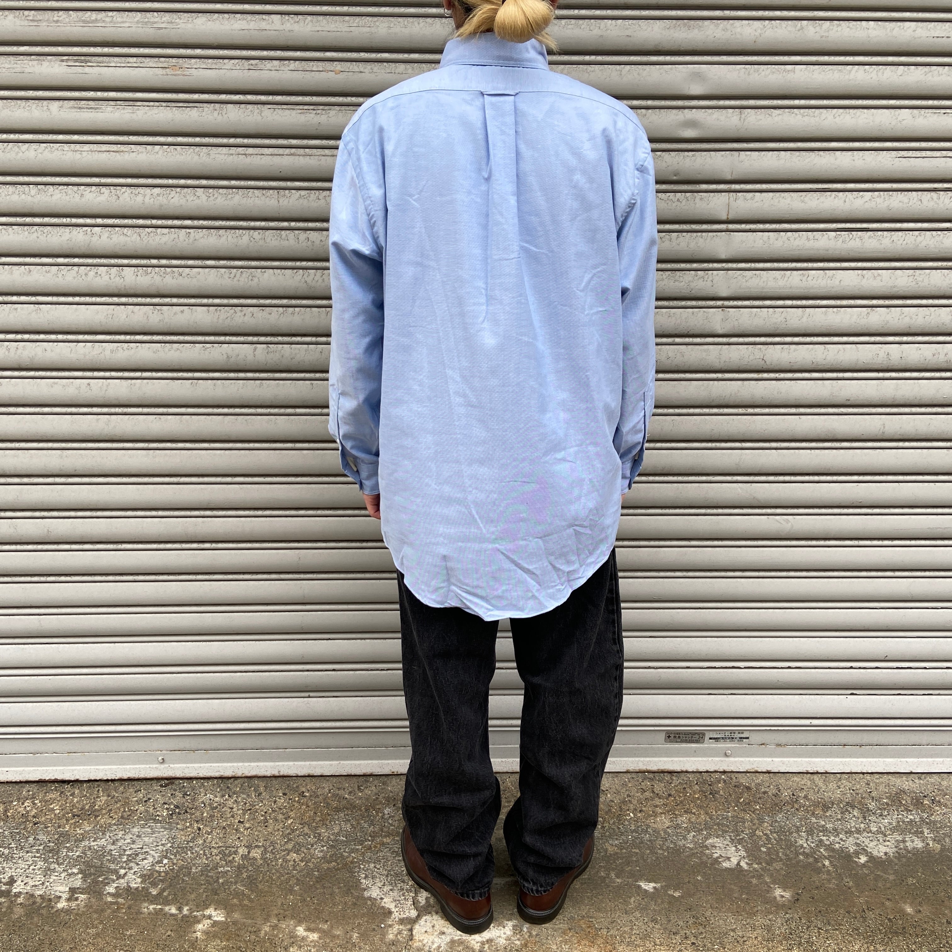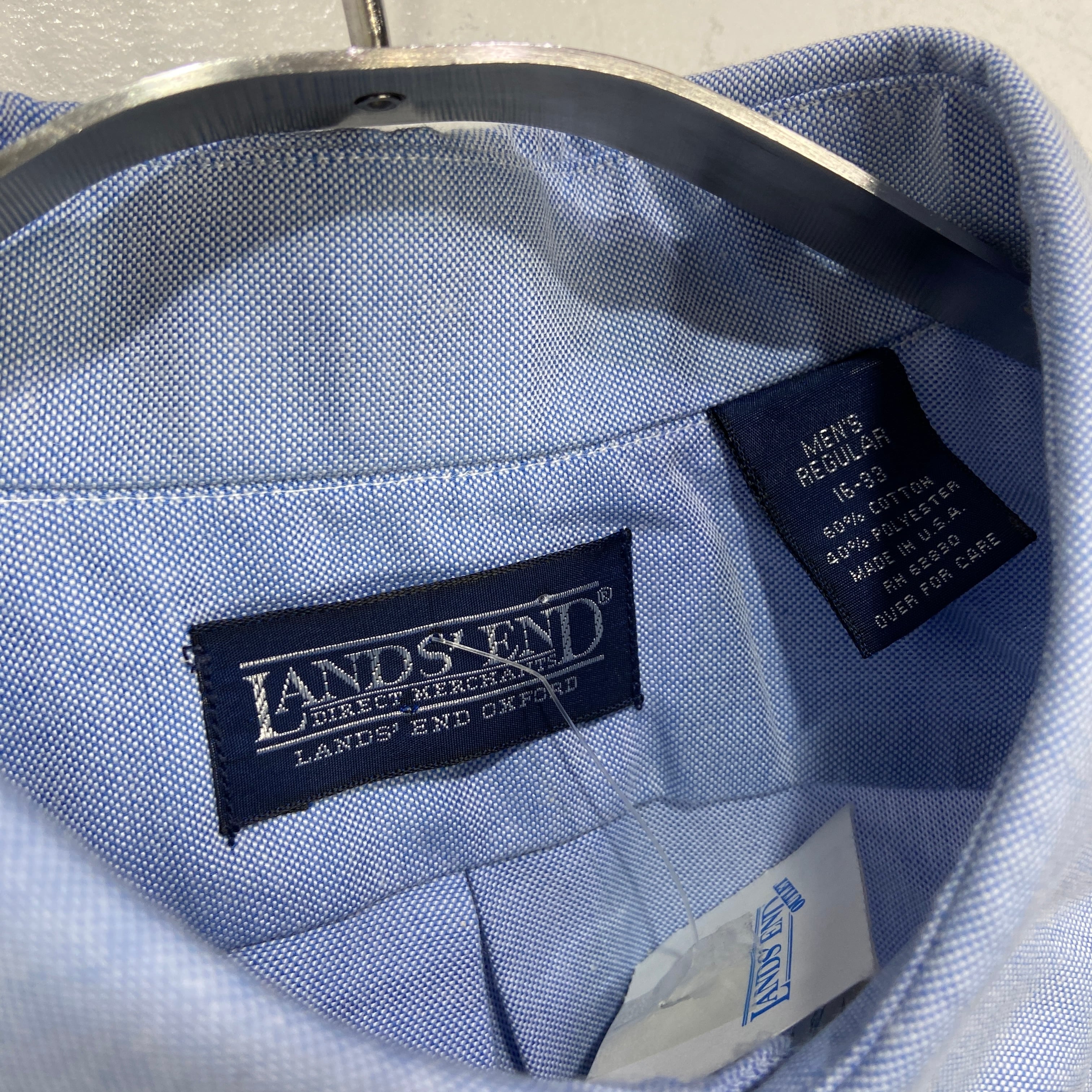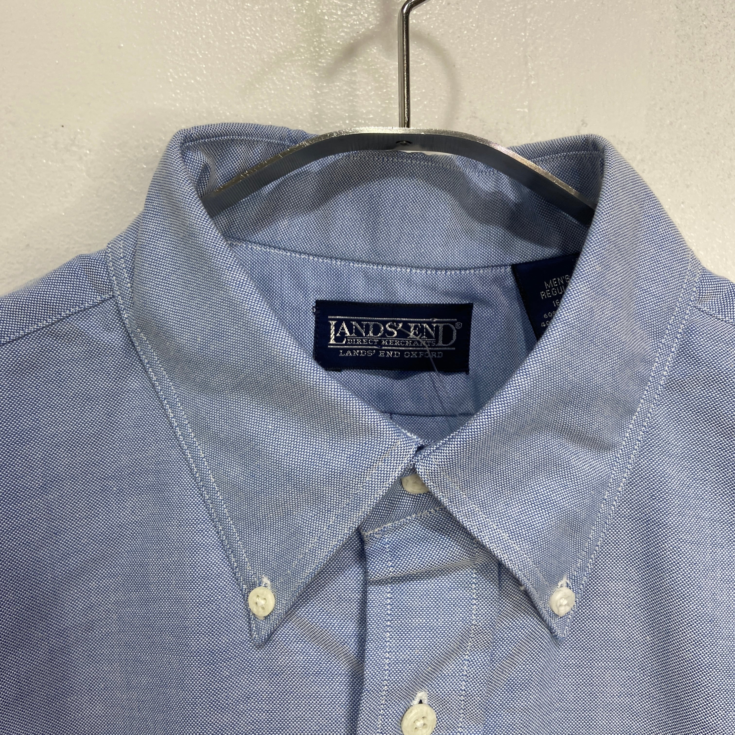 デッドストック 90s USA製 LANDS'END 長袖ボタンダウンシャツ 青