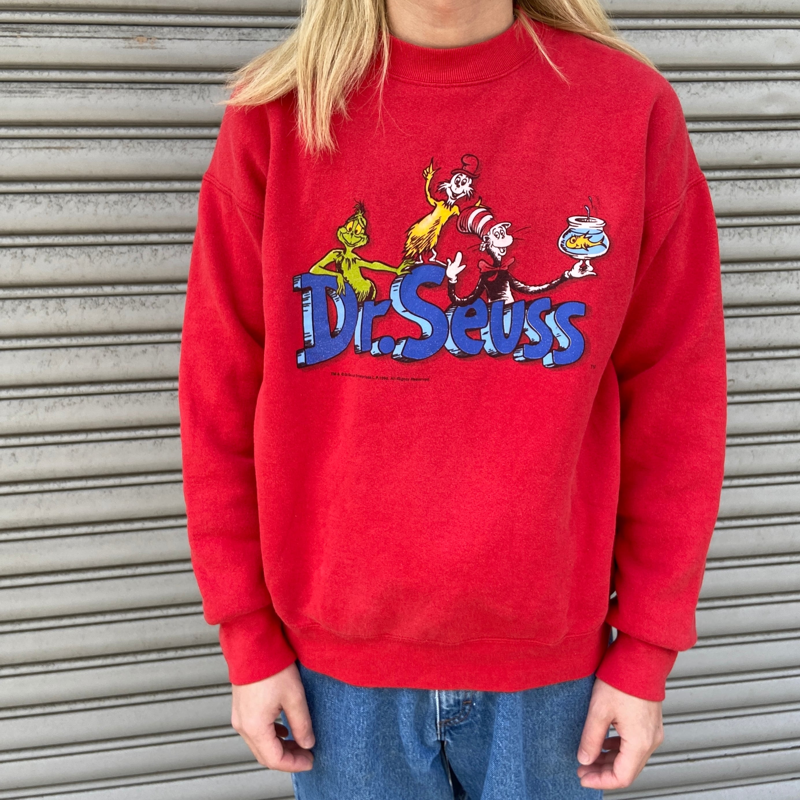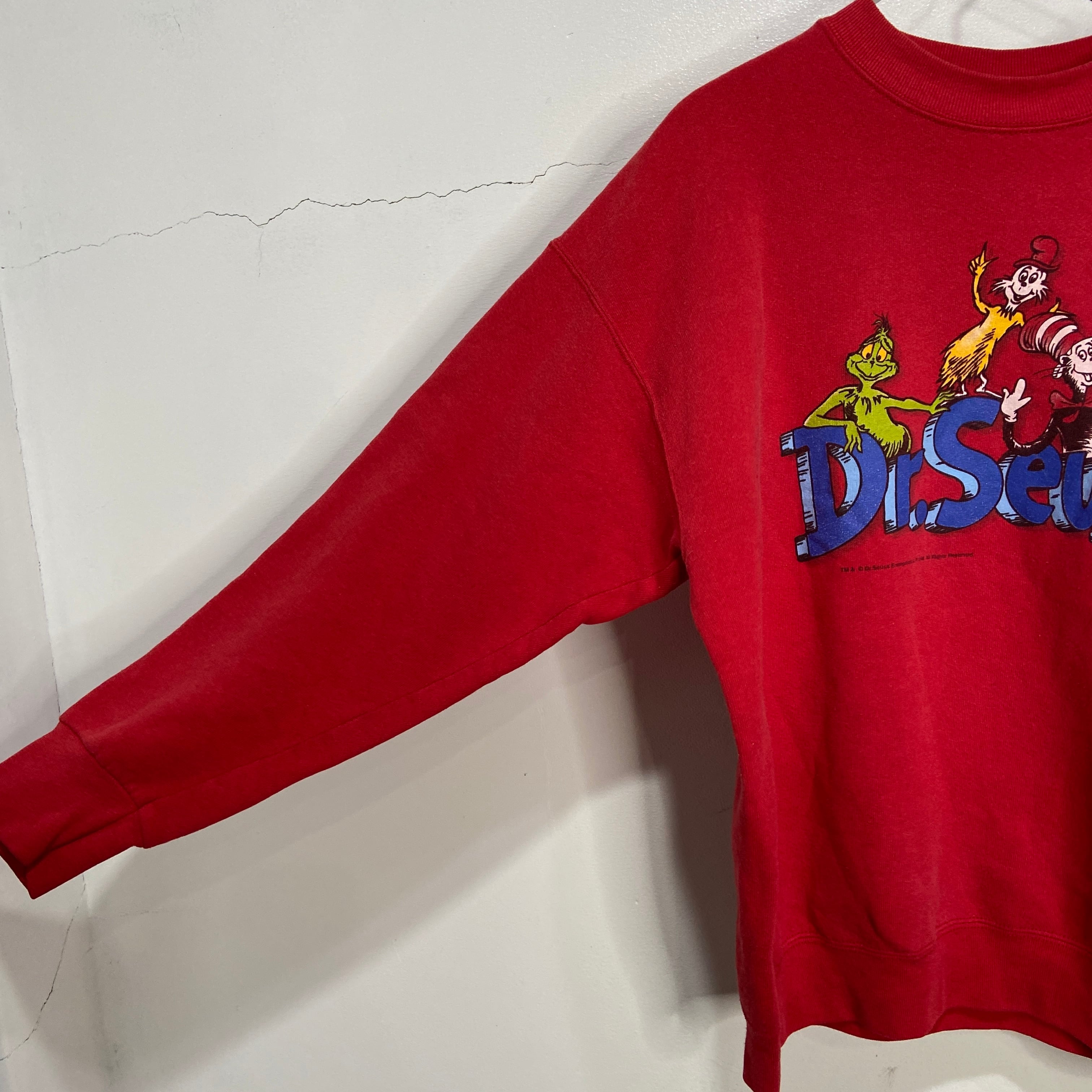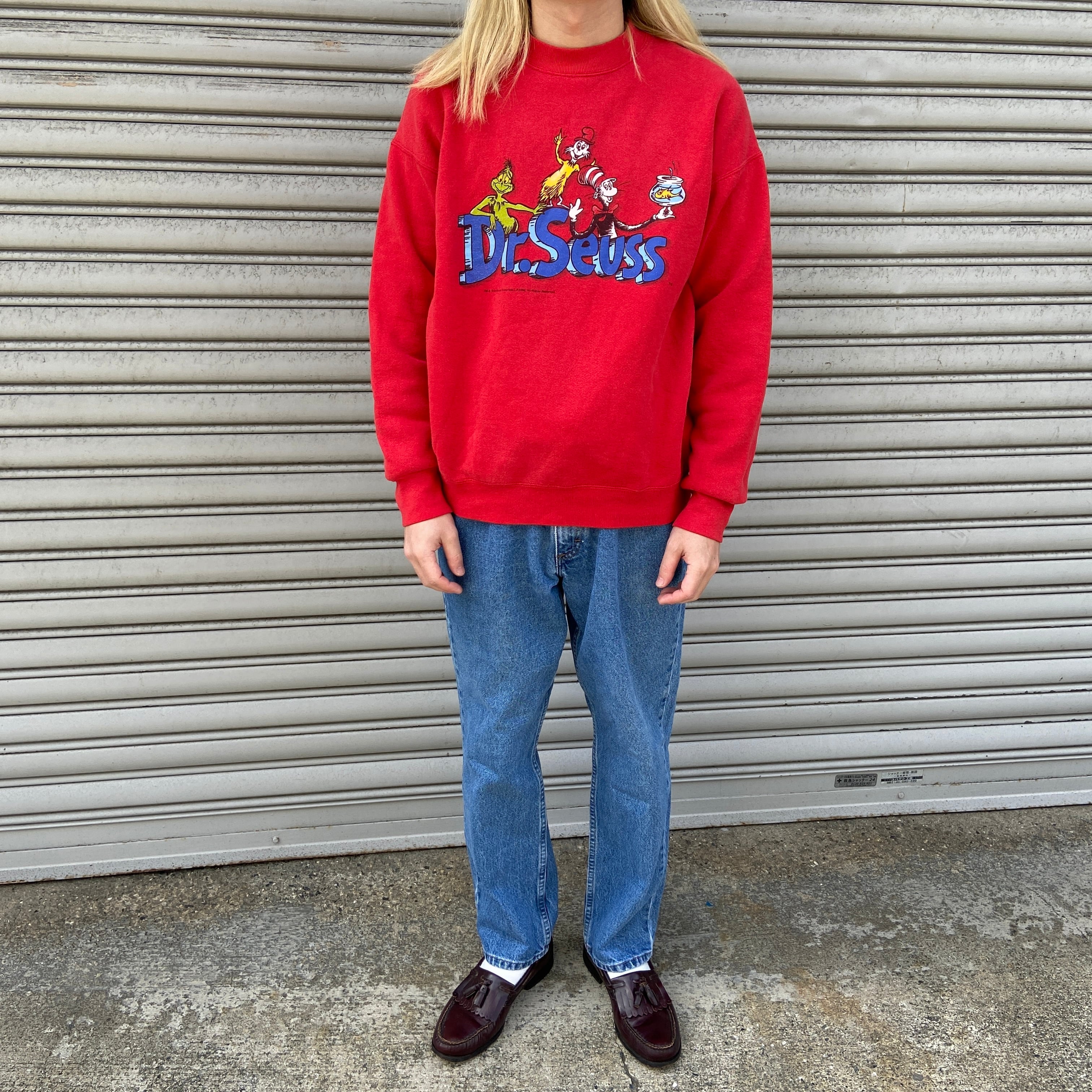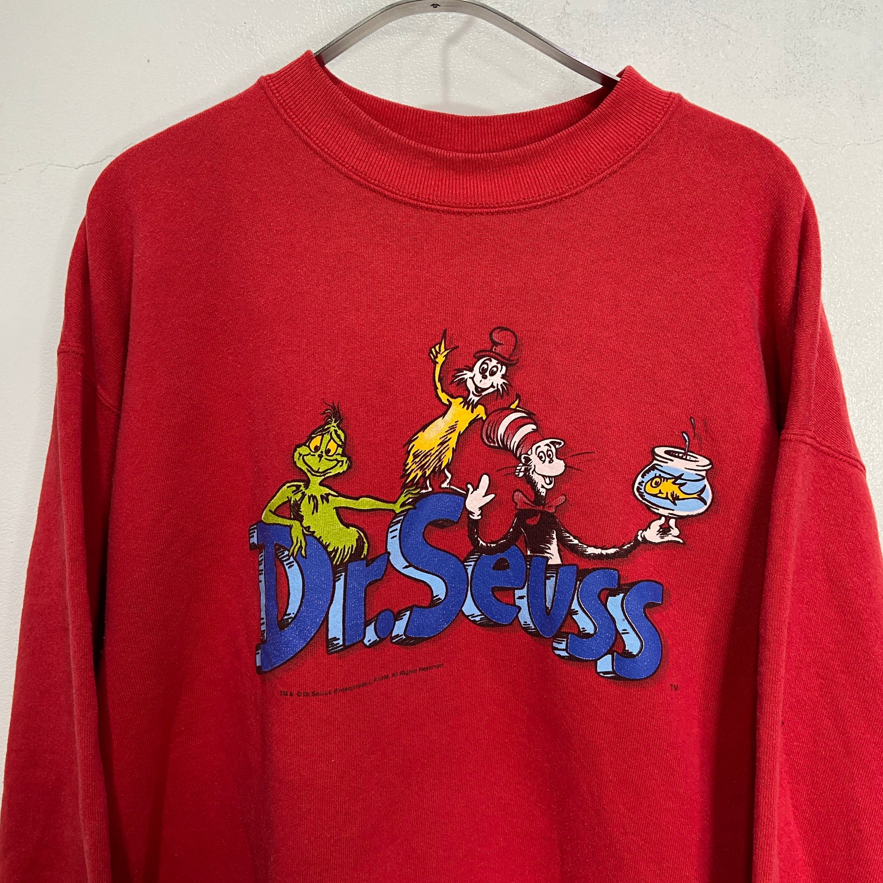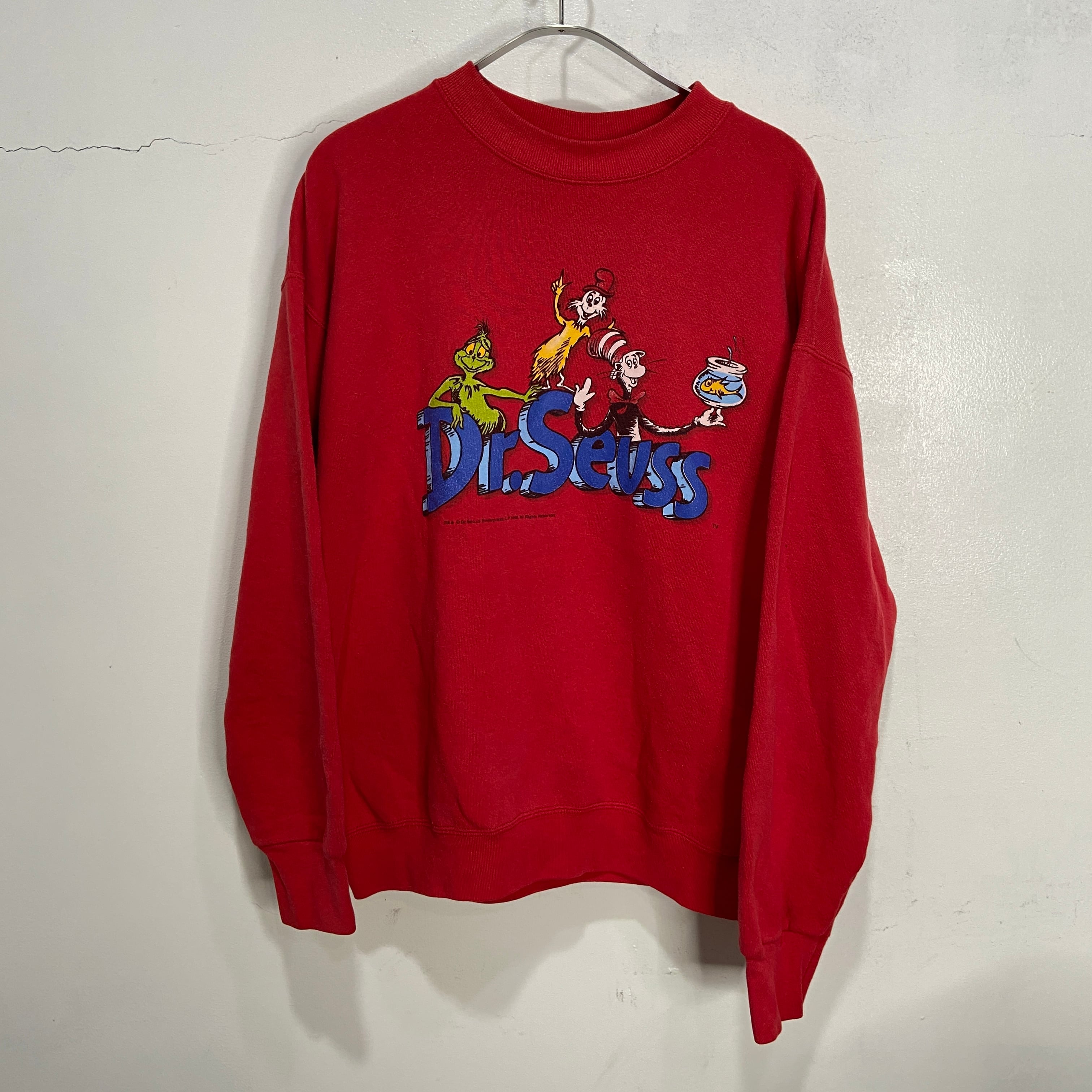 90s USA製 Dr.Seuss ドクタースースー プリントスウェット 赤 L