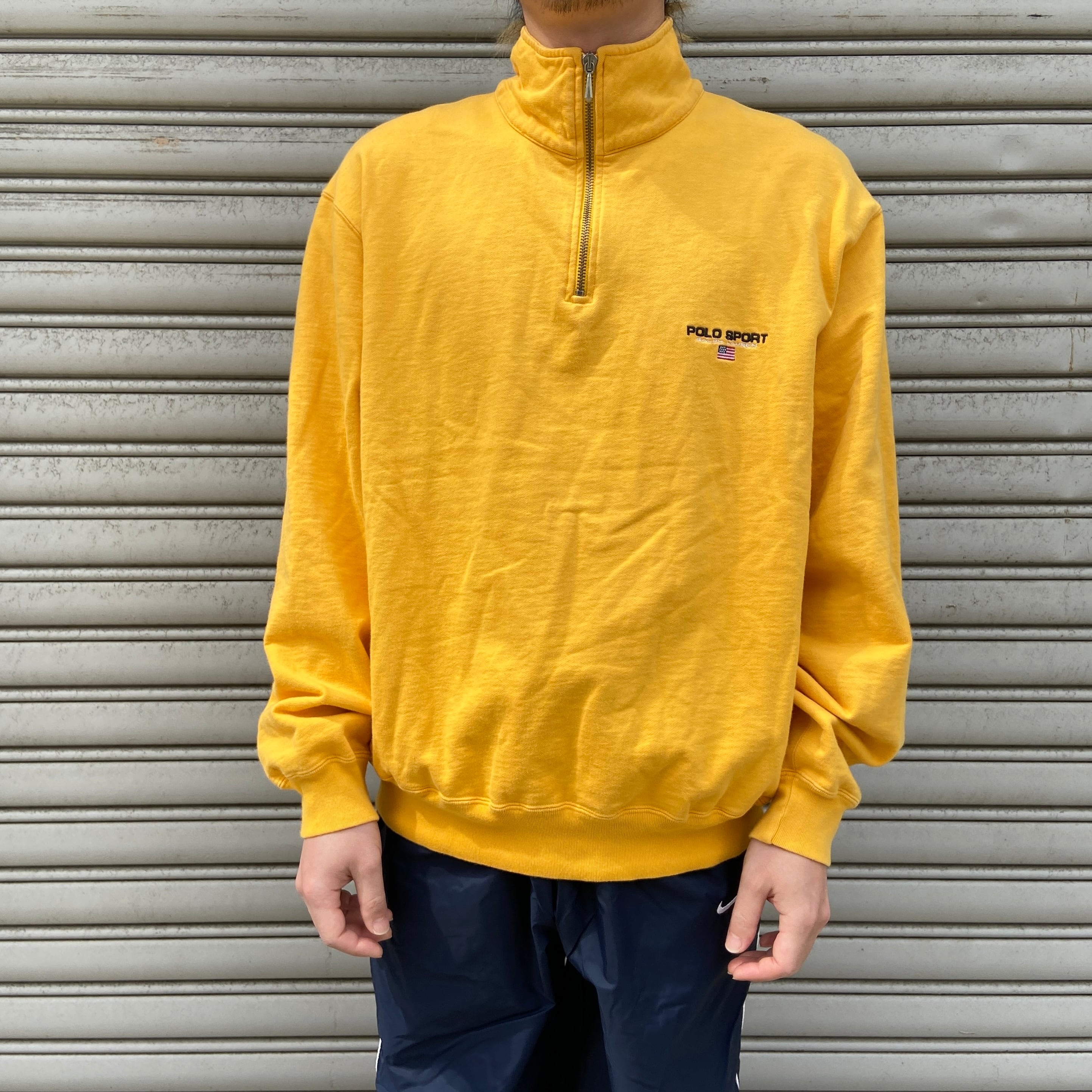 90s POLOSPORT USAフラッグ ハーフジップスウェット 黄 M