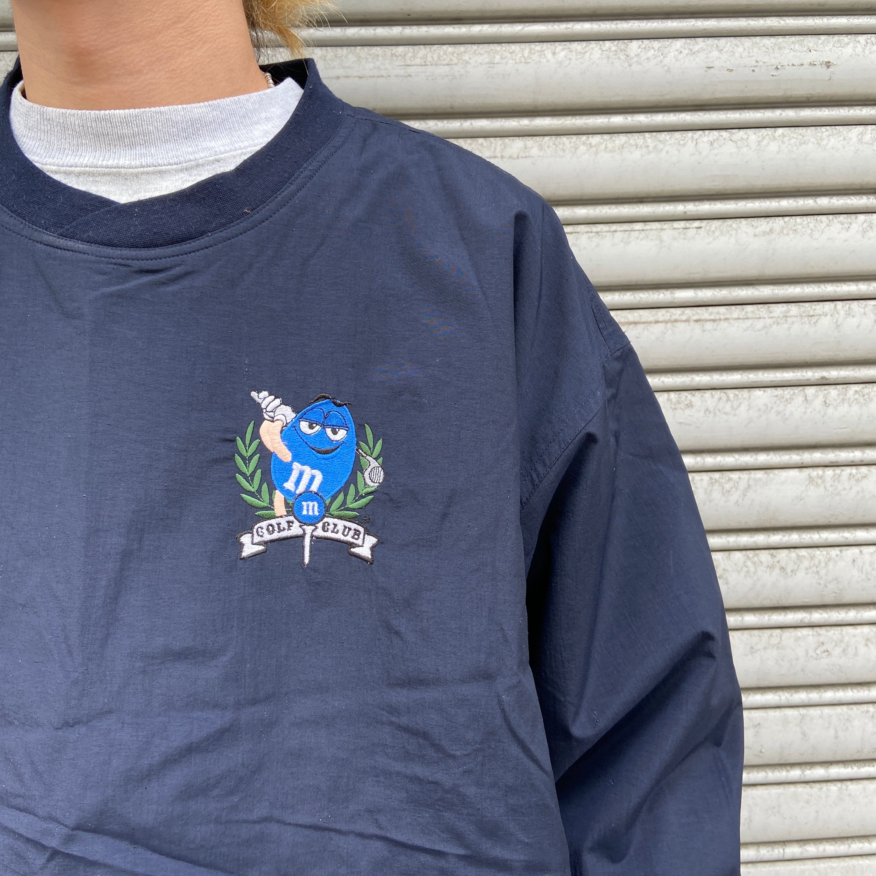 90s M&M'S ナイロンプルオーバー キャラ ワンポイント ピステ L