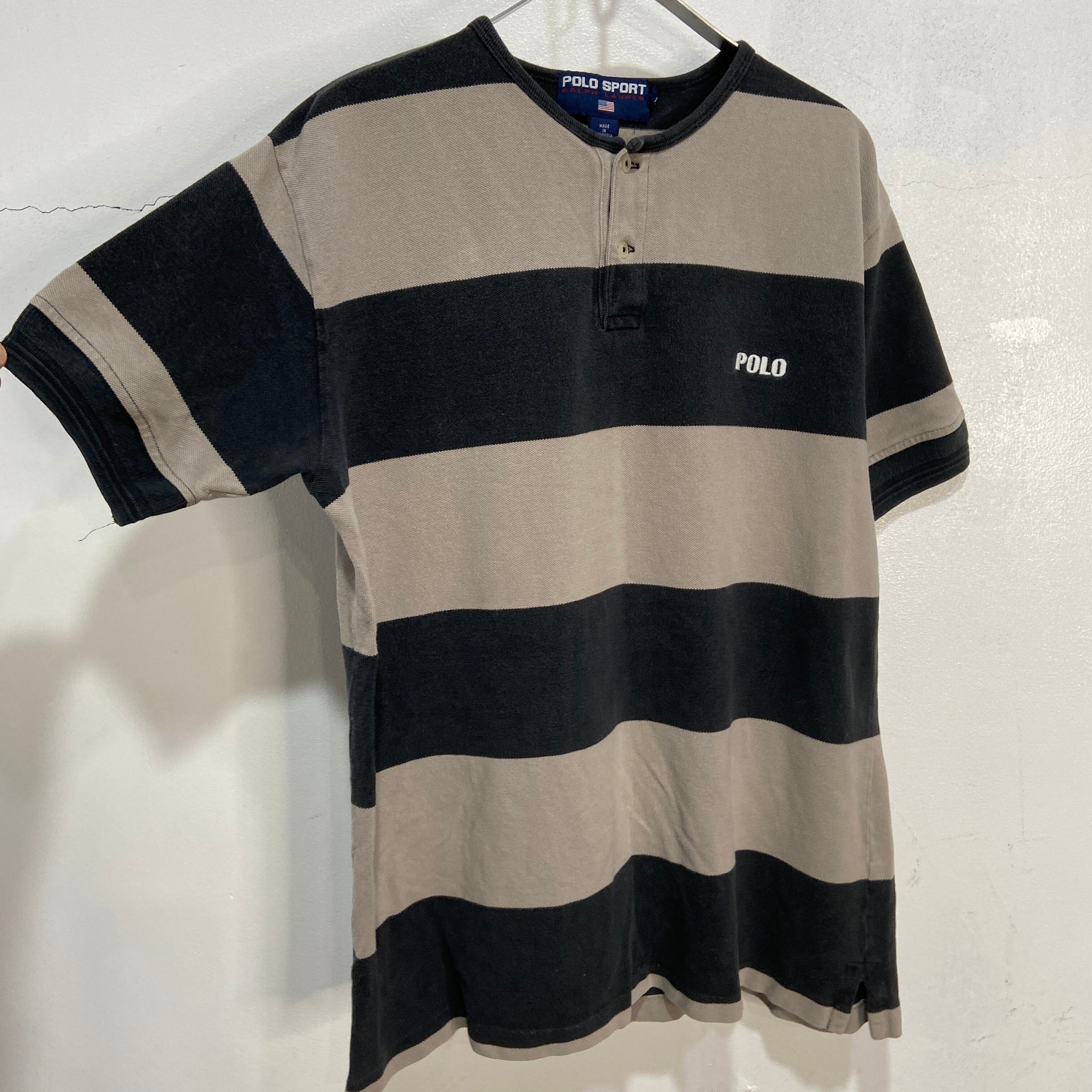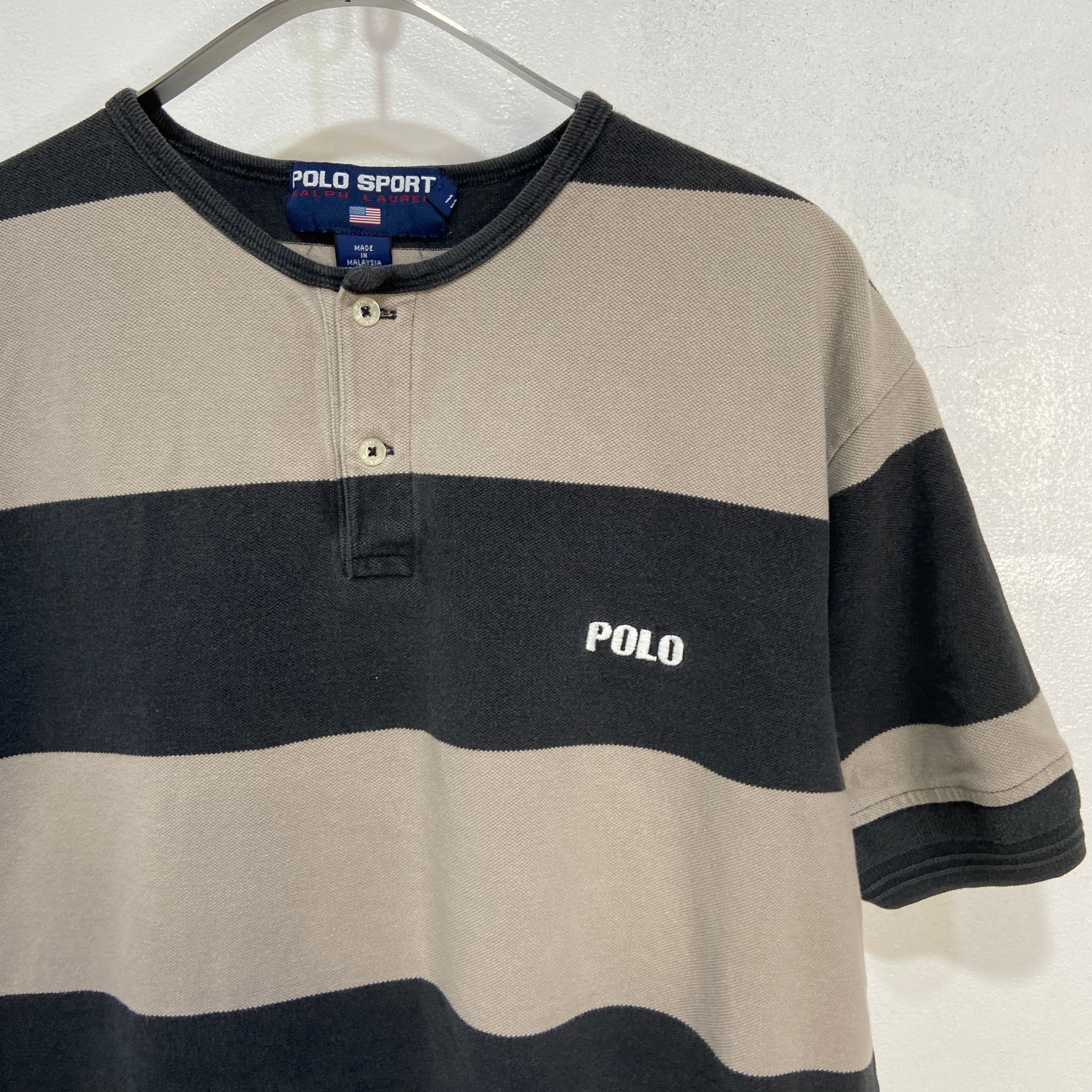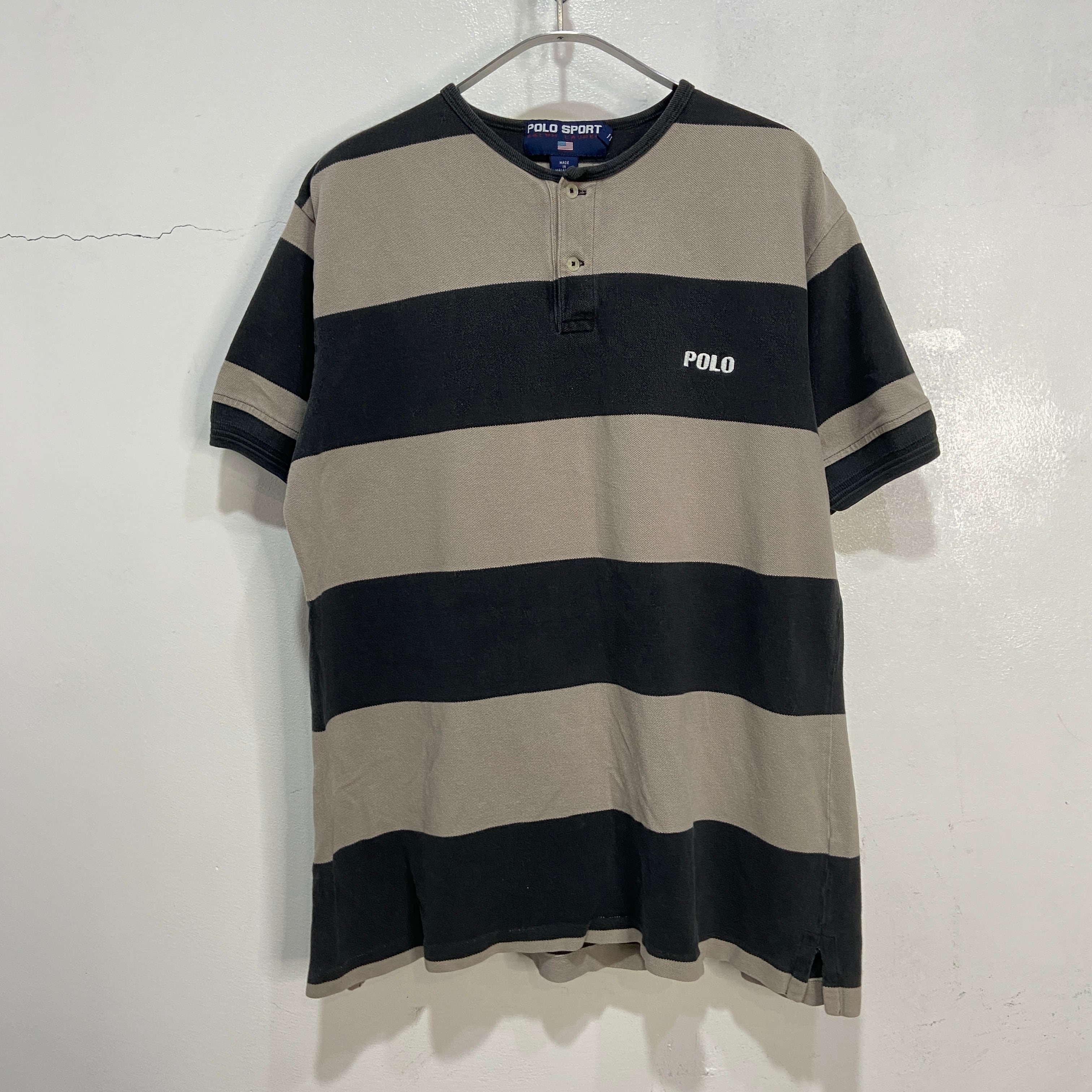 90s POLOSPORT ポロスポーツ ワイドボーダー柄ヘンリーネックTシャツ
