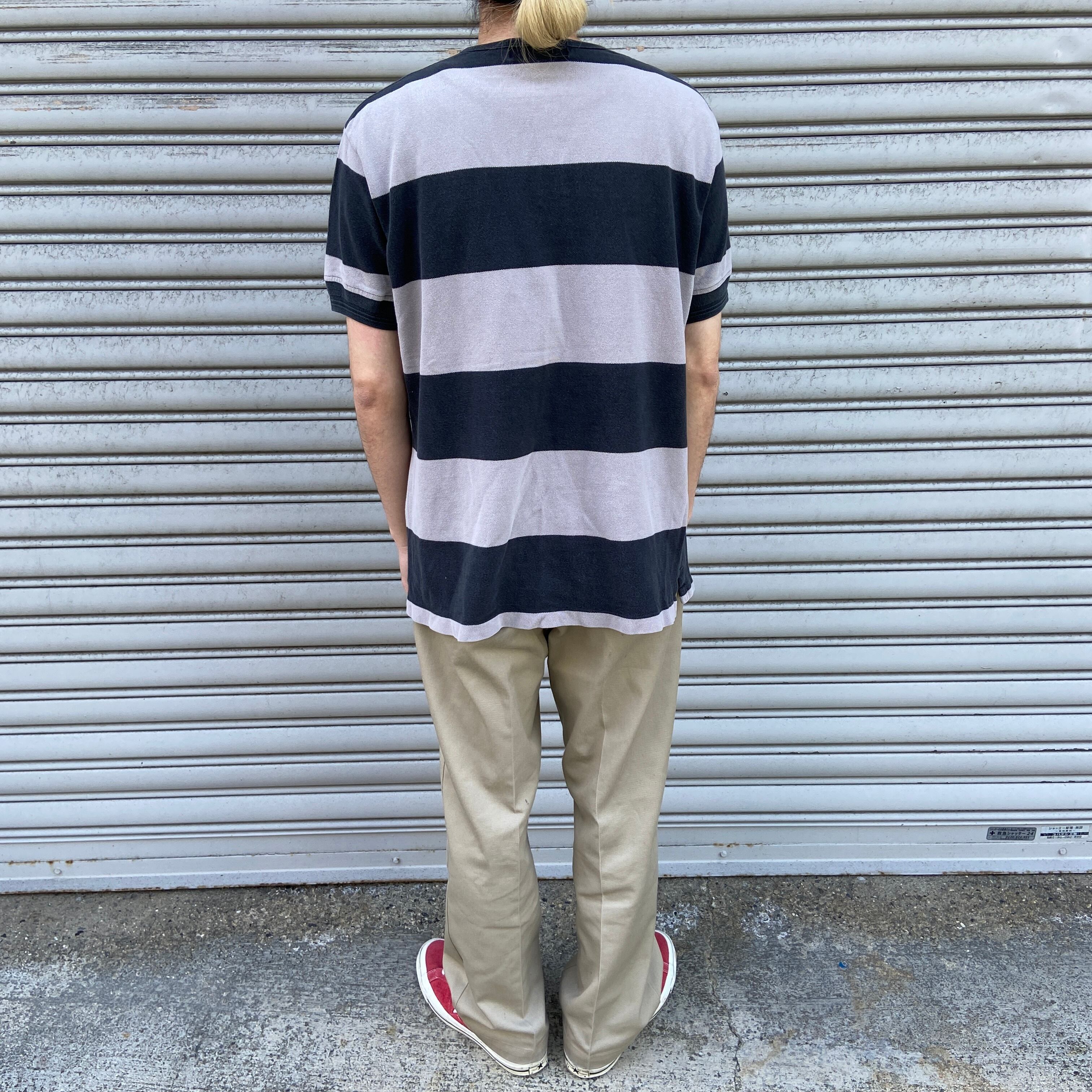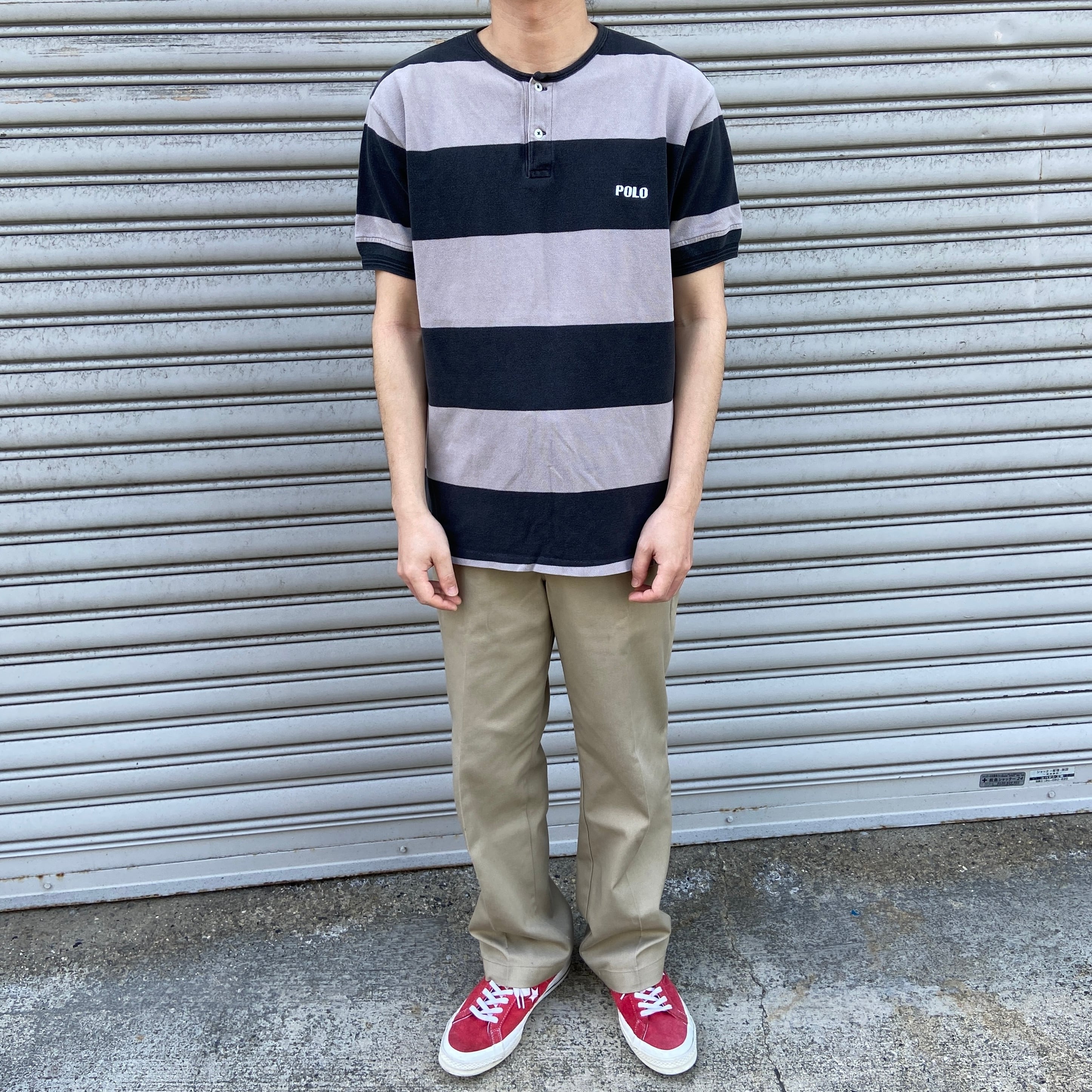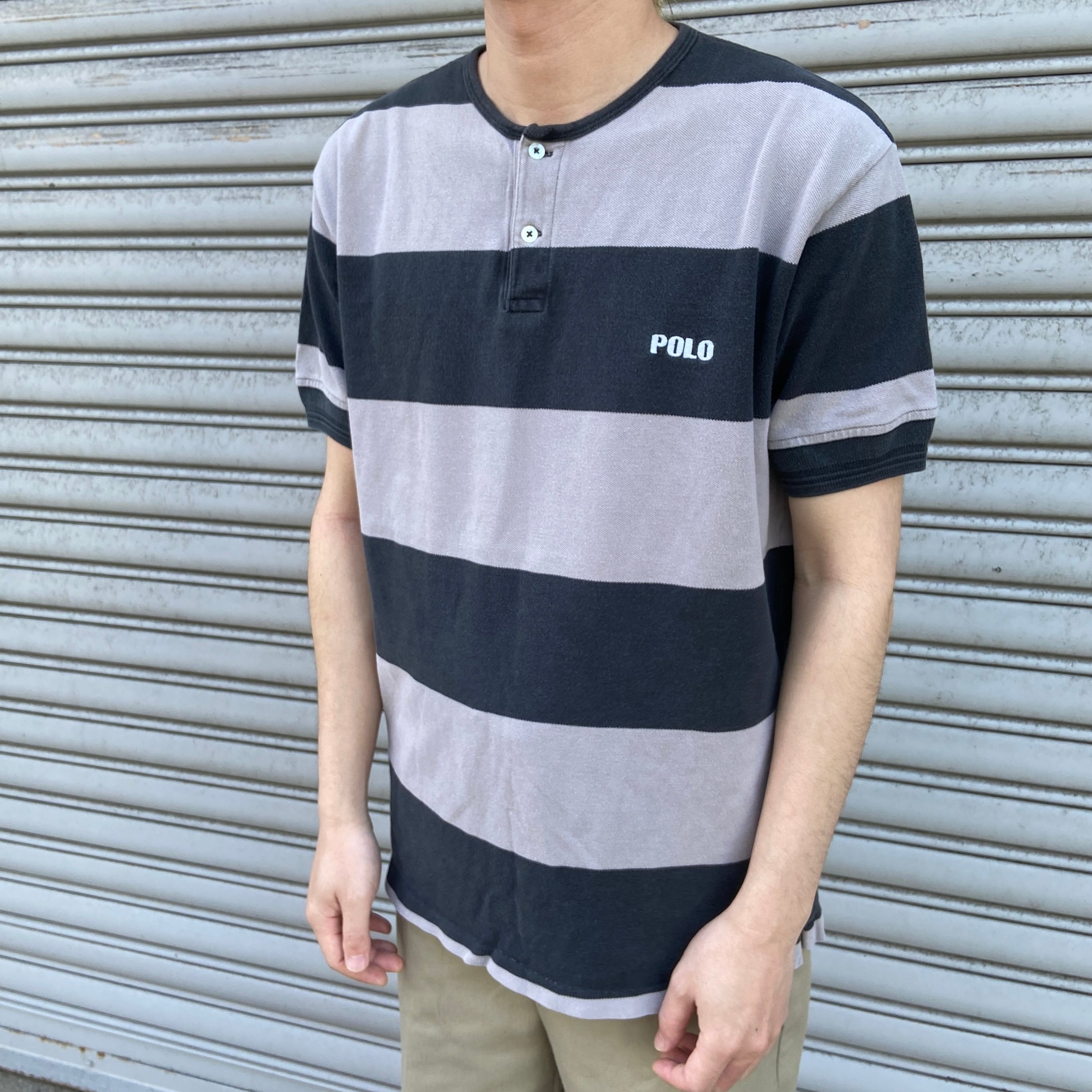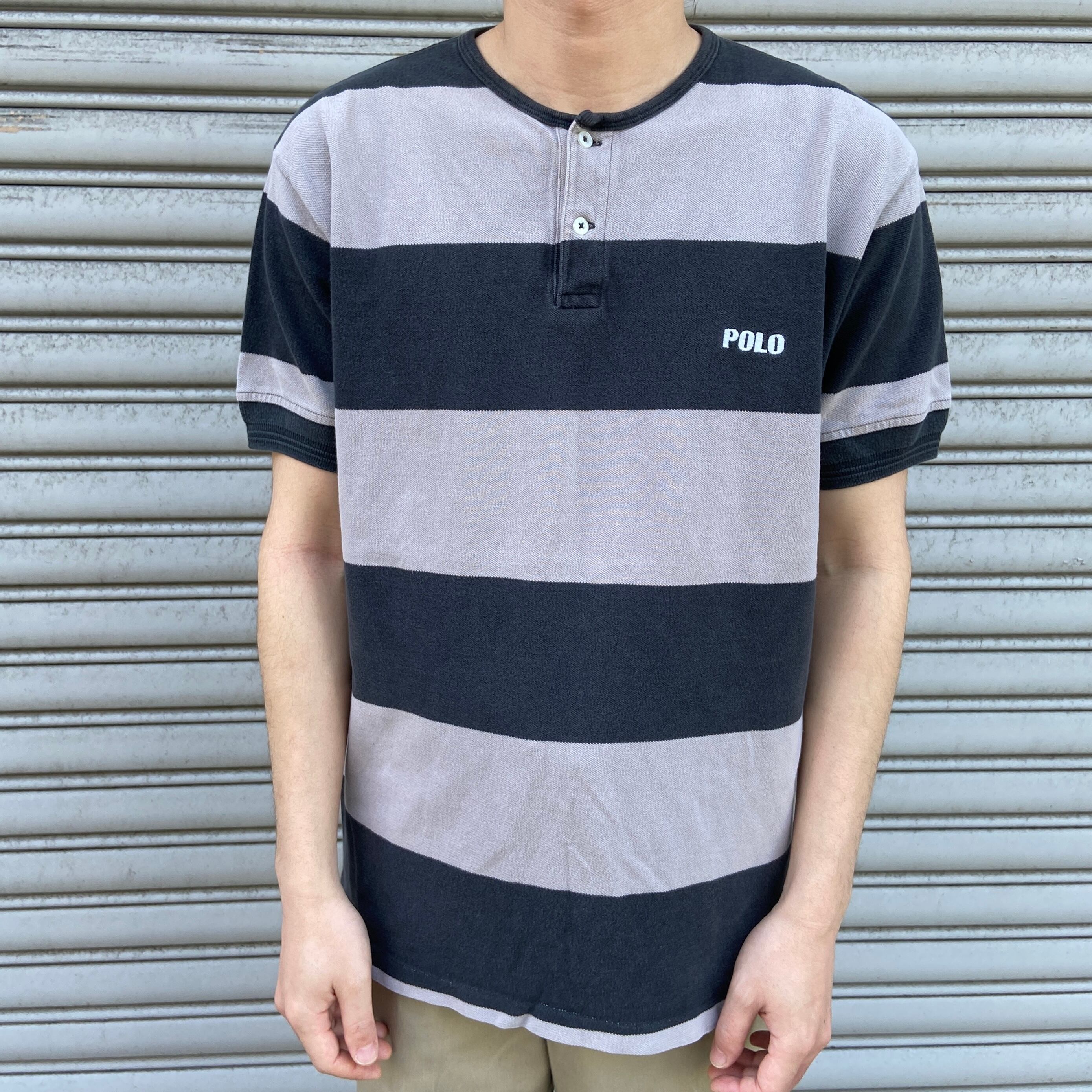 90s POLOSPORT ポロスポーツ ワイドボーダー柄ヘンリーネックTシャツ