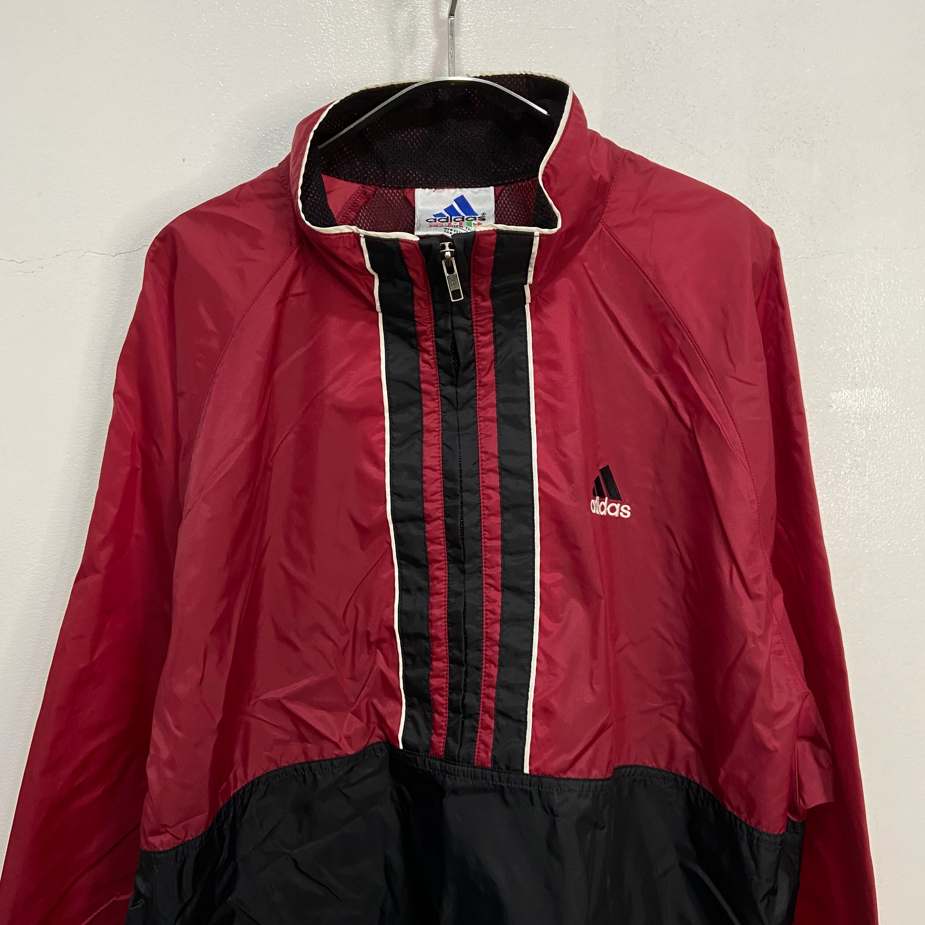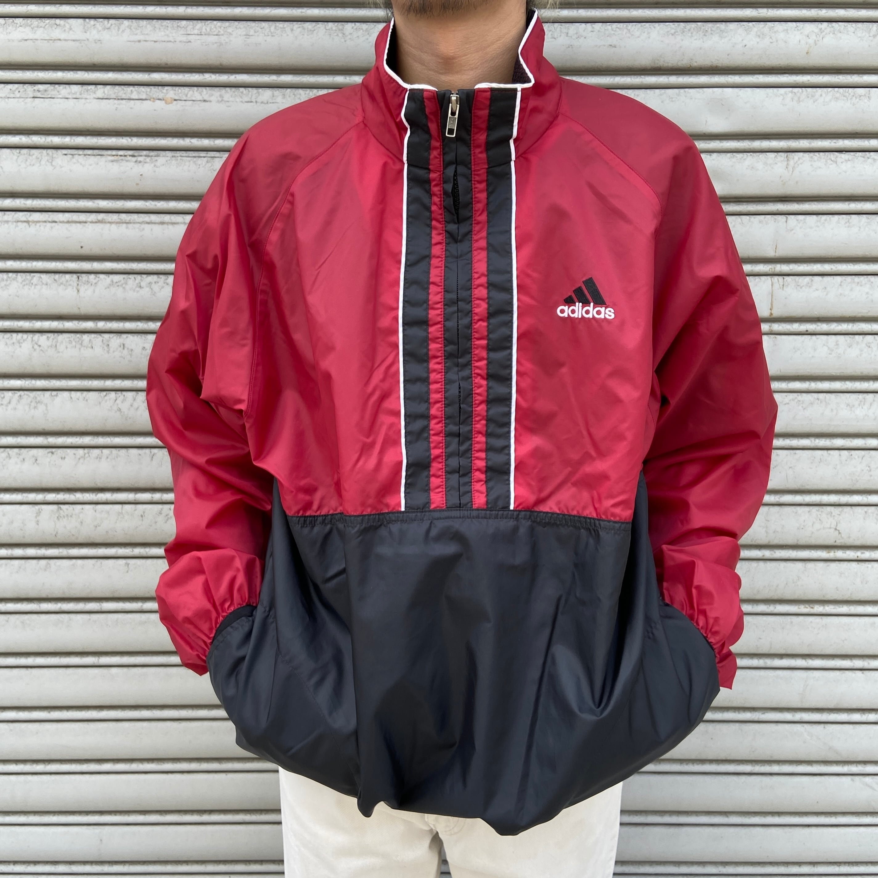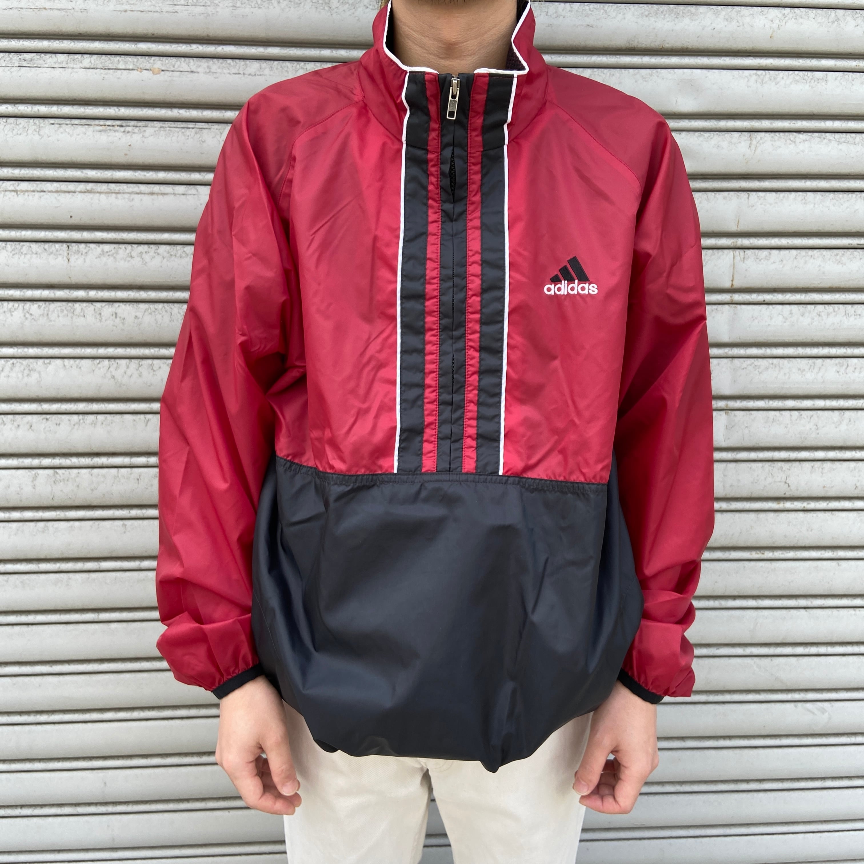 こちらは90年代adidasのハーフジップナイロンプルオーバーです!