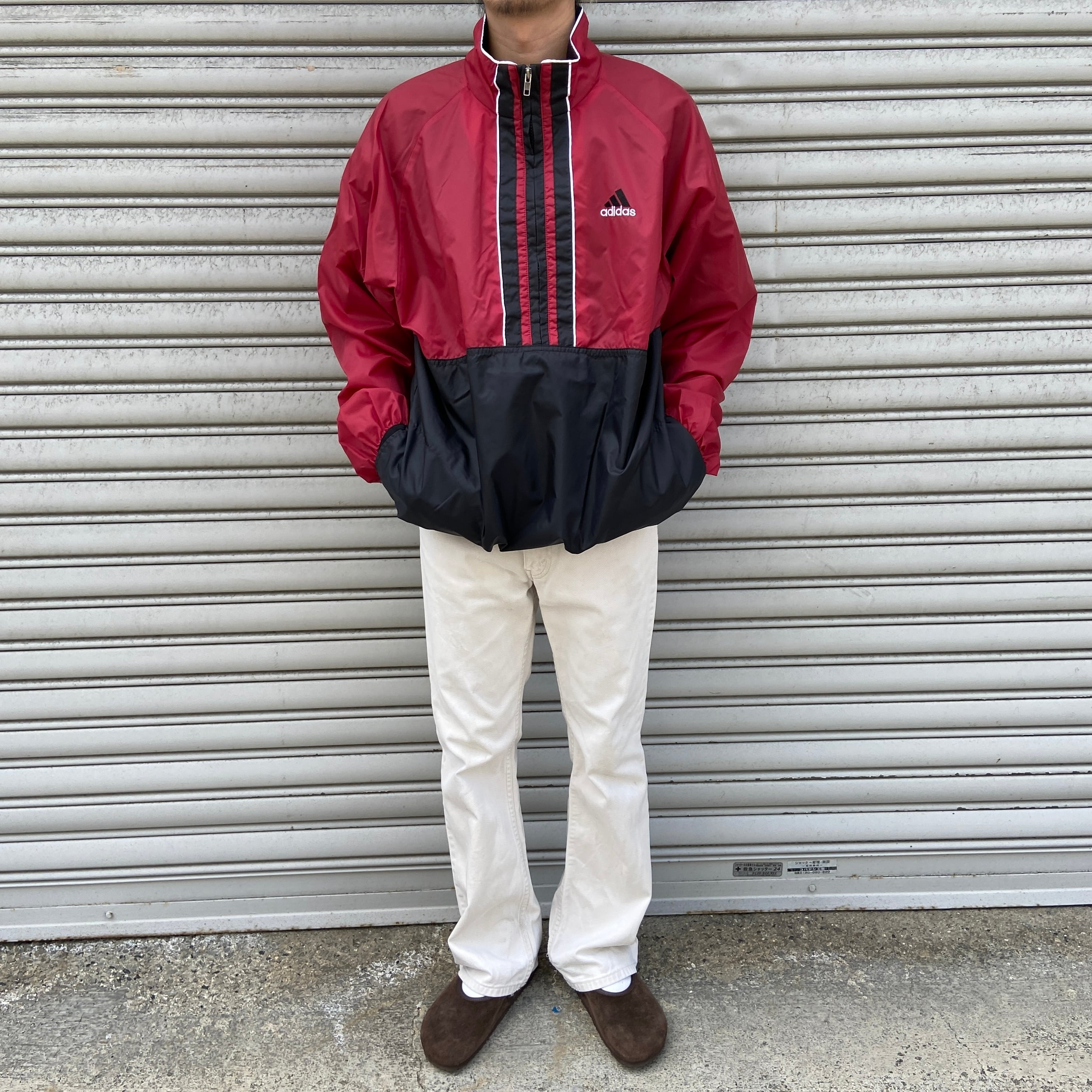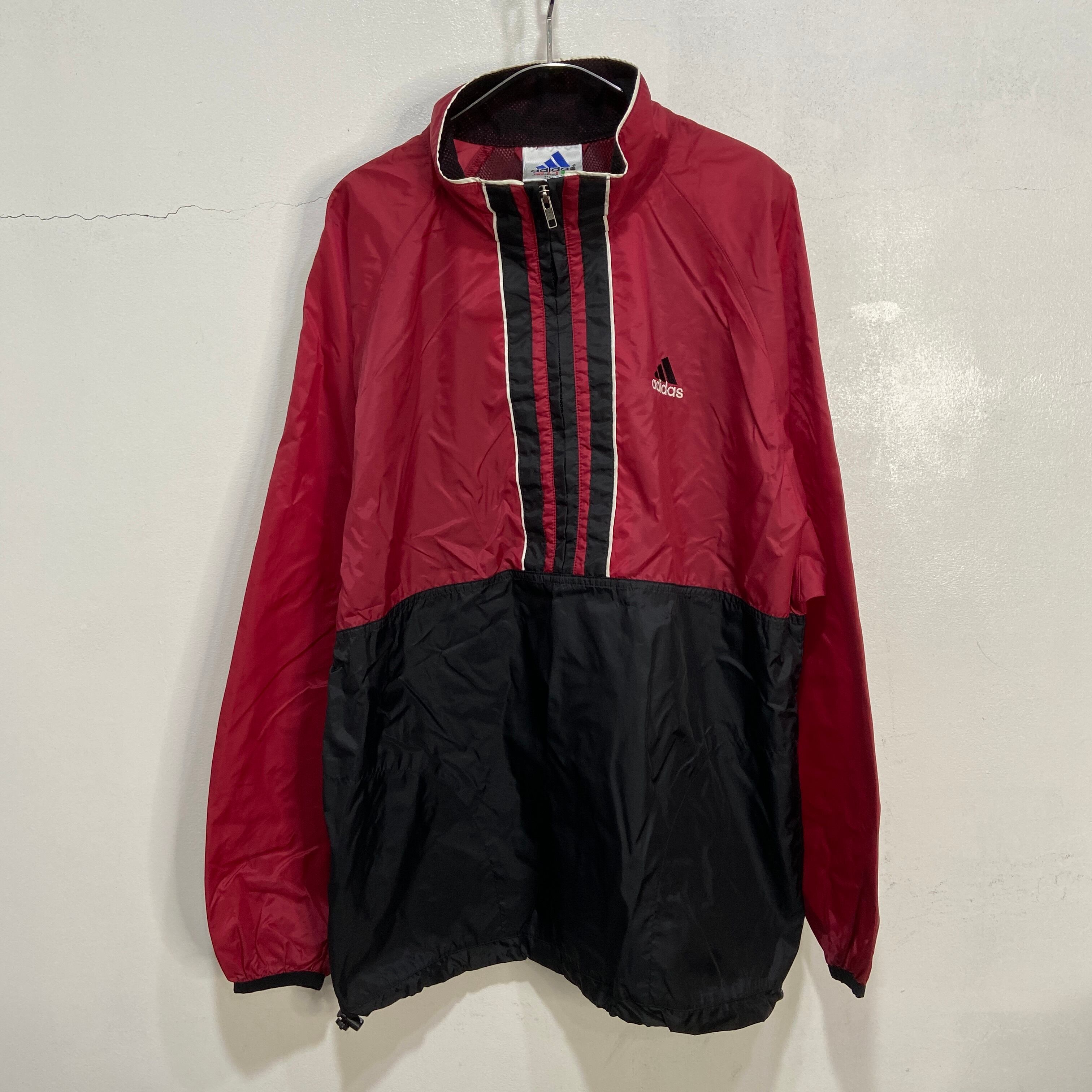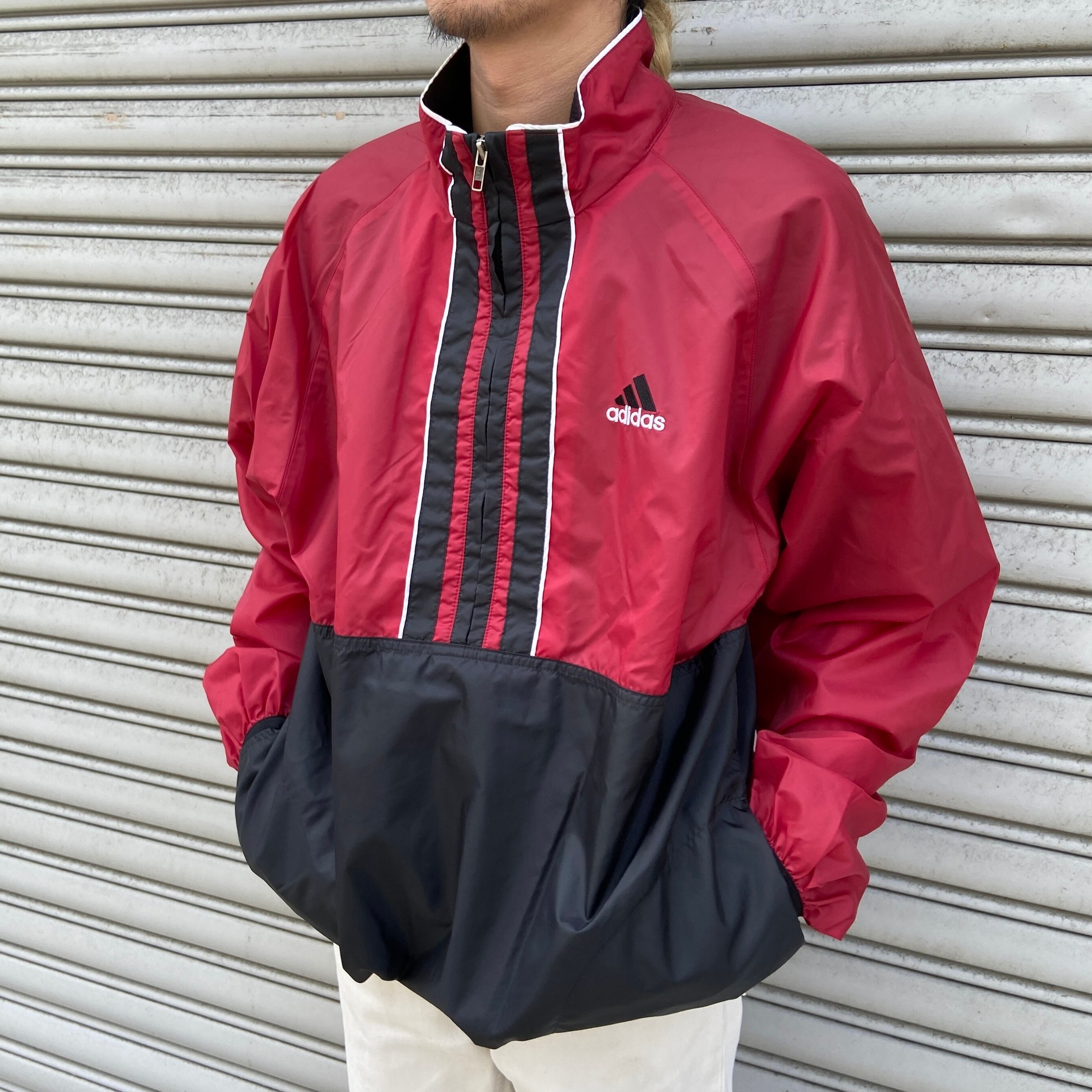 こちらは90年代adidasのハーフジップナイロンプルオーバーです!