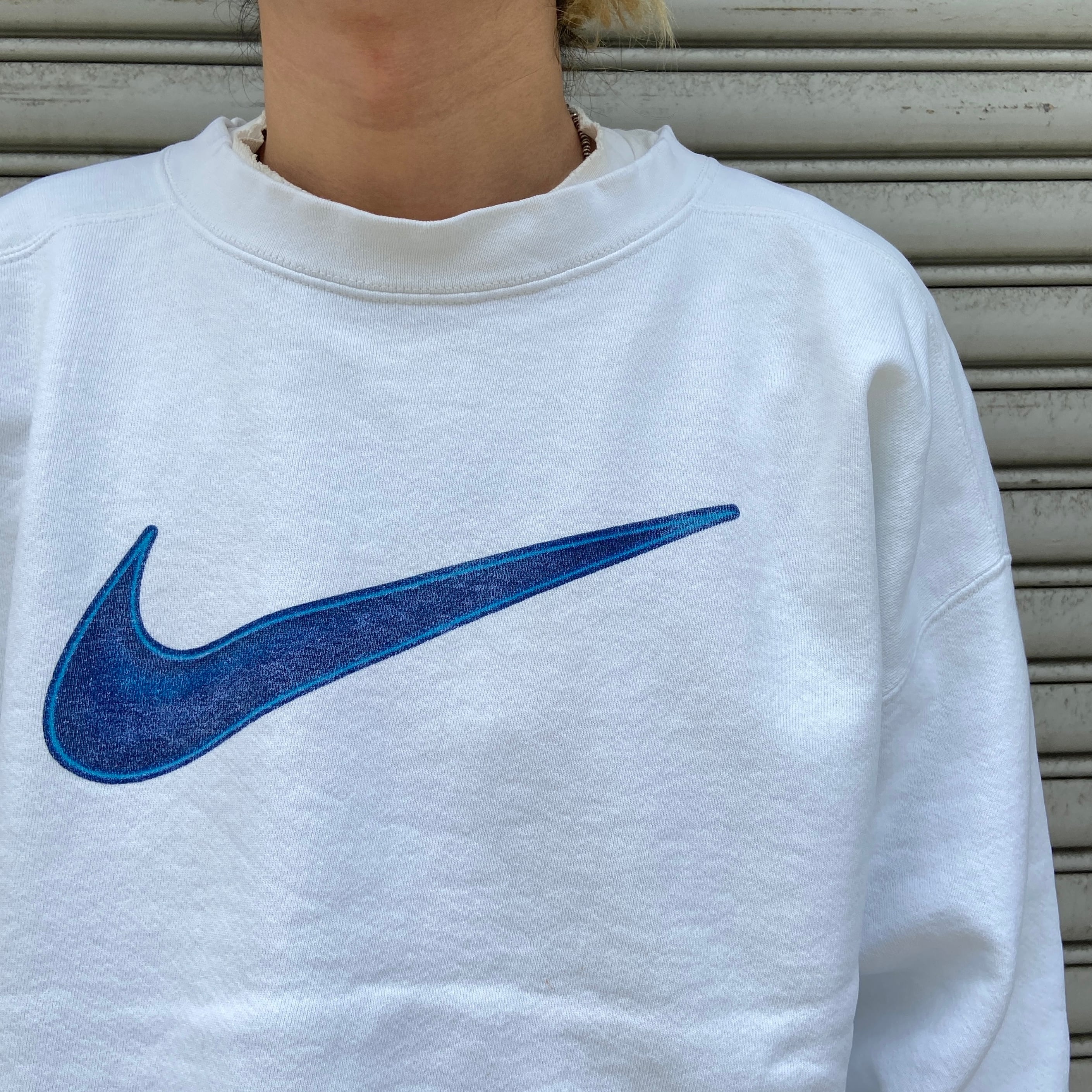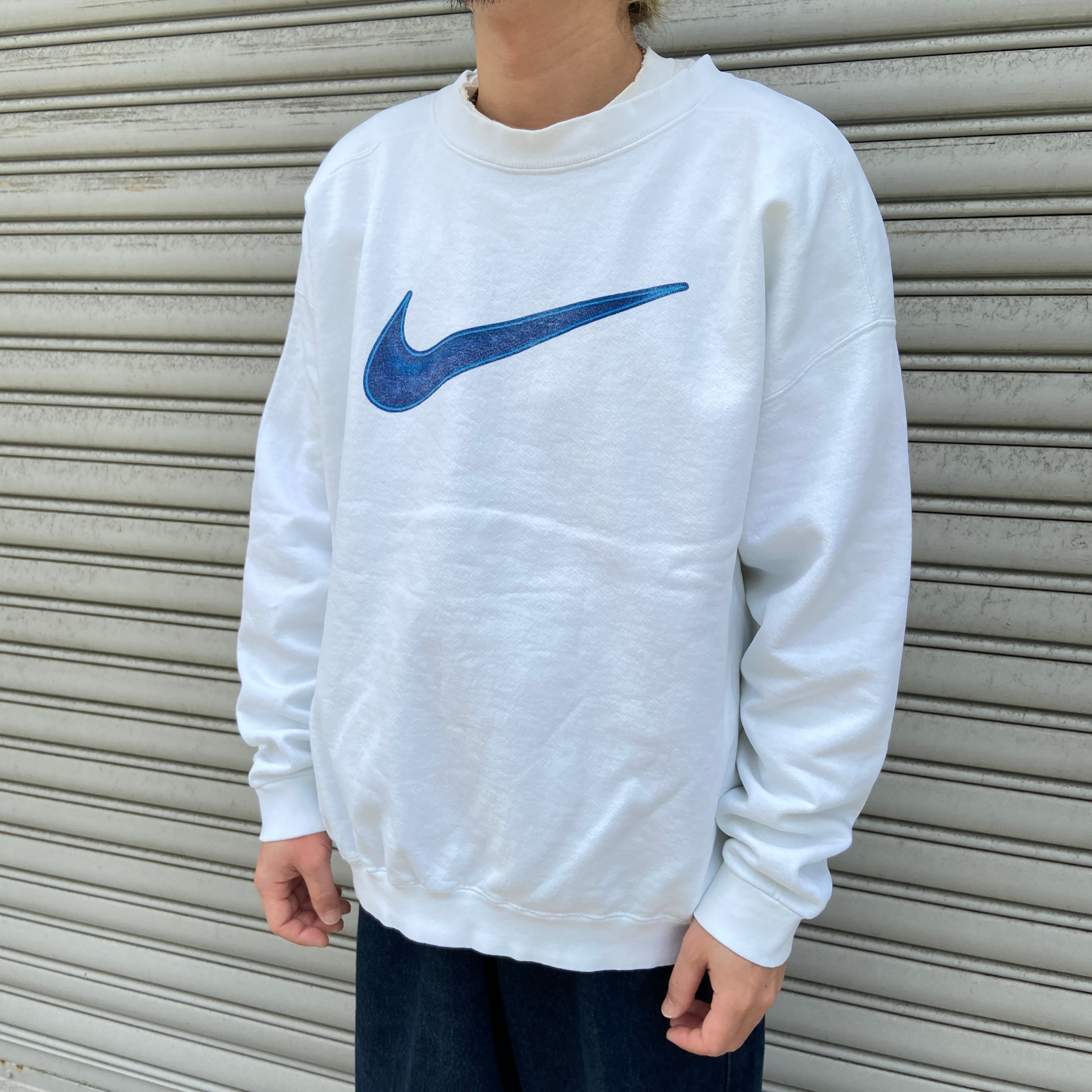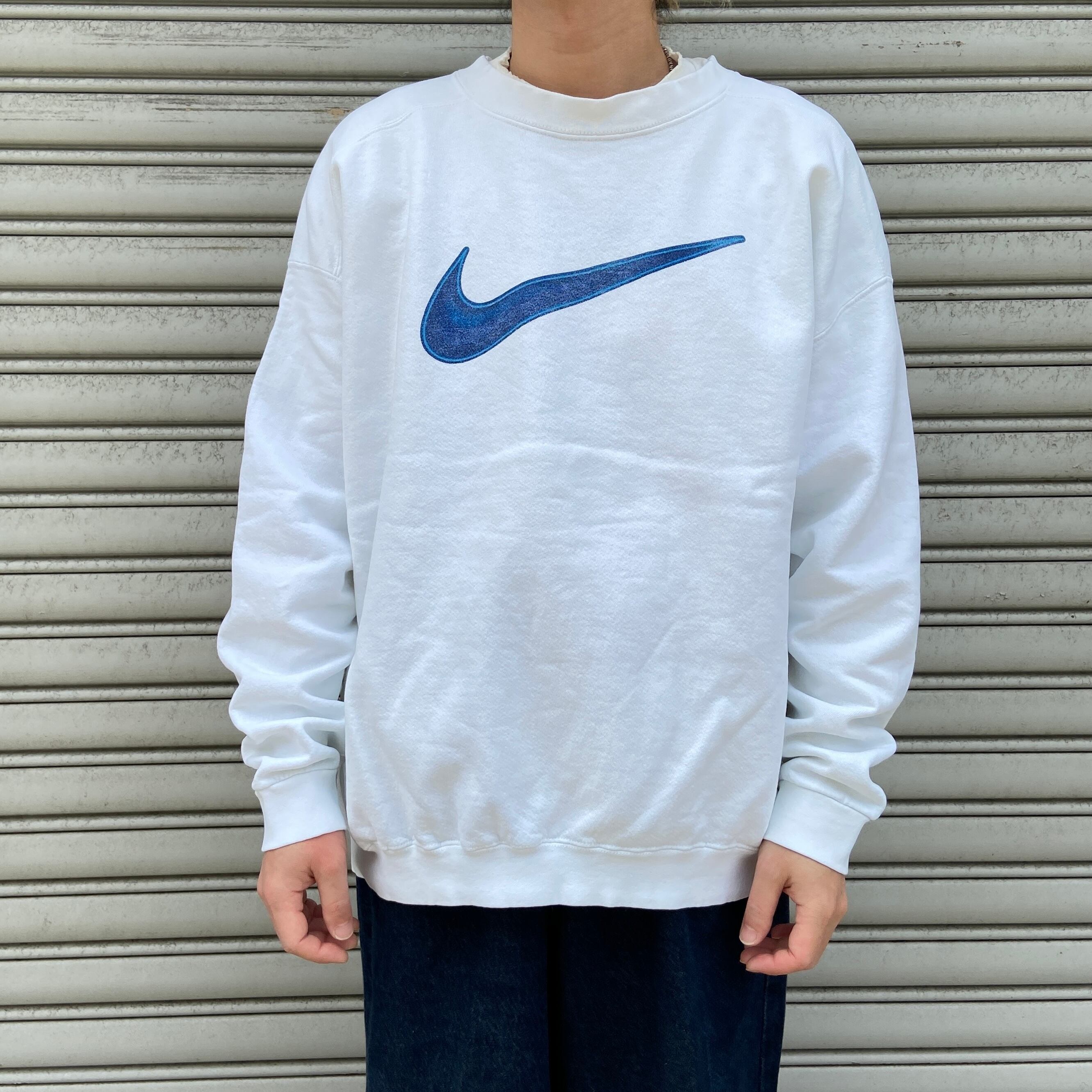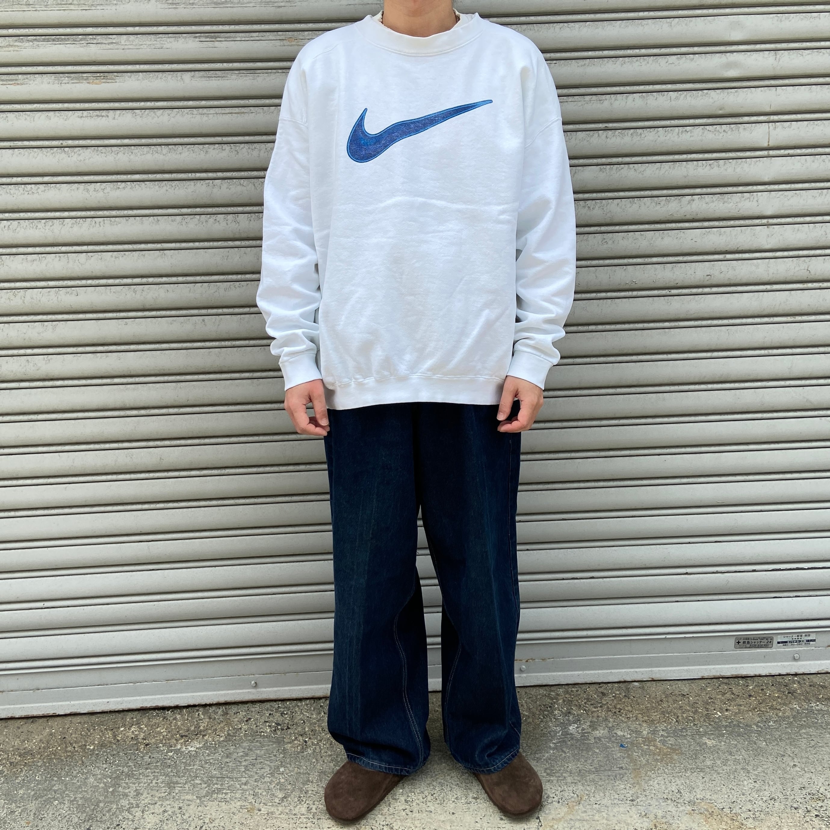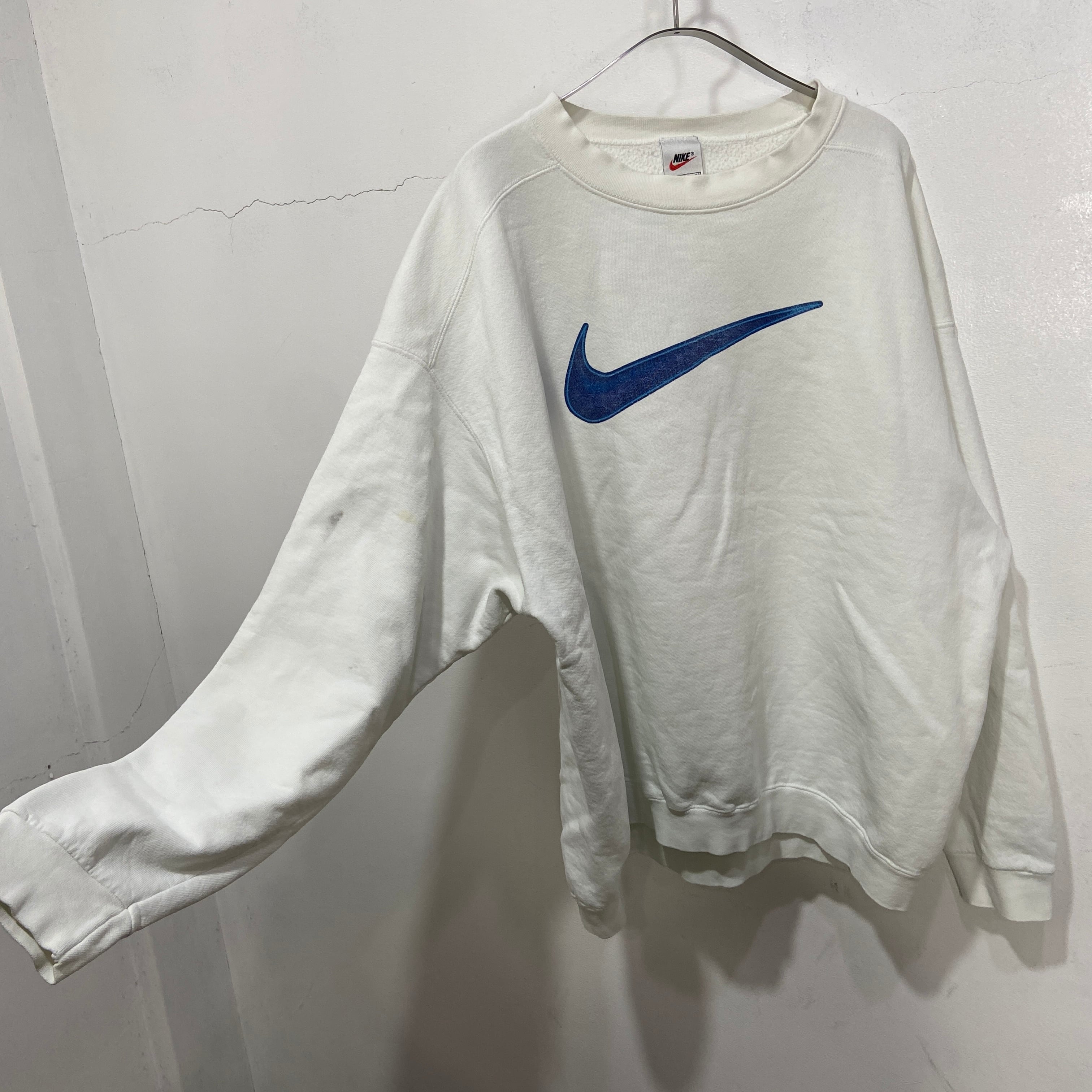 90s USA製 NIKE ビッグスウォッシュロゴスウェット ホワイト XL
