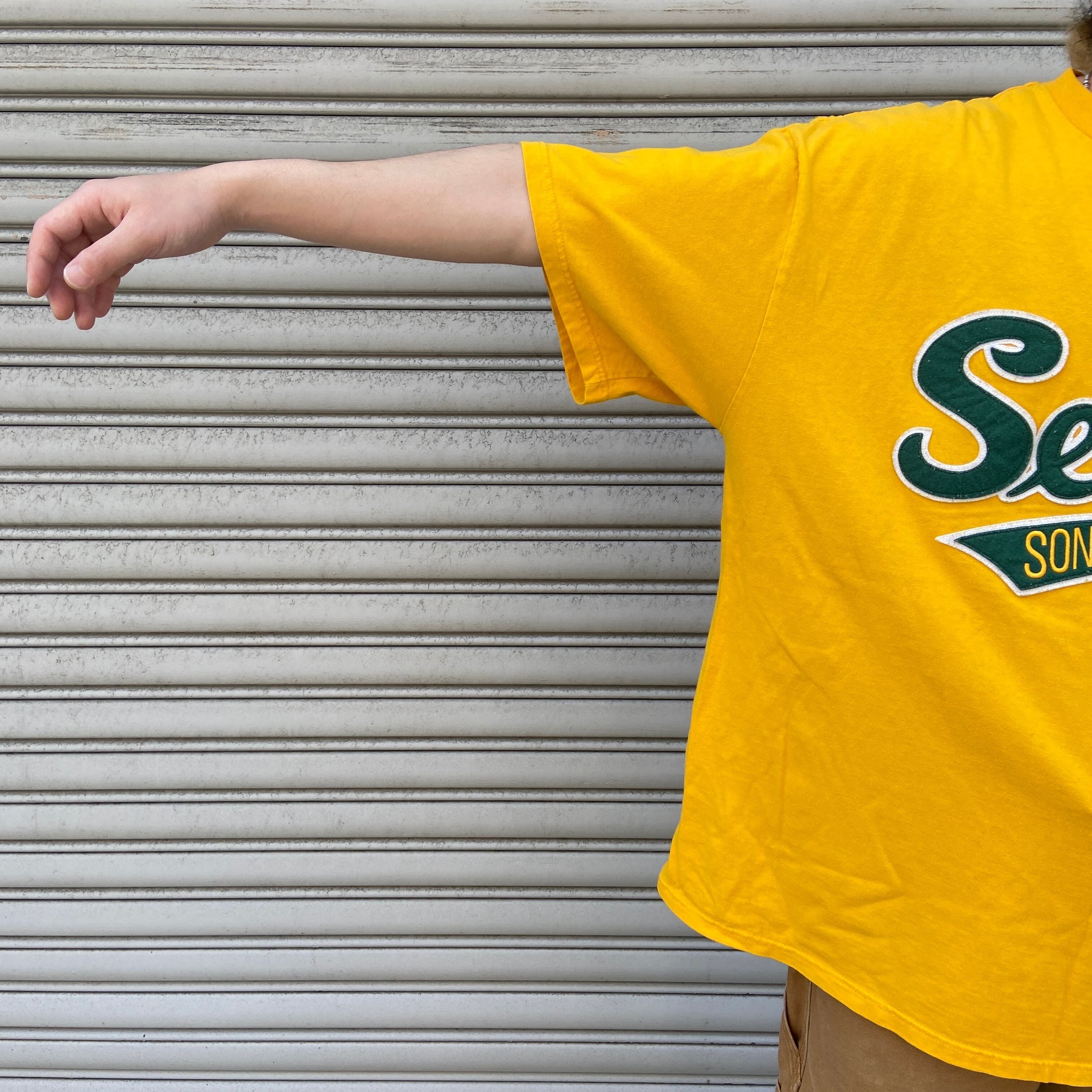 NBAチームのシアトル・スーパーソニックスのワッペンロゴが施された1着です!