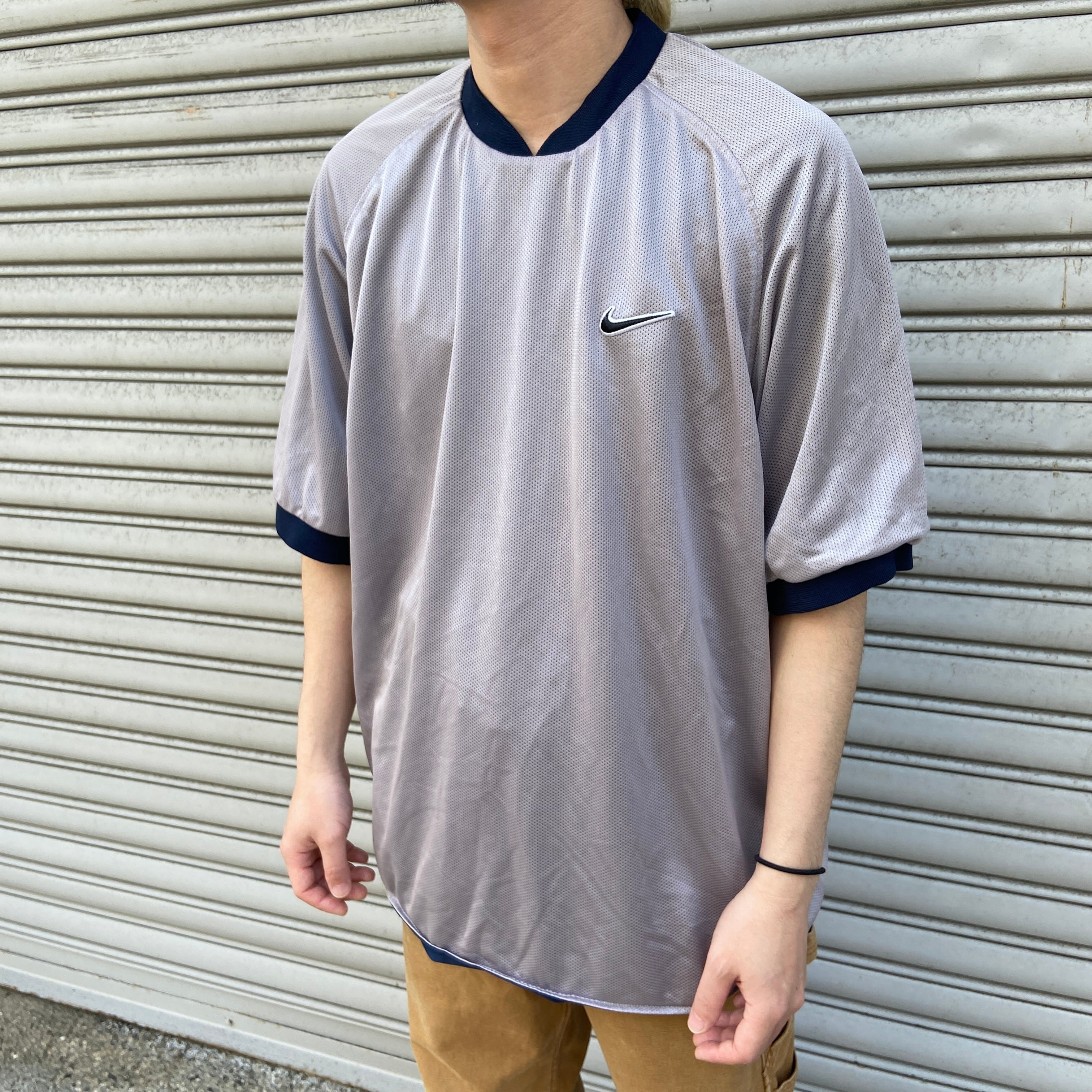 90s NIKE リバーシブルゲームTシャツ メッシュT 紺 シルバー M