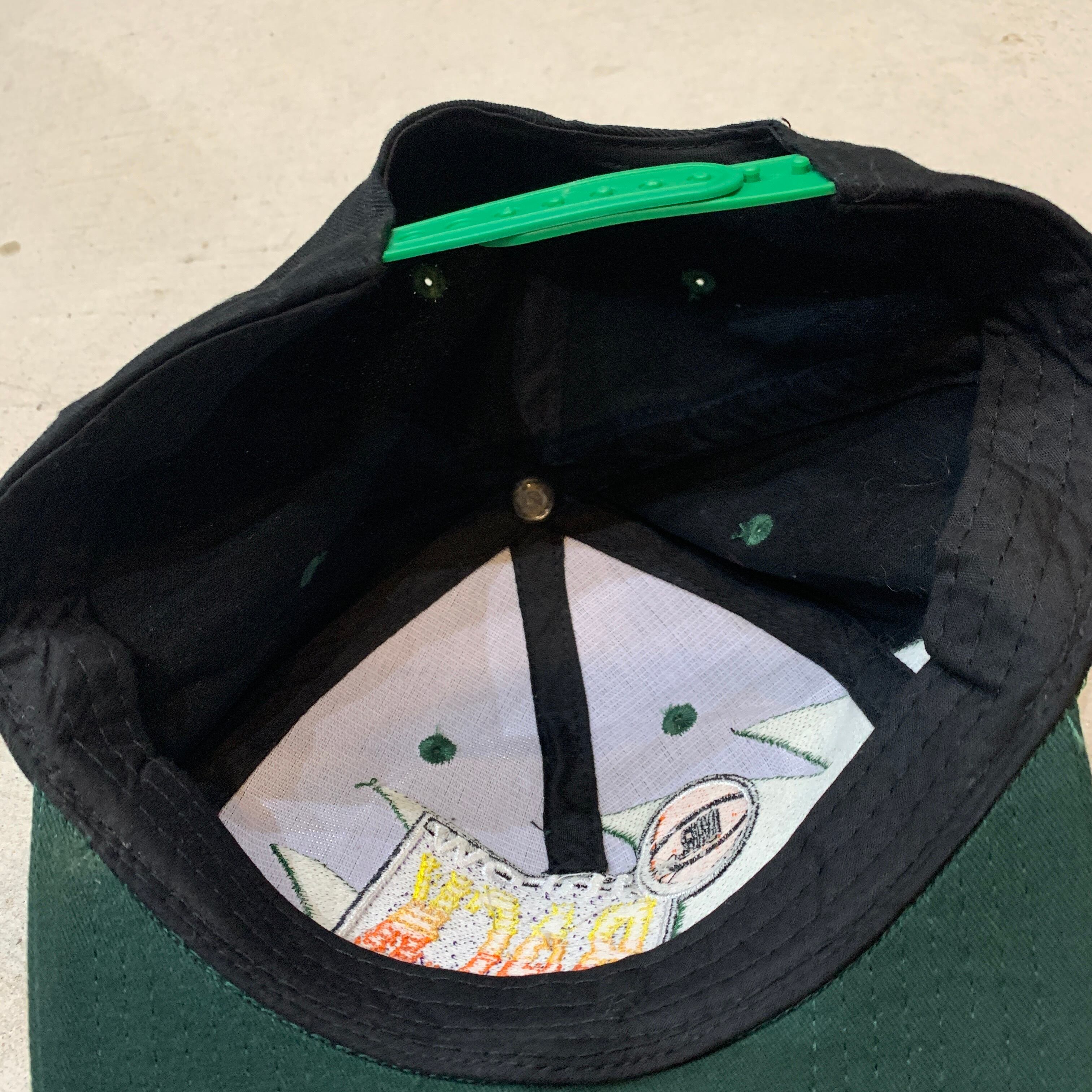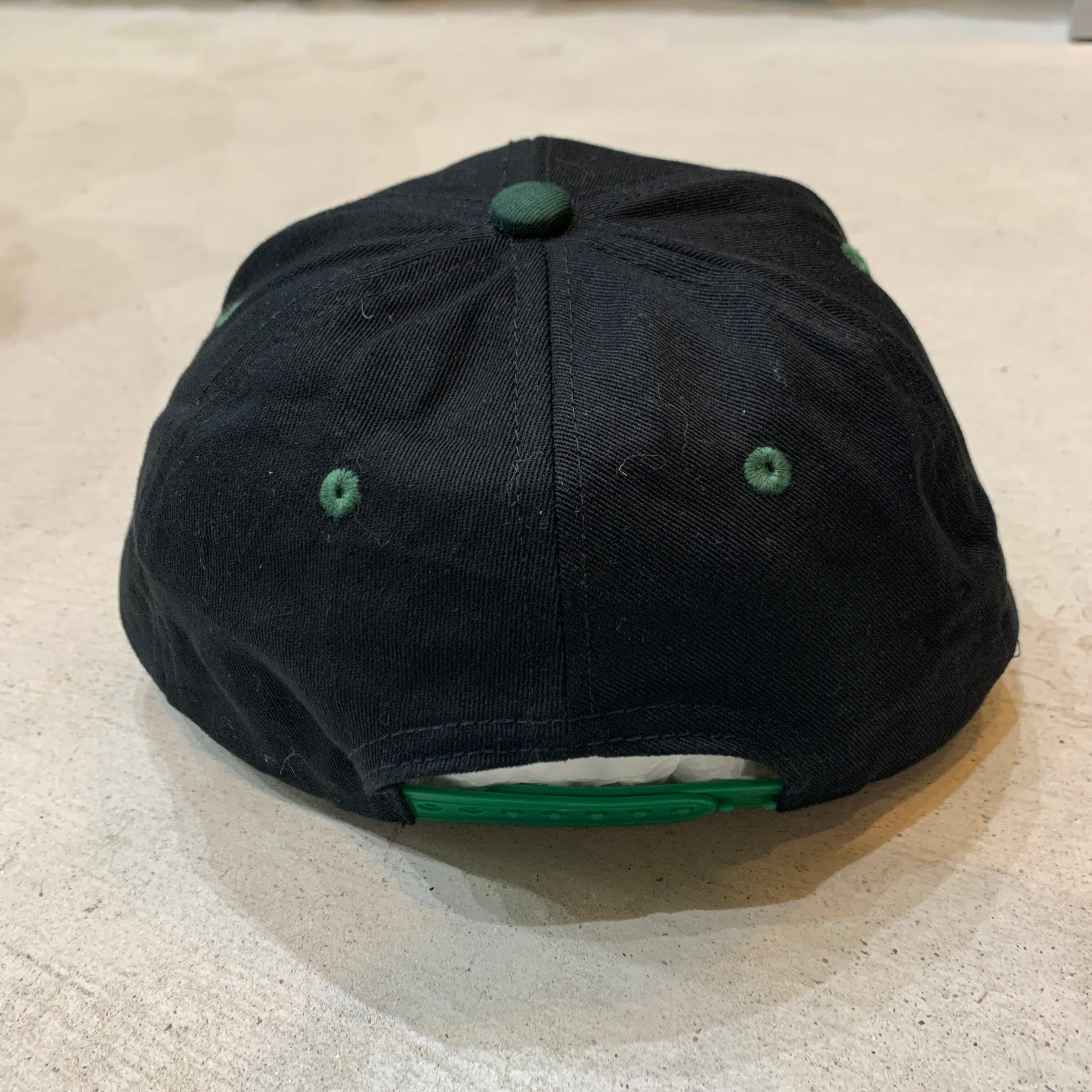ブラックボディにグリーンのツバ、刺繍はショップロゴになります!