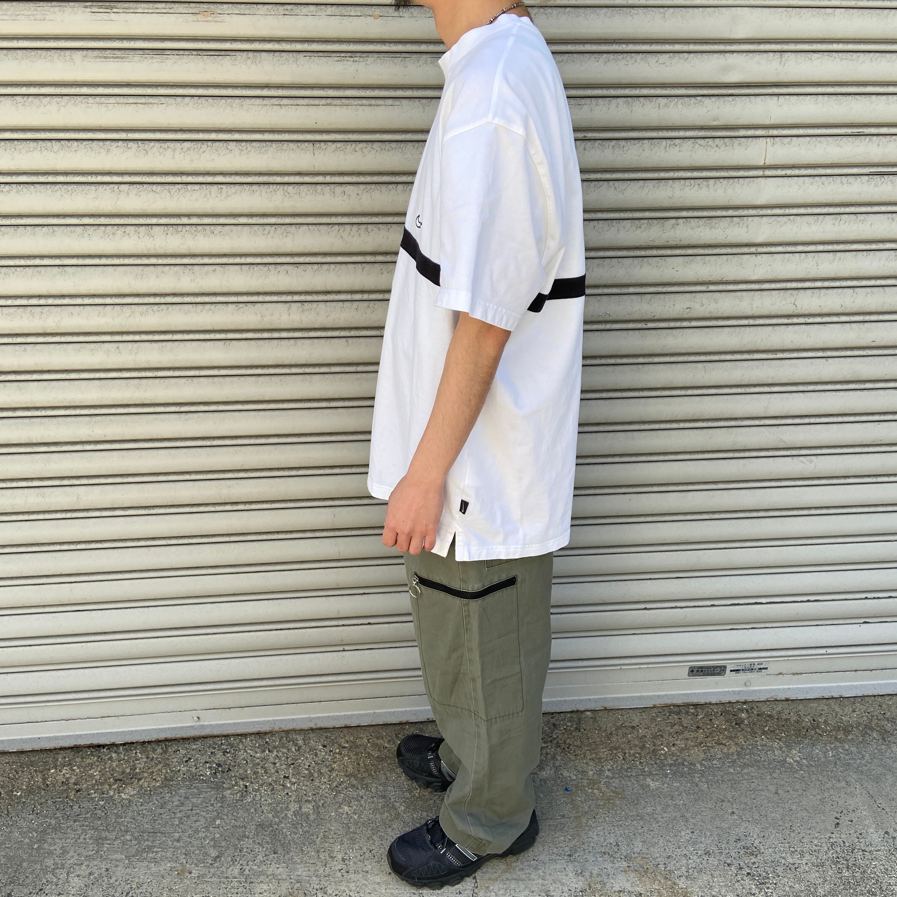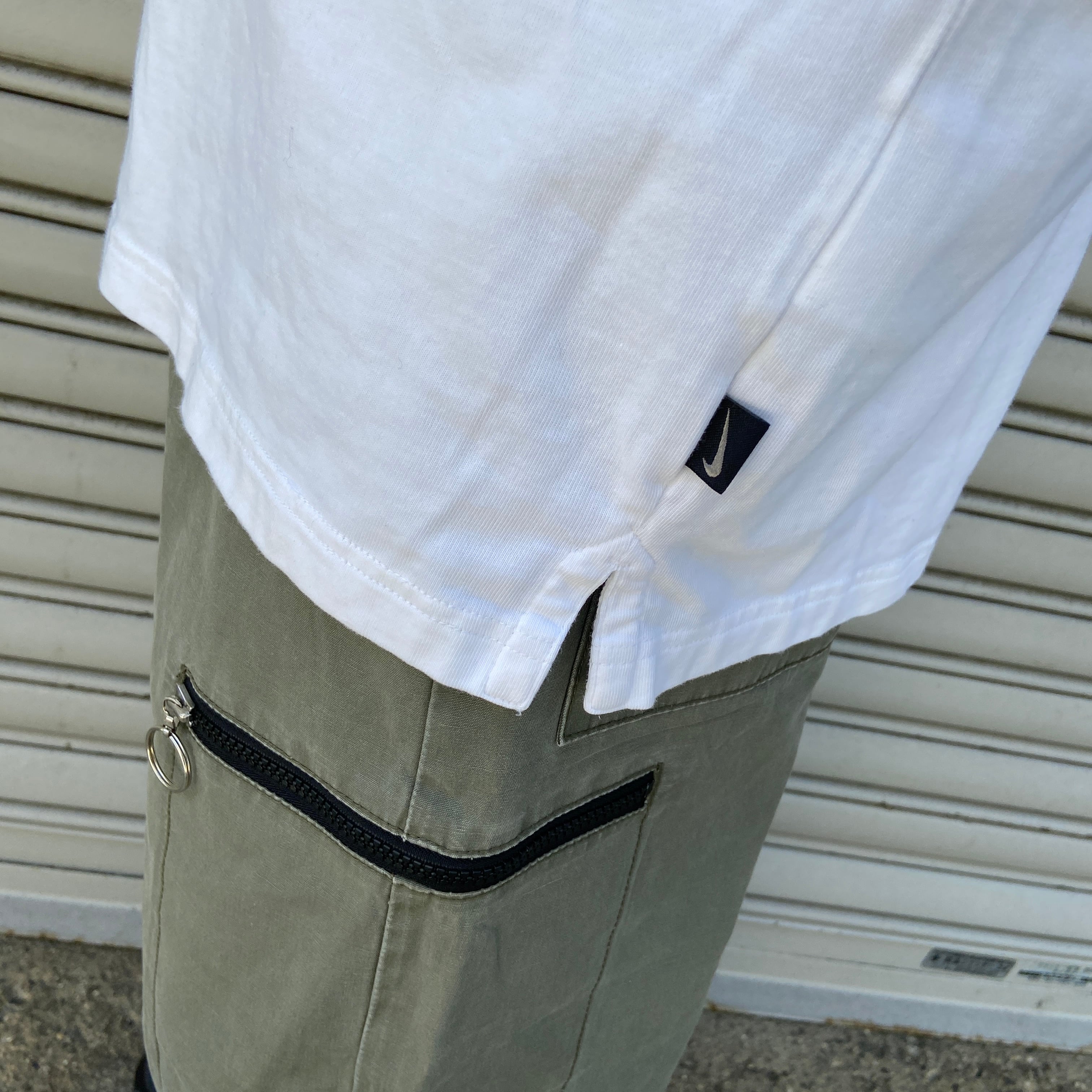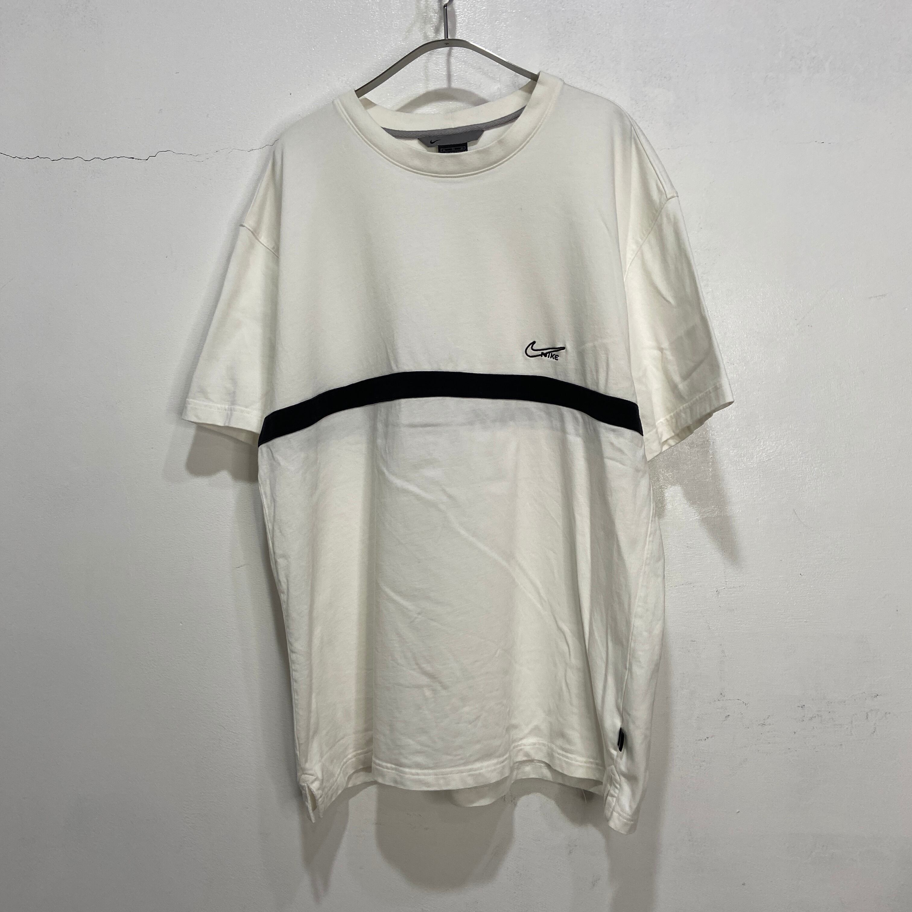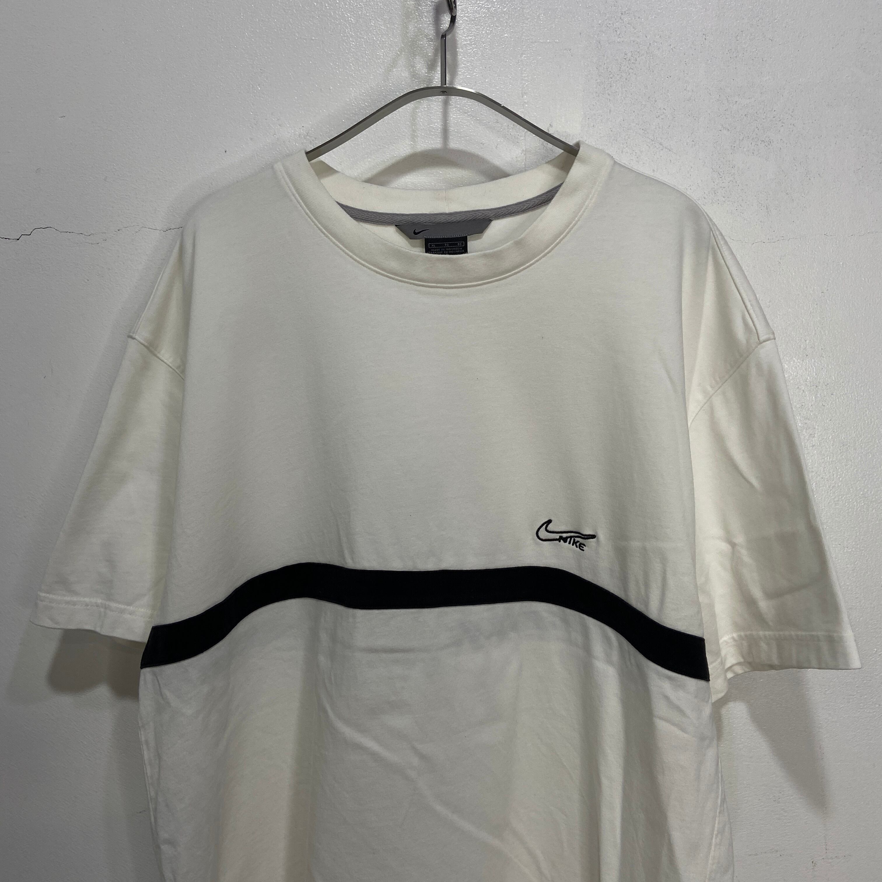 00s NIKE ナイキ ワンポイントロゴTシャツ ラインデザイン 白 XL