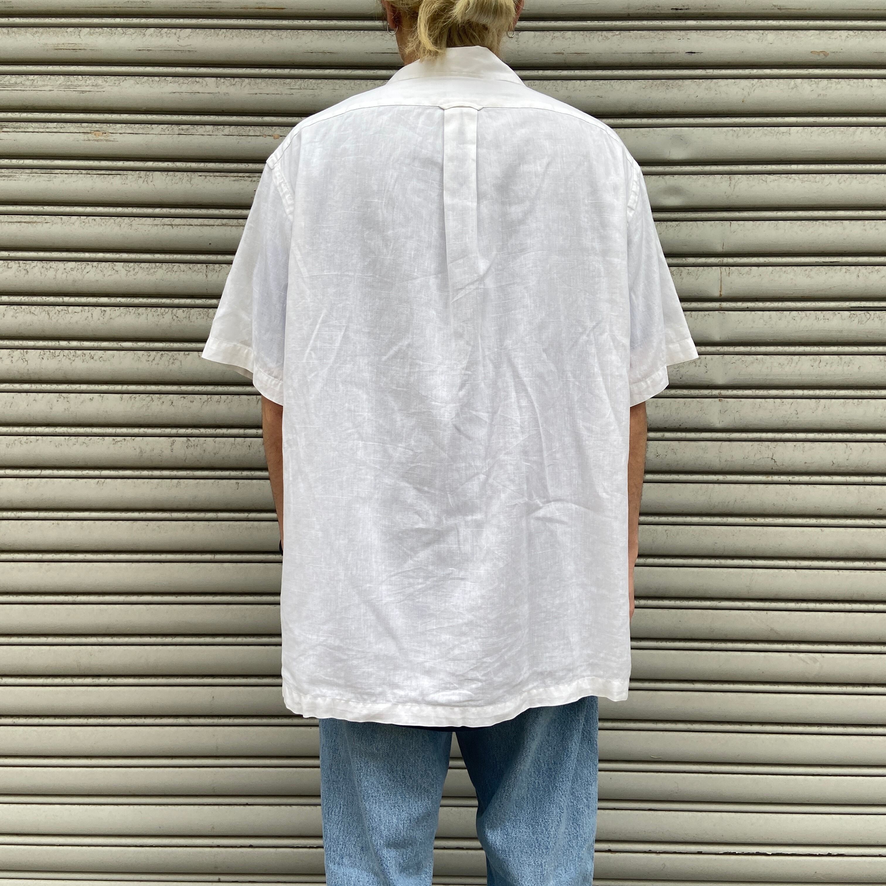 裾にスリットが入っていて、コットンリネン混合素材使用の涼しいシャツです。
