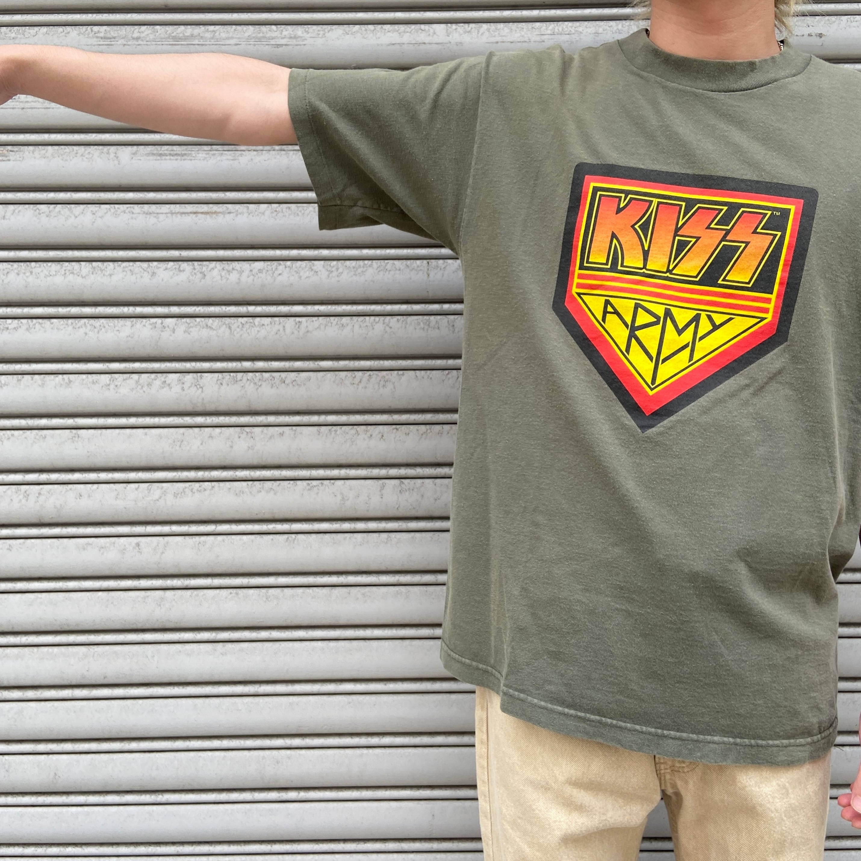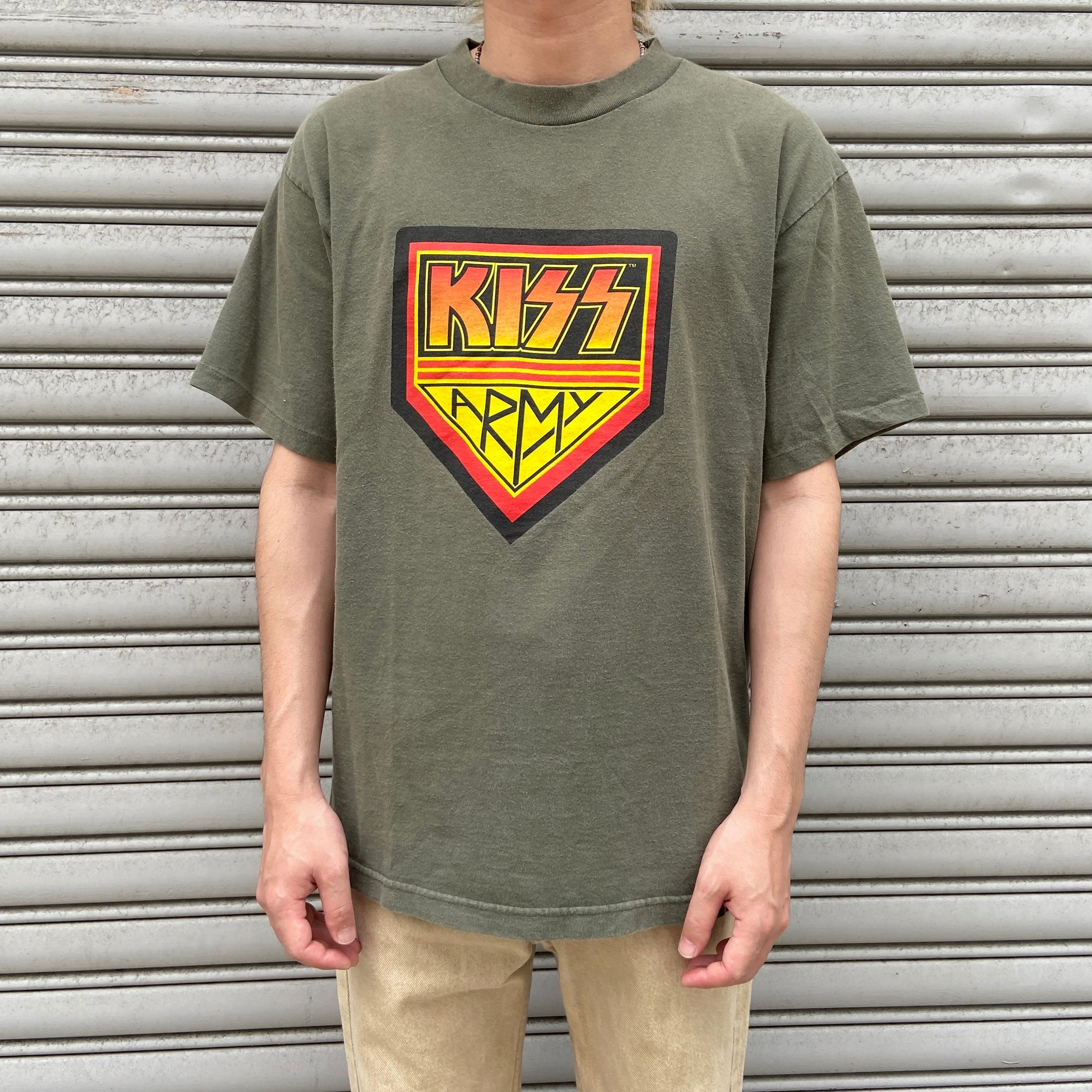 90s KISS キッス バンドTシャツ バンt プリントt カーキ L相当