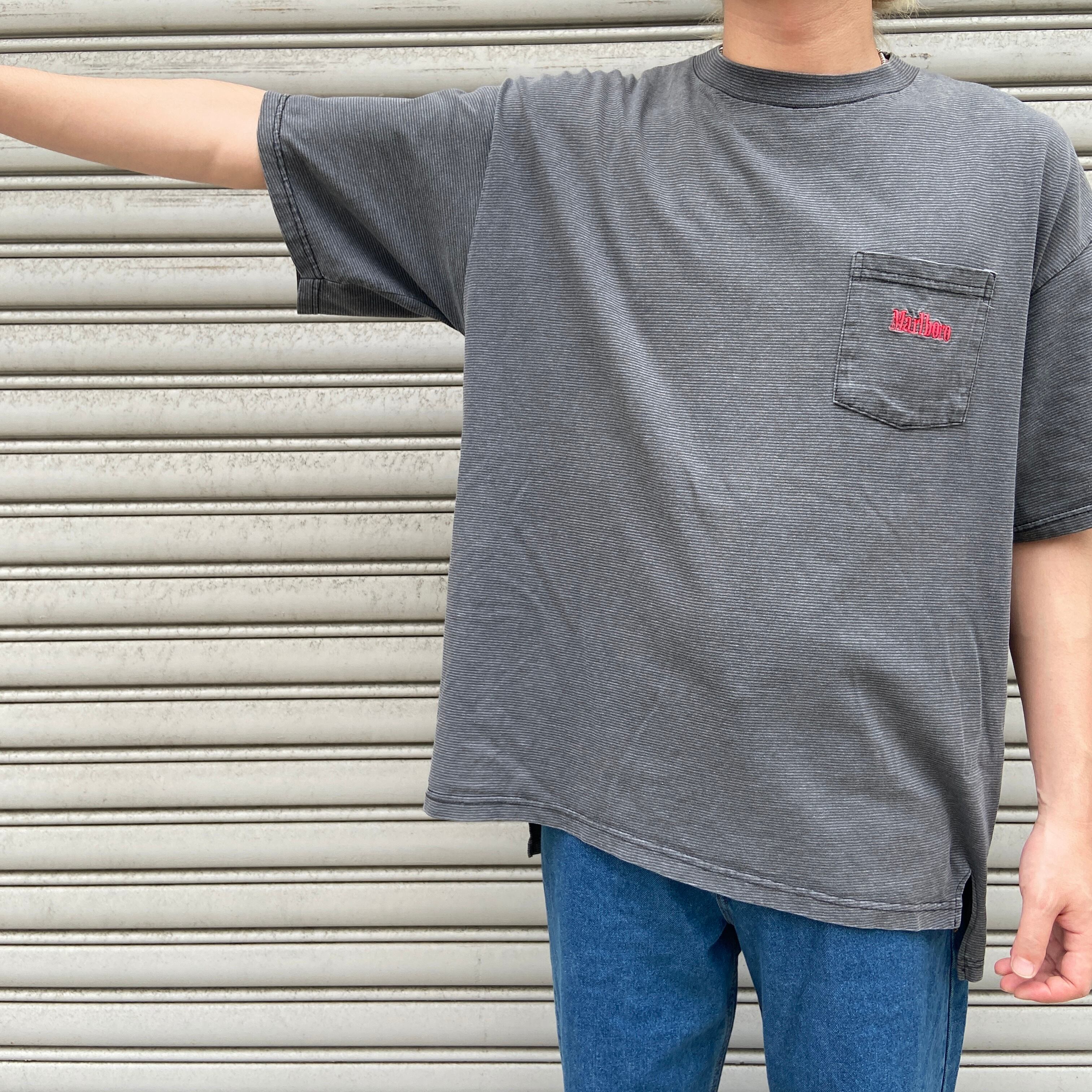 90s 00s Marlboro マルボロ タバコT ボーダーTシャツ スミクロ
