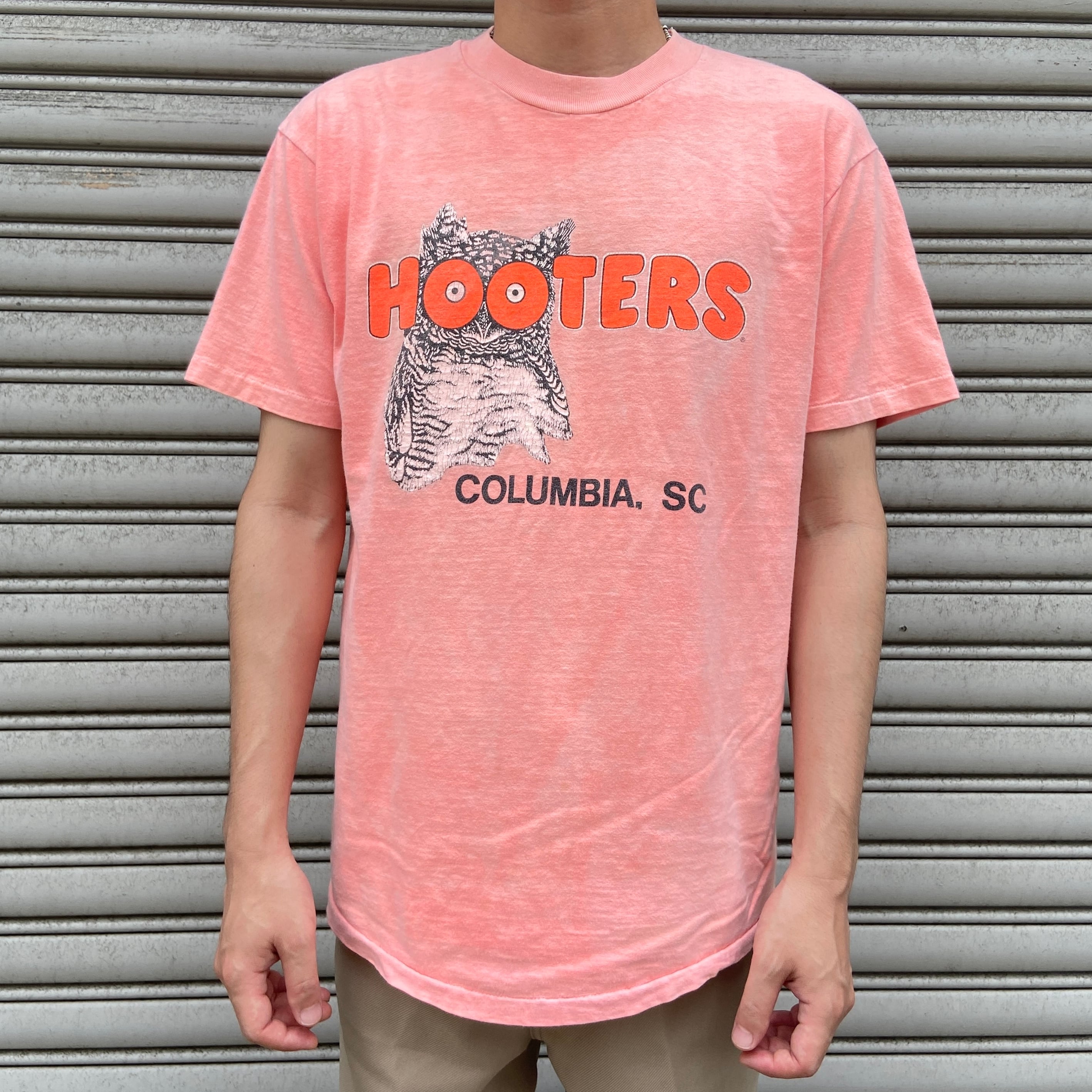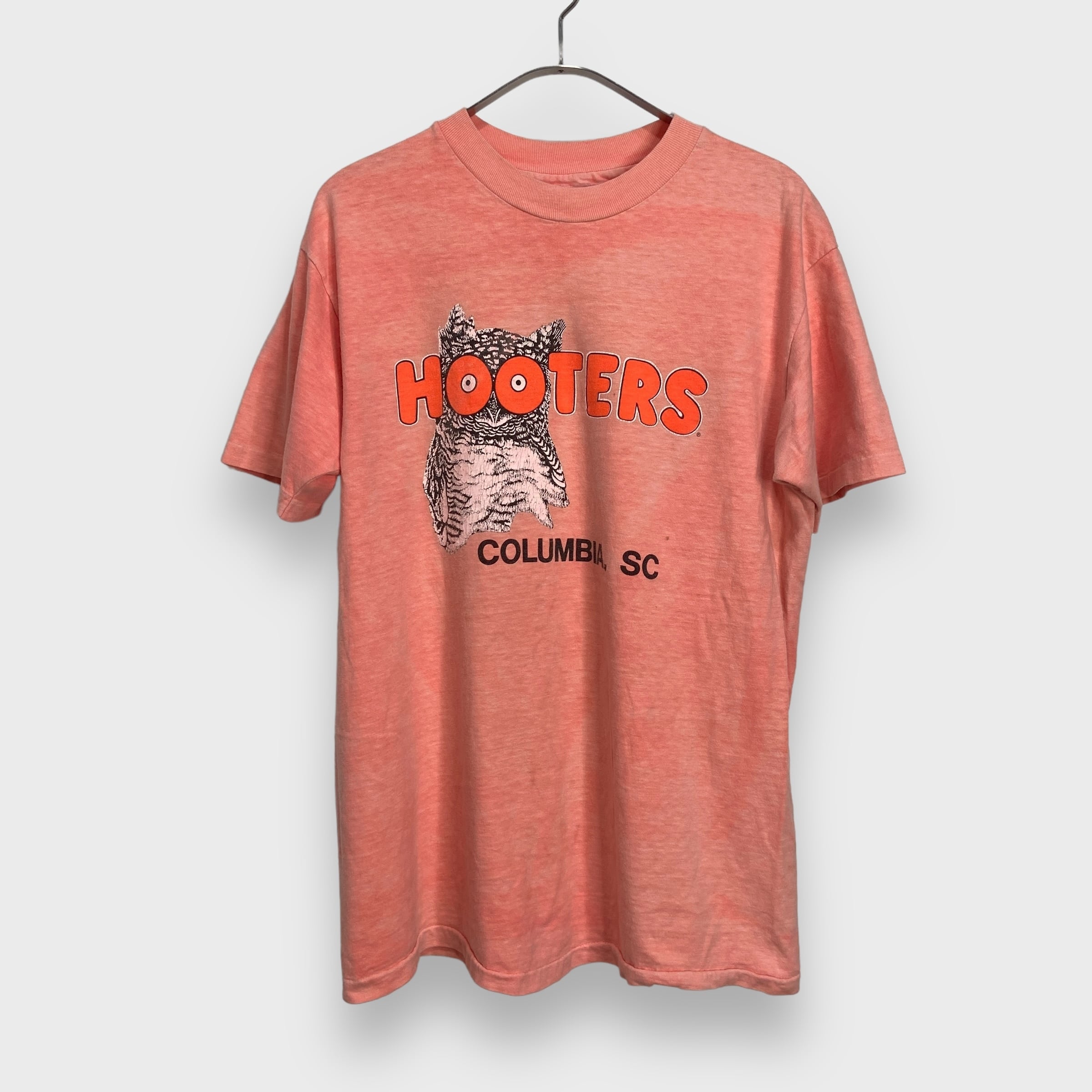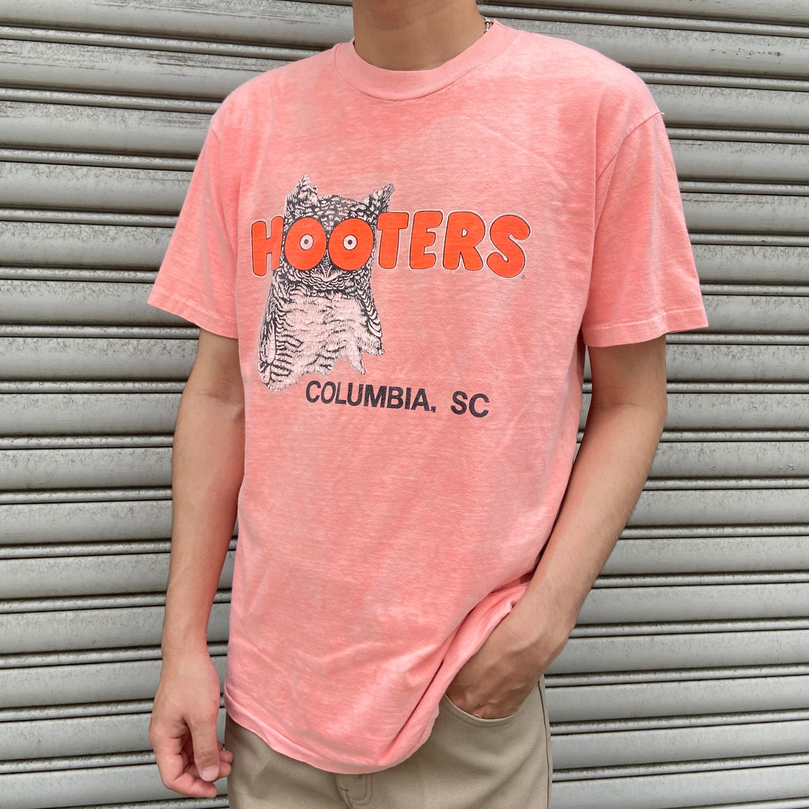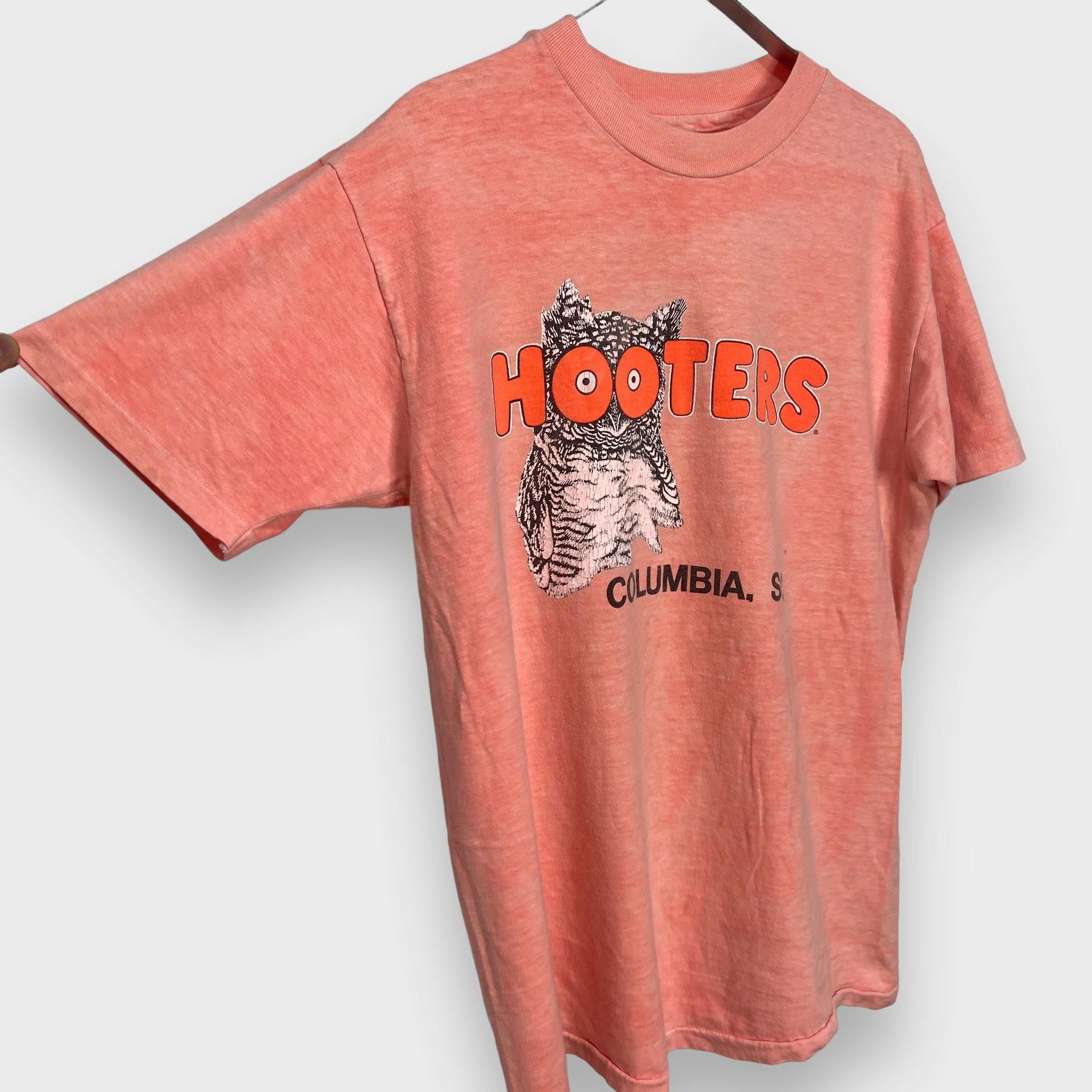 90s USA製 フーターズ プリントT 両面プリント フェード系 ピンク L