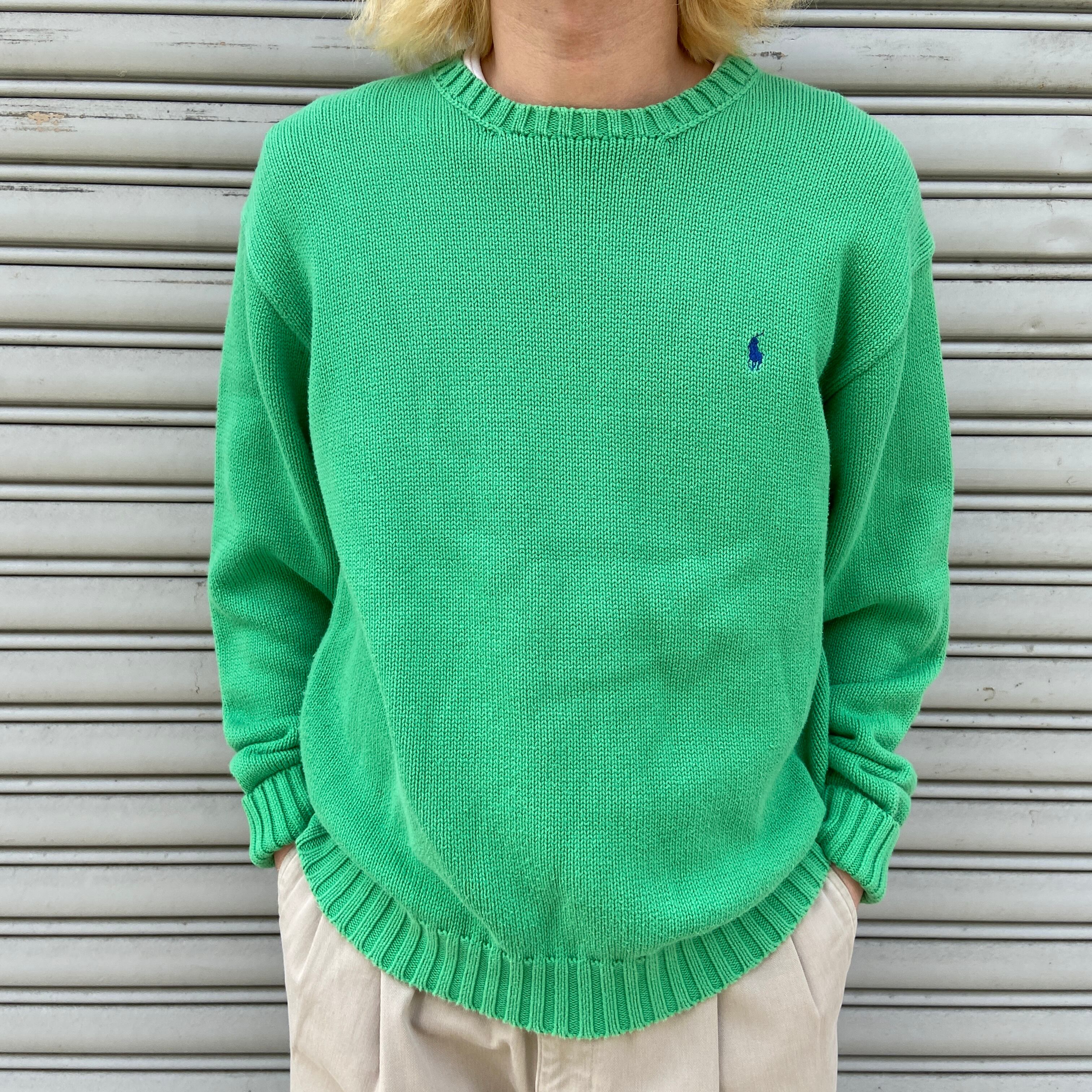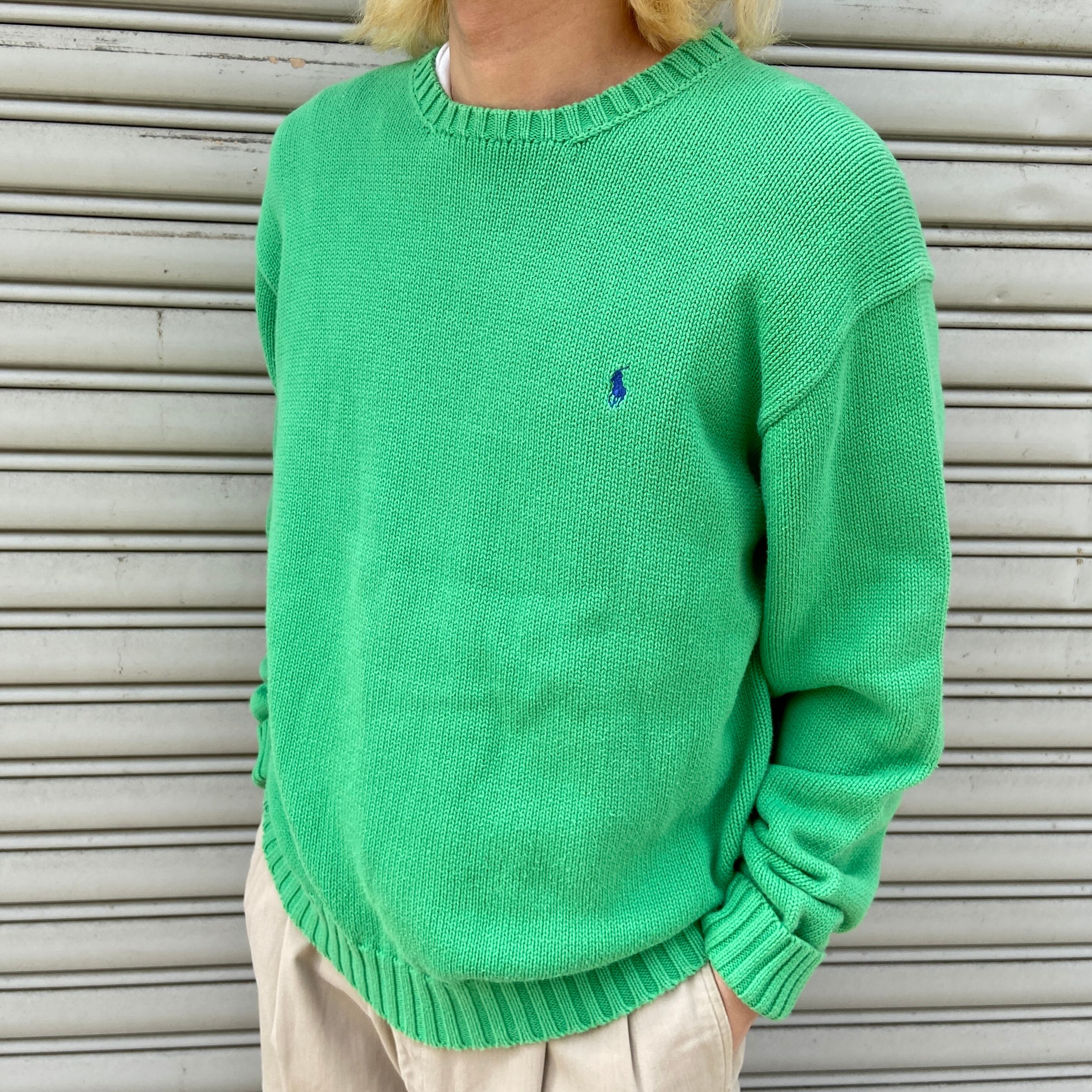 ラルフローレン ワンポイントロゴセーター コットンニット グリーン L